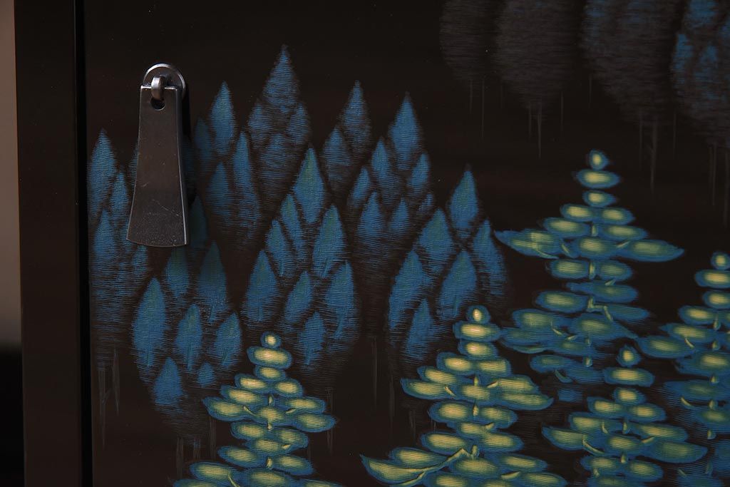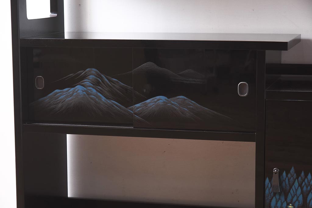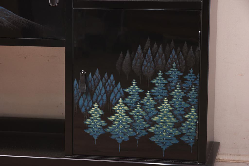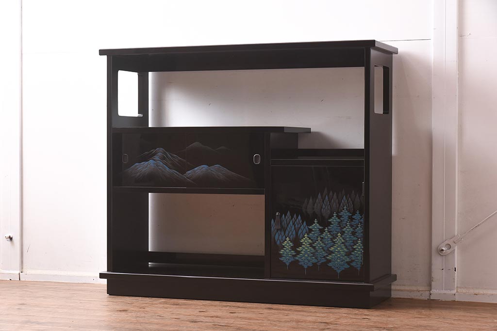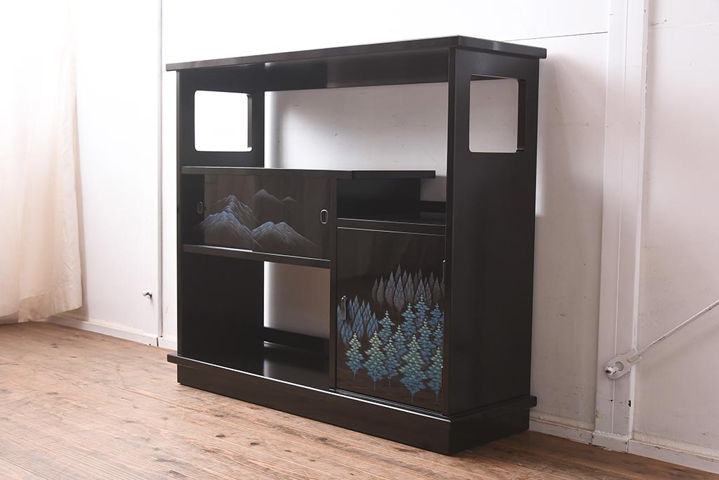 和箪笥 > 在庫未使用品 IDC大塚家具 モリシゲ(MORISHIGE/森繁) 有明35 彫漆 山と木立 旭幸延A 和棚(定価約69万円)(R-041766)