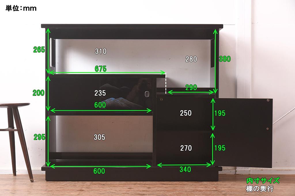 幅:1,055㎜ 奥行:335㎜ 高さ:915㎜