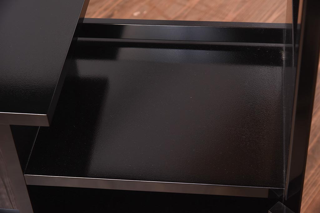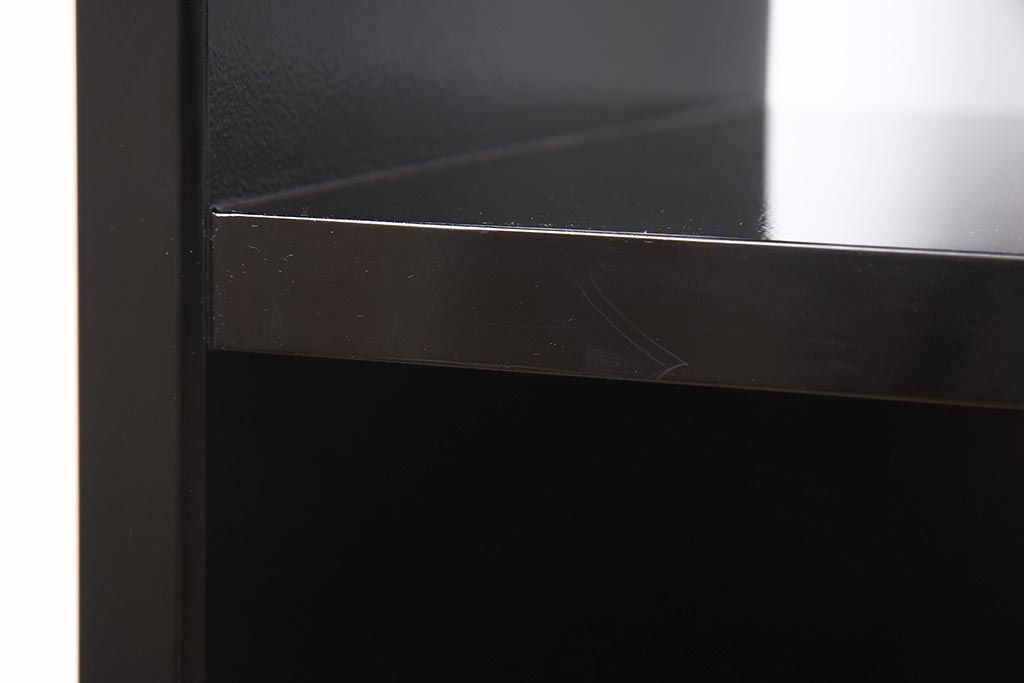 棚板は取り外しできます。棚板は1枚、棚受けは1ヶ所あります。棚幅サイズのものが1枚の作りです。