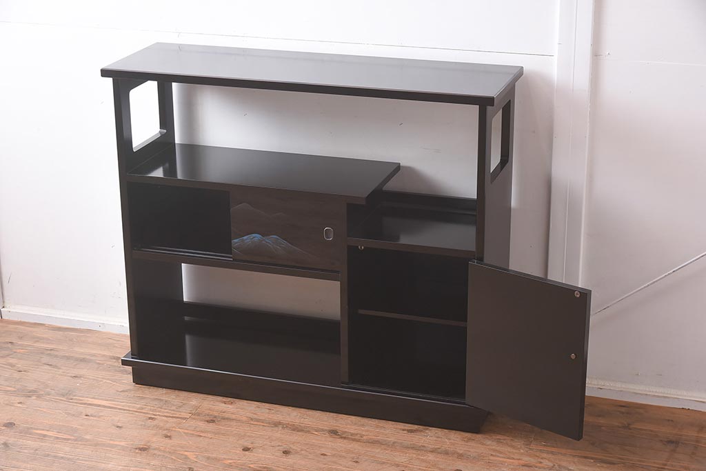 和箪笥> 茶箪笥・茶棚 > 在庫未使用品 IDC大塚家具 モリシゲ(MORISHIGE/森繁) 有明35 彫漆 山と木立 旭幸延A 和棚(定価約69万円)(R-041766)