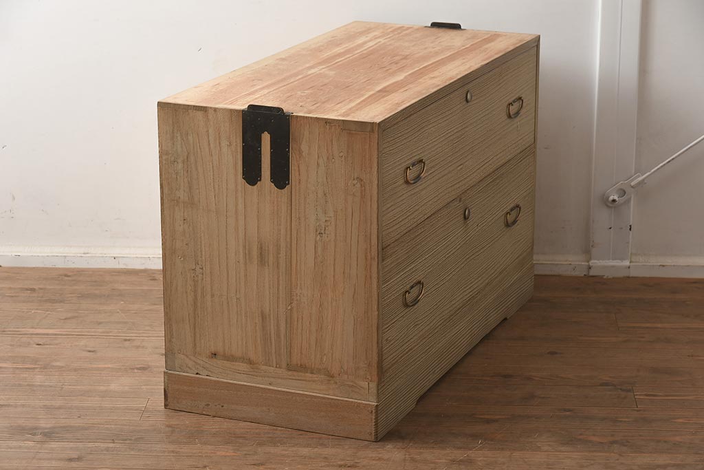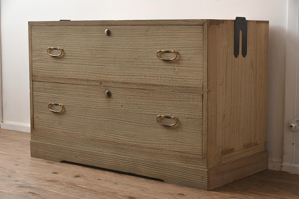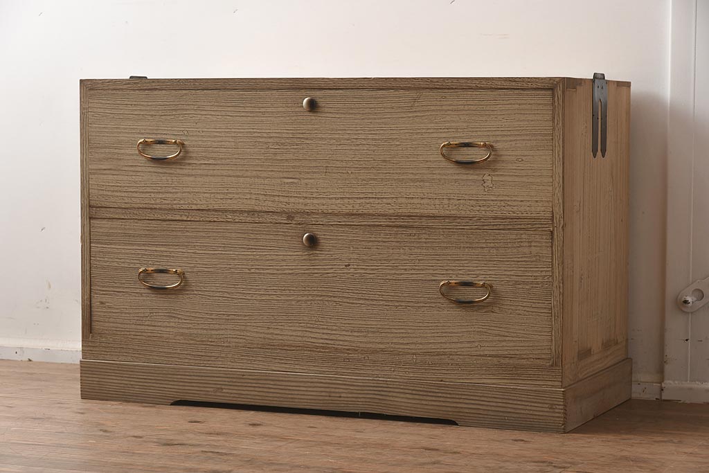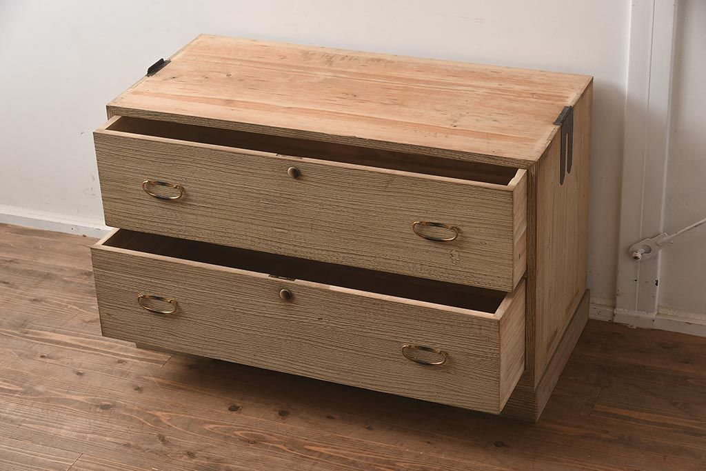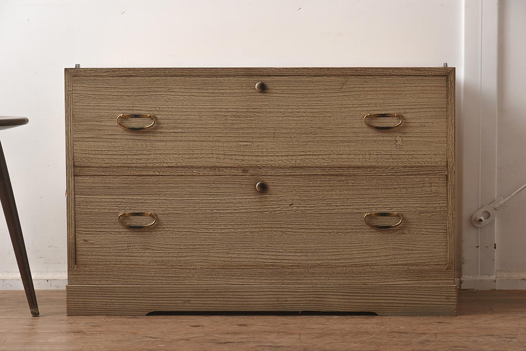 レトロ家具 昭和中期 桐材 引き出し2杯 シンプルな衣装箪笥(和タンス、ローチェスト、テレビ台)(R-042537)