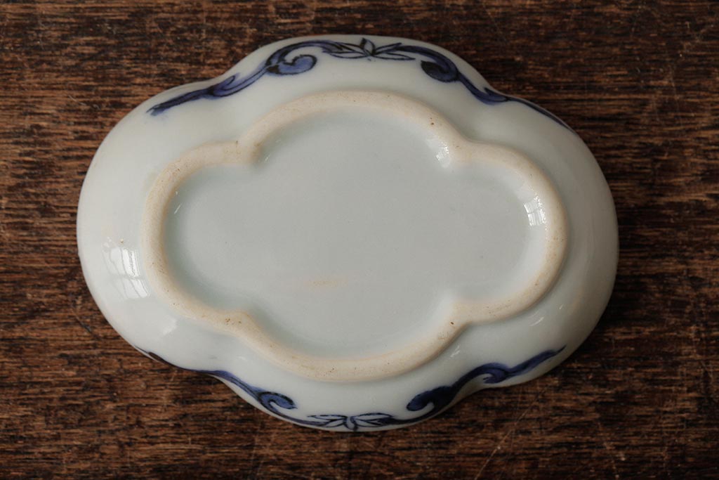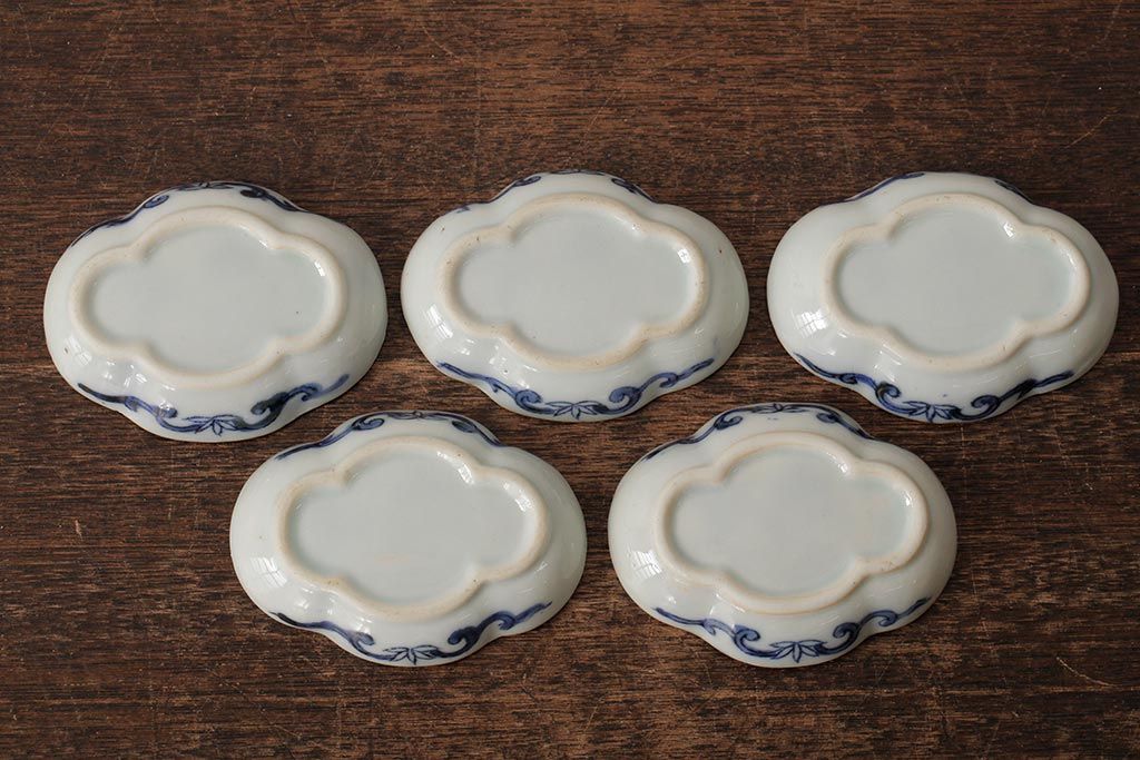 ラフジュ工房> 骨董・美術品> 骨董-陶磁器 > アンティーク雑貨 江戸期 古伊万里 染付花文小皿5枚セット(変形皿、和食器)(R-042474)