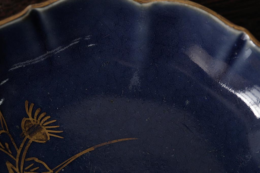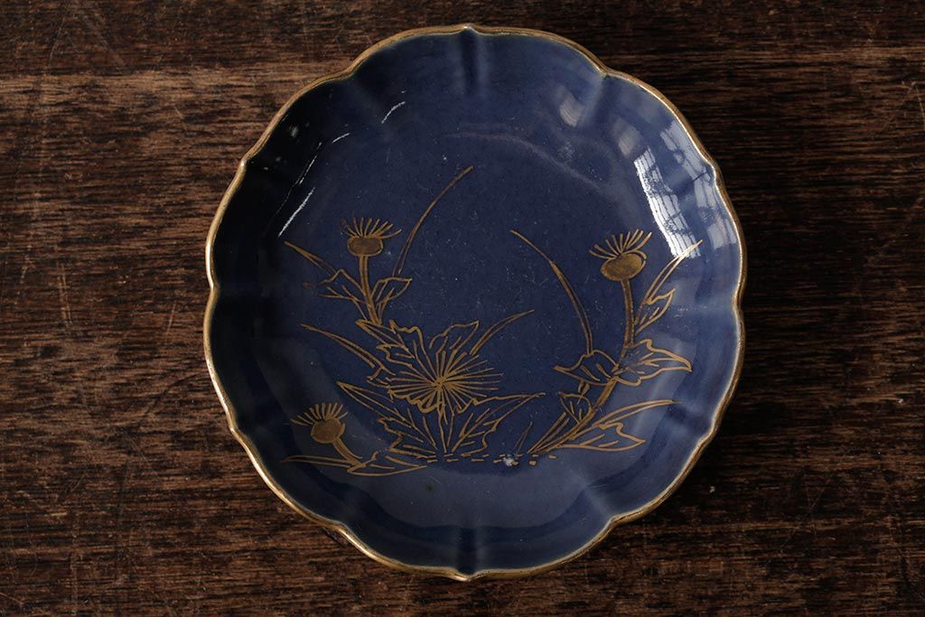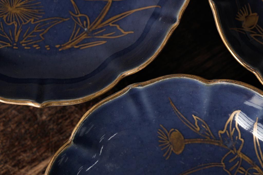 ラフジュ工房> 和食器・茶道具> 皿 > アンティーク雑貨 江戸期 古伊万里 瑠璃金彩花文小皿3枚セット(変形皿、和食器)(R-042529)