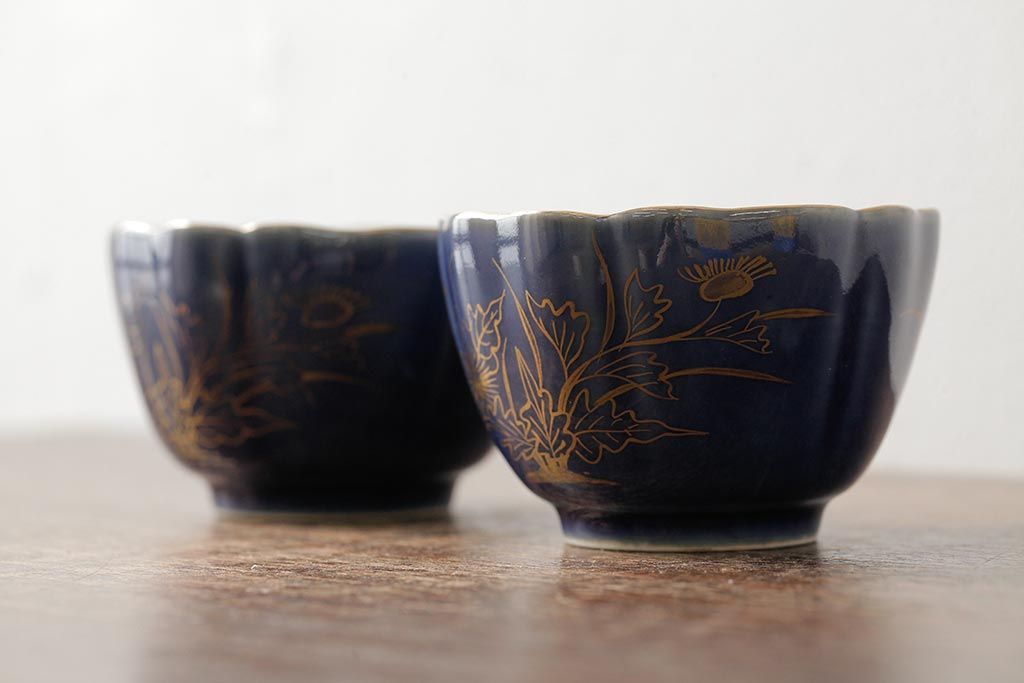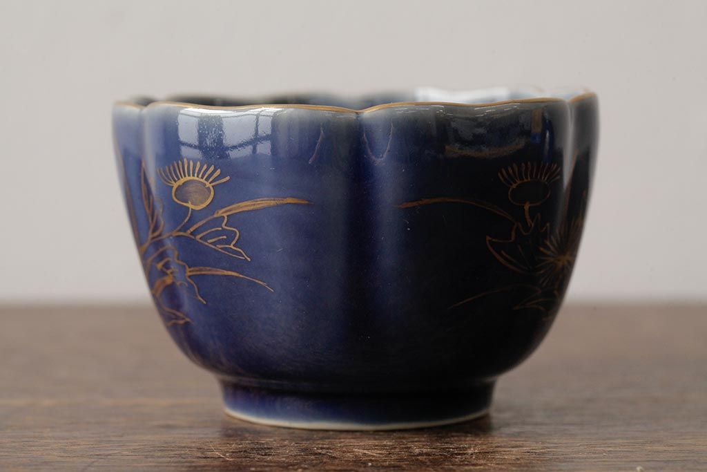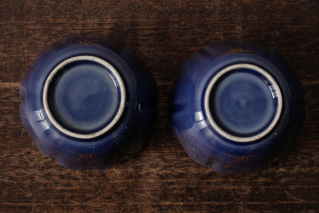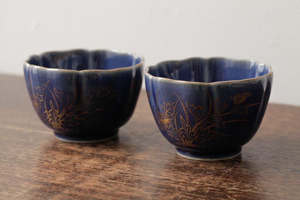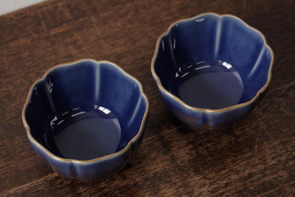 ラフジュ工房> 和食器・茶道具 > アンティーク雑貨 江戸期 古伊万里 瑠璃金彩花文蕎麦猪口2個セット(向付、和食器)(R-042523)