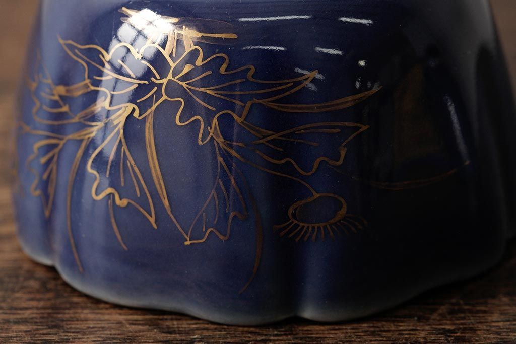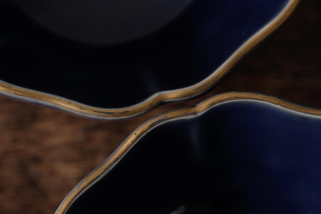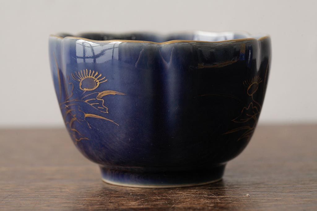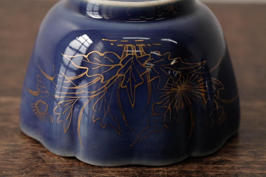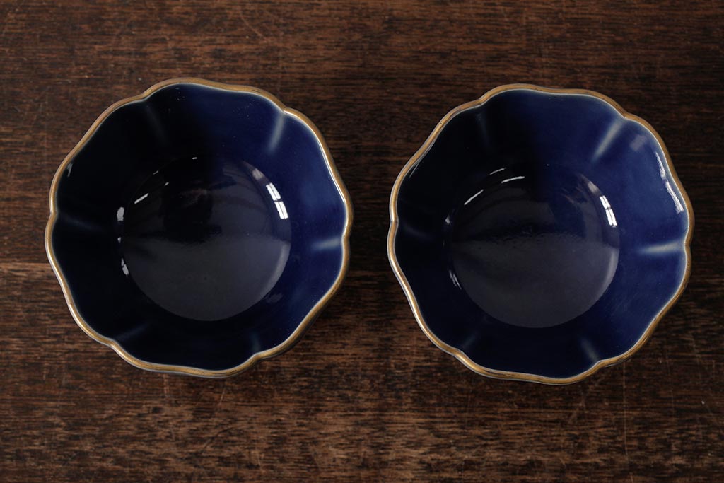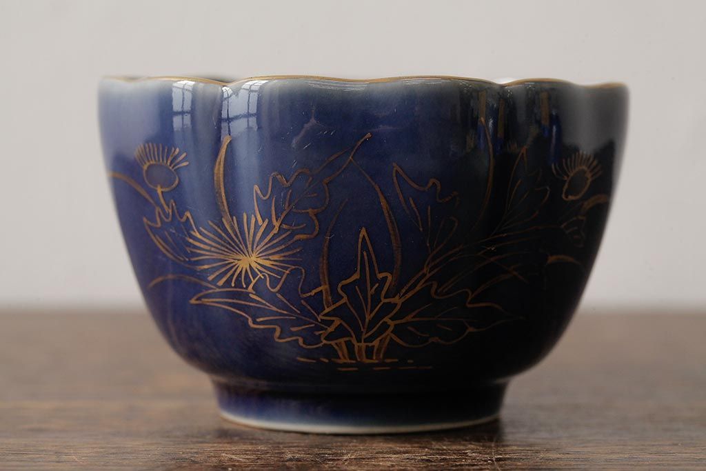 ラフジュ工房> 和食器・茶道具 > アンティーク雑貨 江戸期 古伊万里 瑠璃金彩花文蕎麦猪口2個セット(向付、和食器)(R-042523)