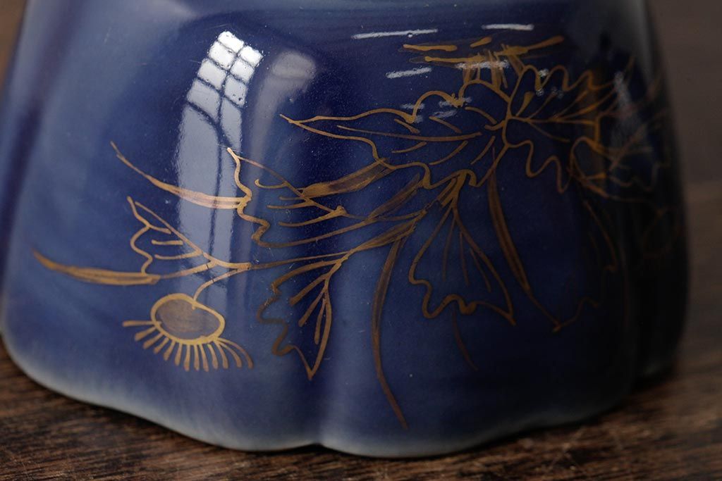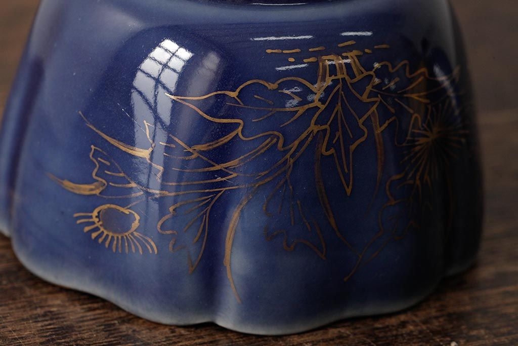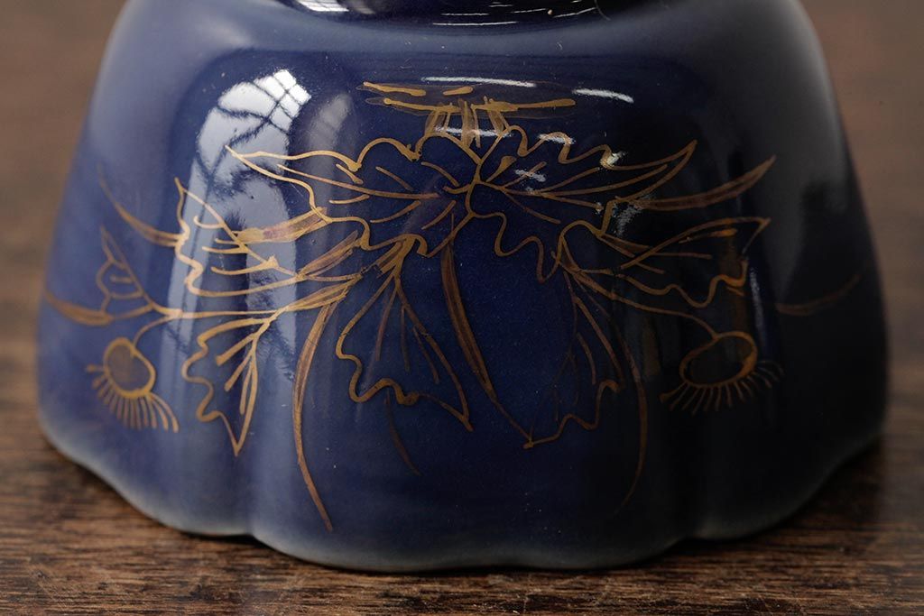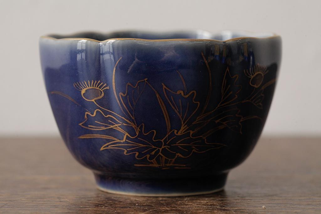 アンティーク雑貨 江戸期 古伊万里 瑠璃金彩花文蕎麦猪口2個セット(向付、和食器)(R-042523)