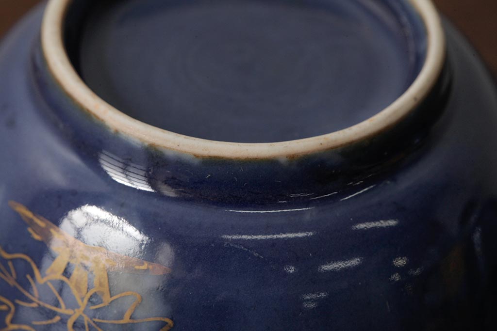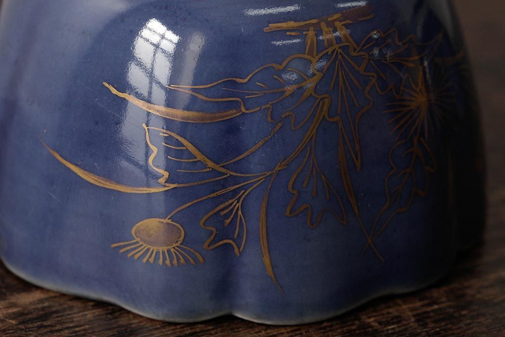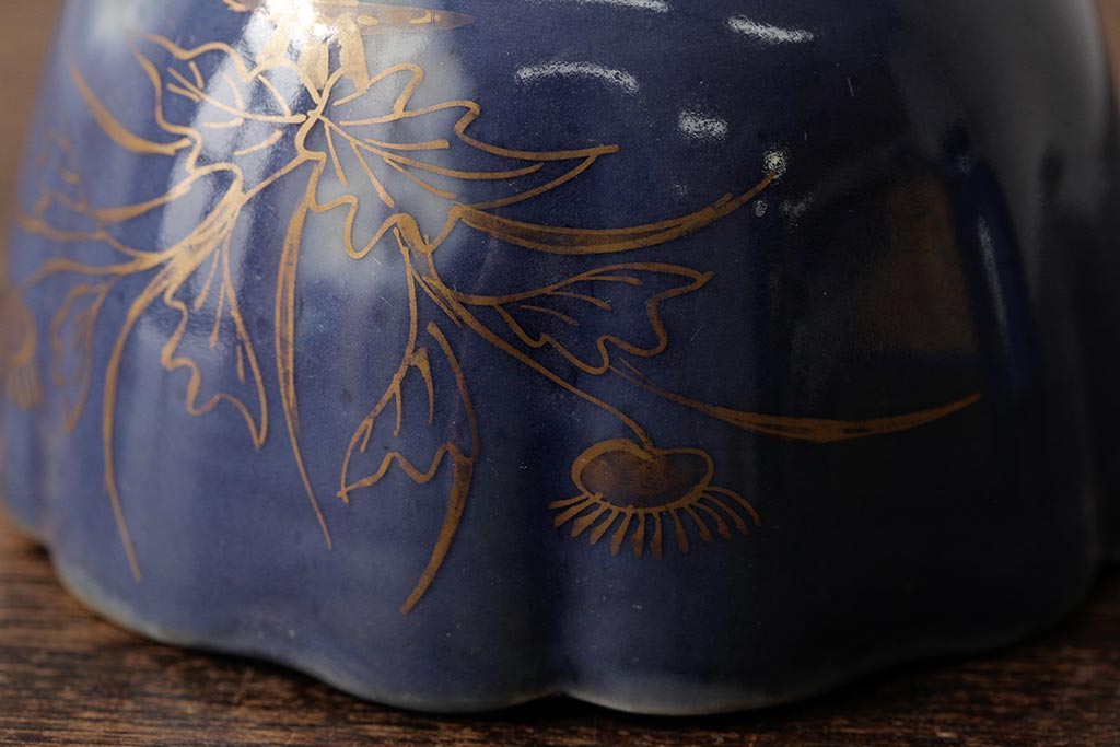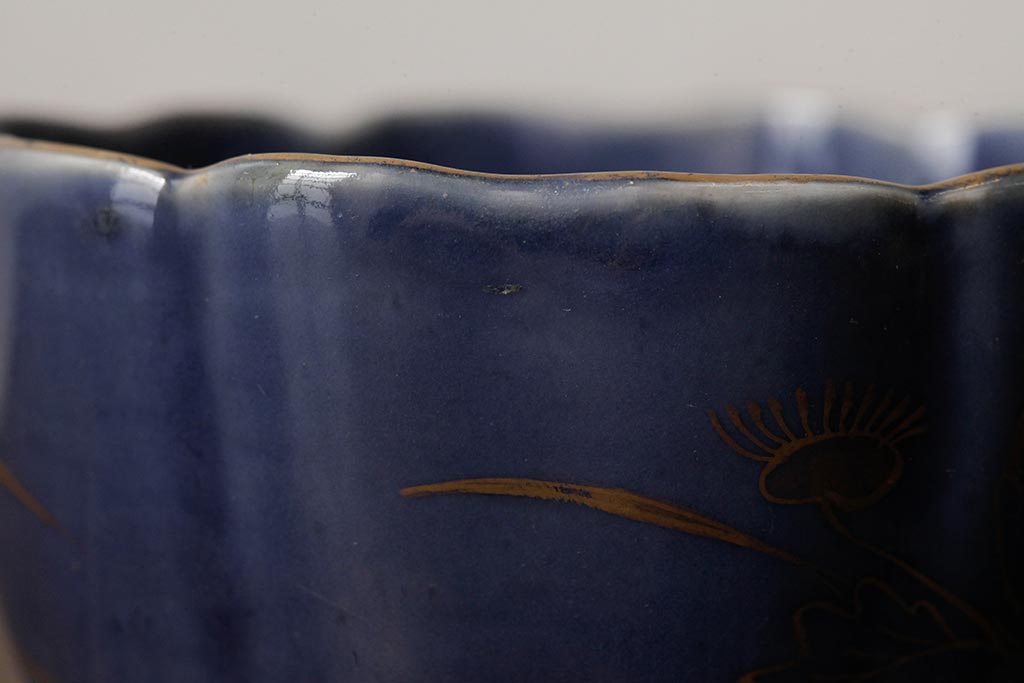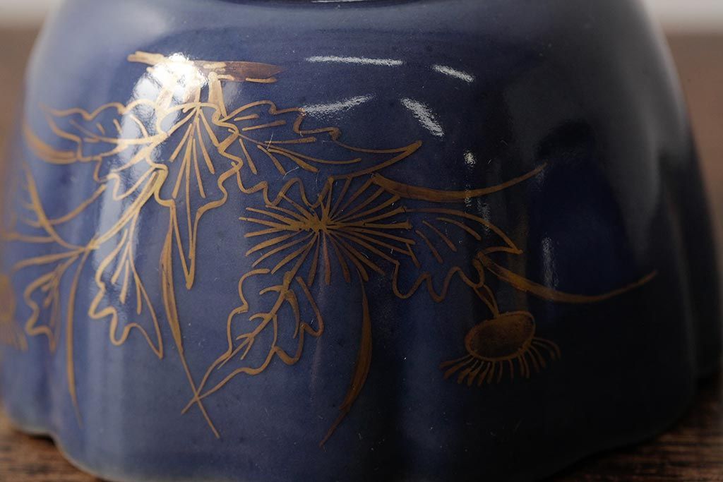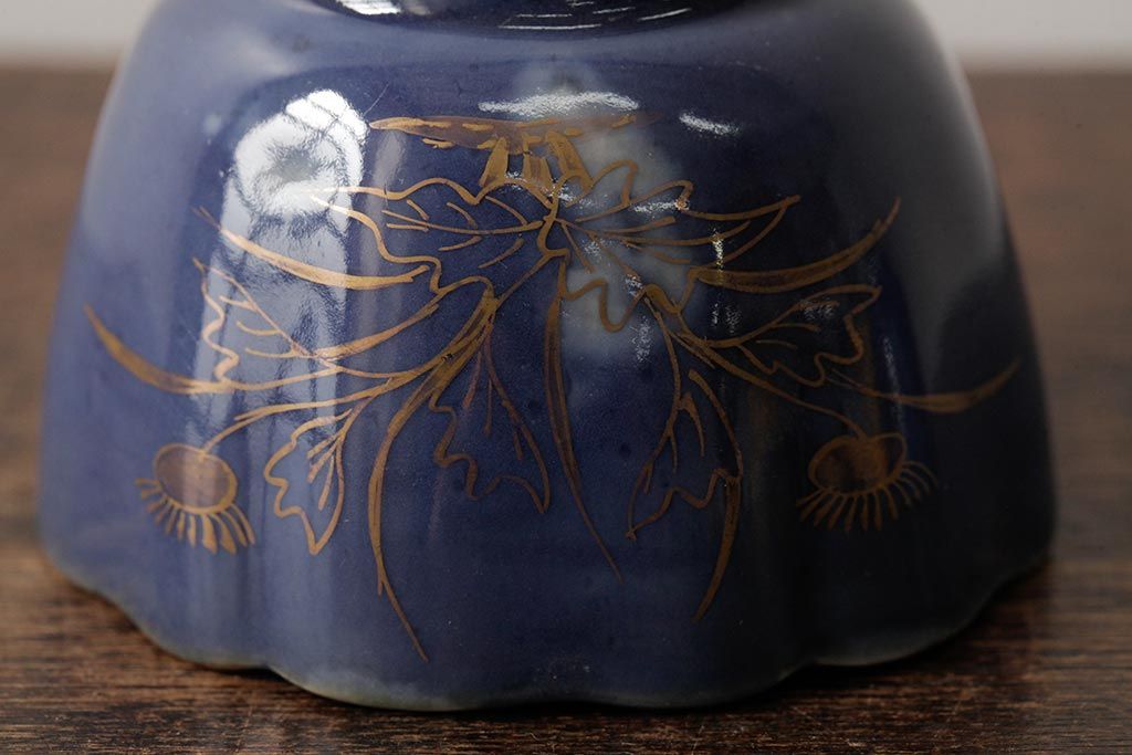 アンティーク雑貨 江戸期 古伊万里 瑠璃金彩花文蕎麦猪口2個セット(向付、和食器)(R-042524)
