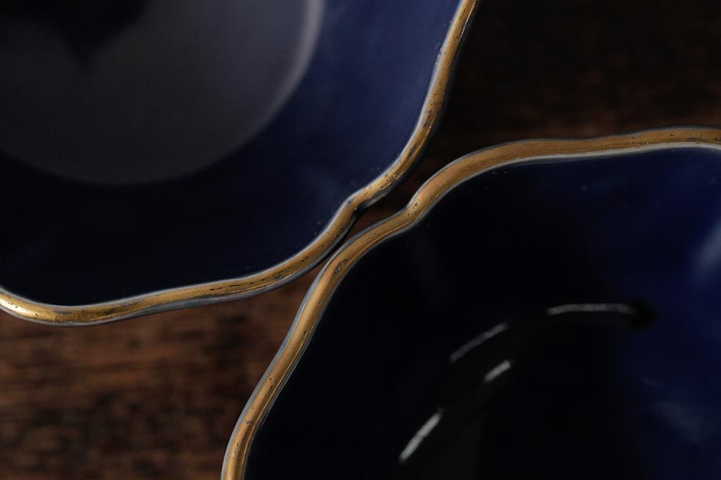 ラフジュ工房> 和食器・茶道具 > アンティーク雑貨 江戸期 古伊万里 瑠璃金彩花文蕎麦猪口2個セット(向付、和食器)(R-042524)