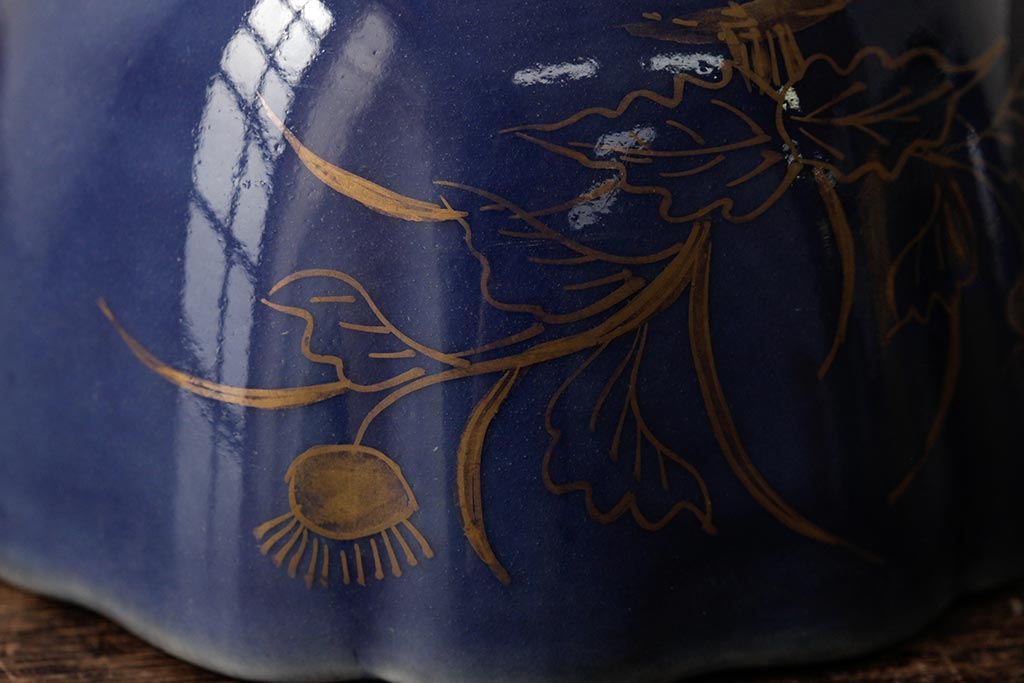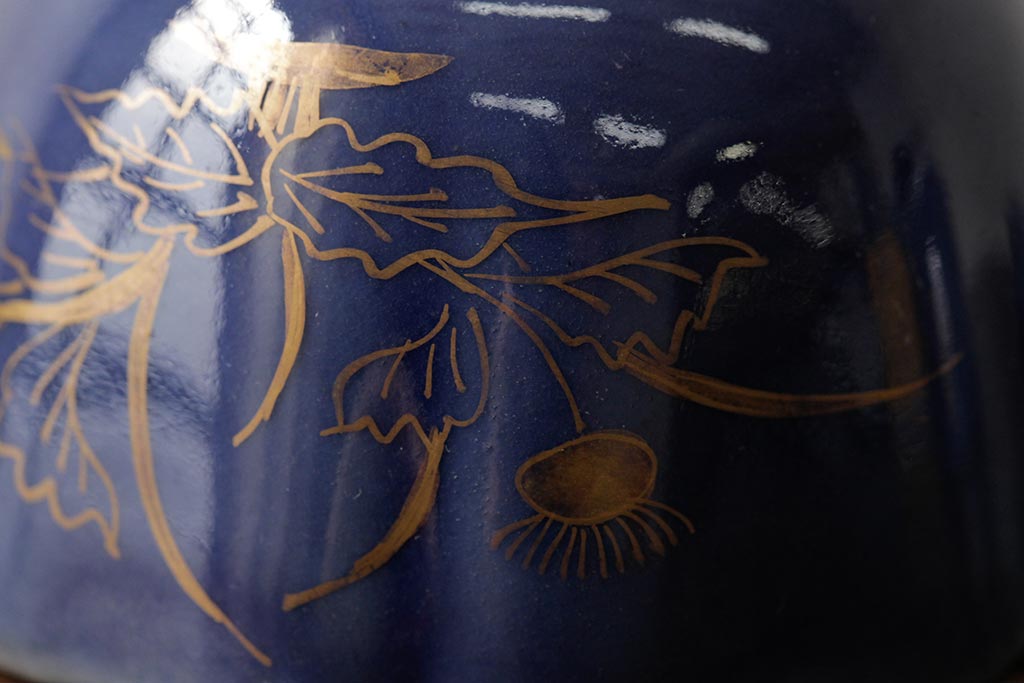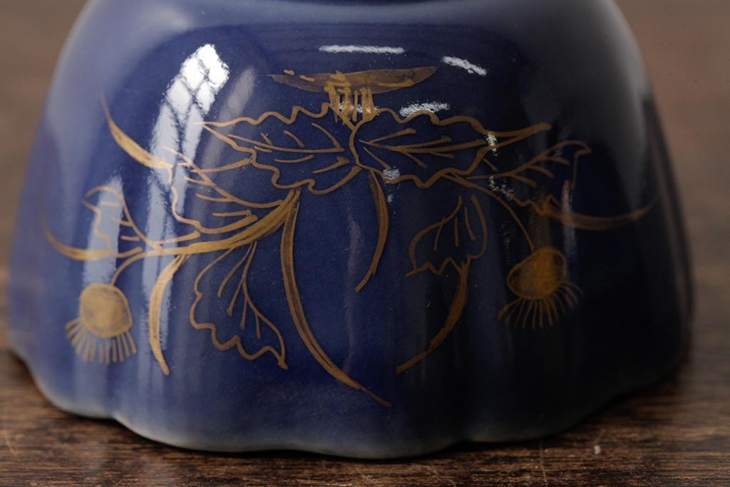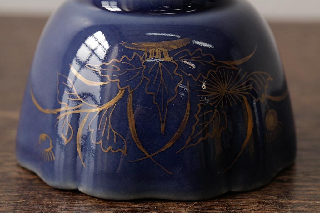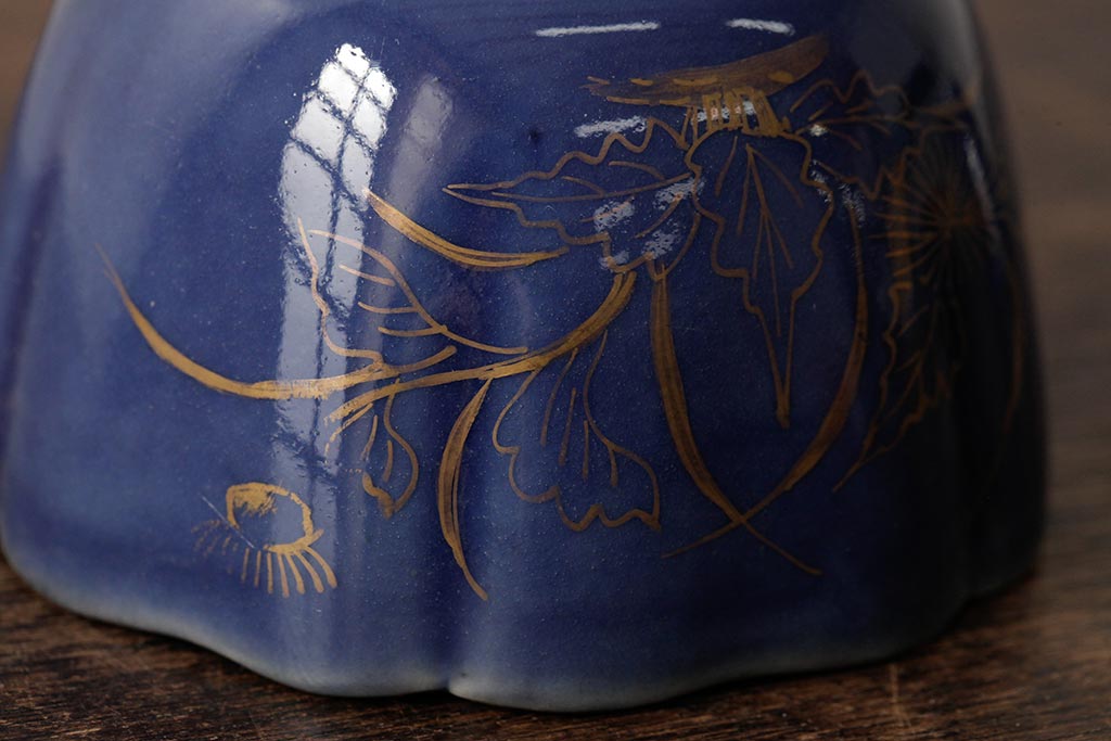 アンティーク雑貨 江戸期 古伊万里 瑠璃金彩花文蕎麦猪口2個セット(向付、和食器)(R-042525)