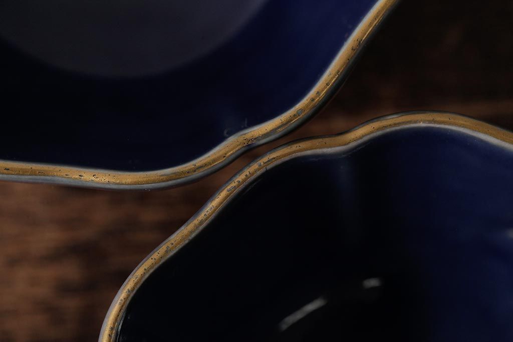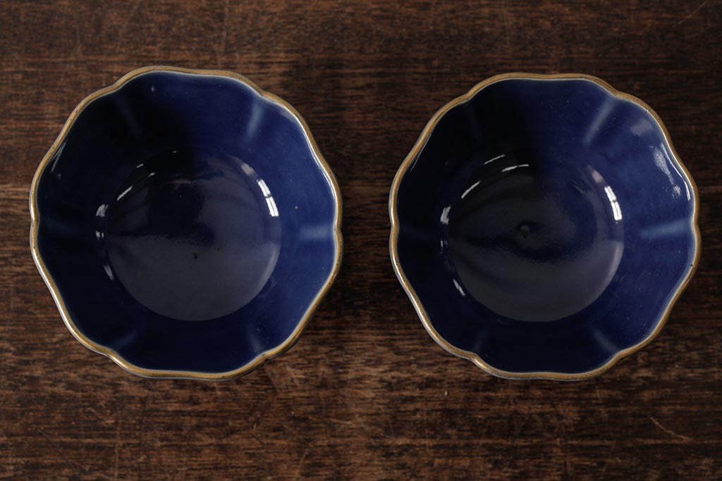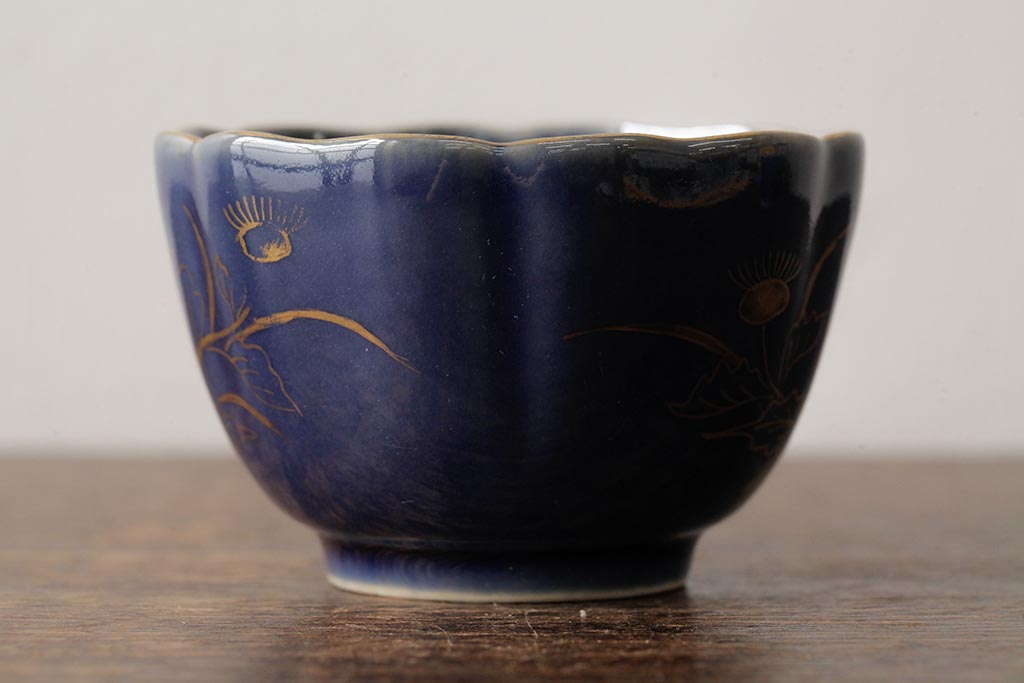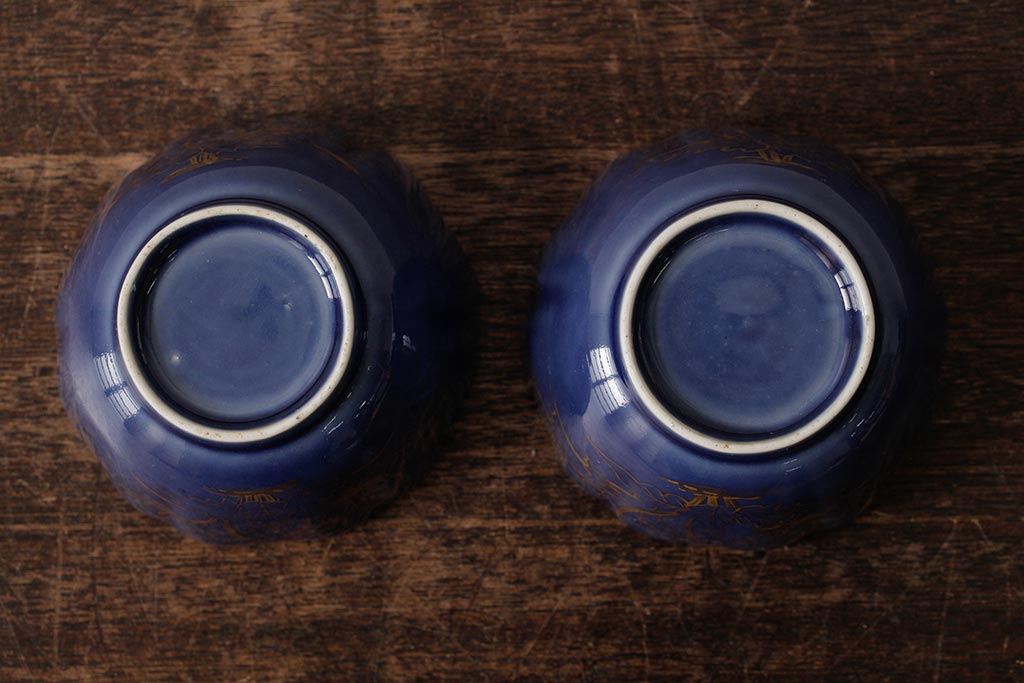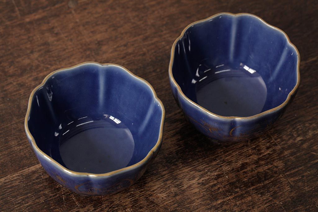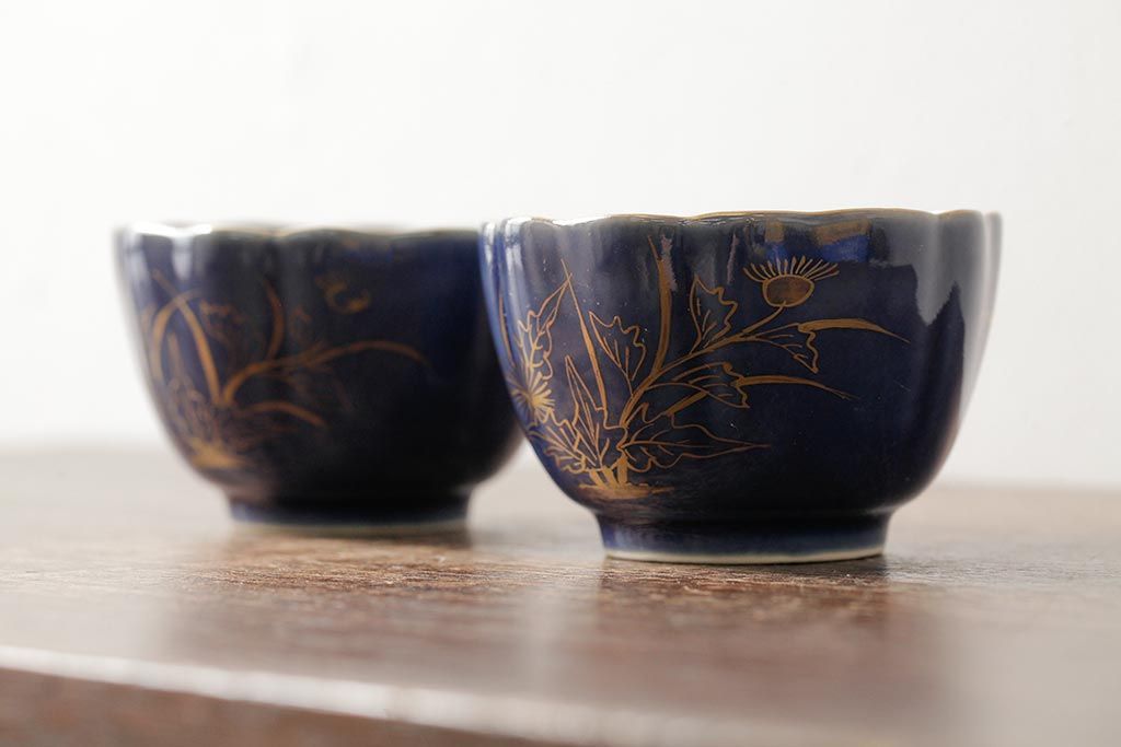 ラフジュ工房> 和食器・茶道具 > アンティーク雑貨 江戸期 古伊万里 瑠璃金彩花文蕎麦猪口2個セット(向付、和食器)(R-042525)