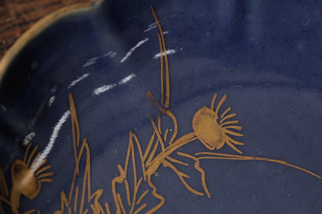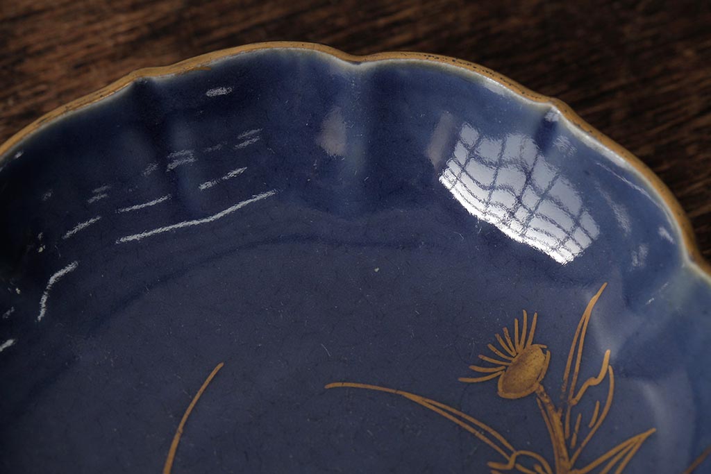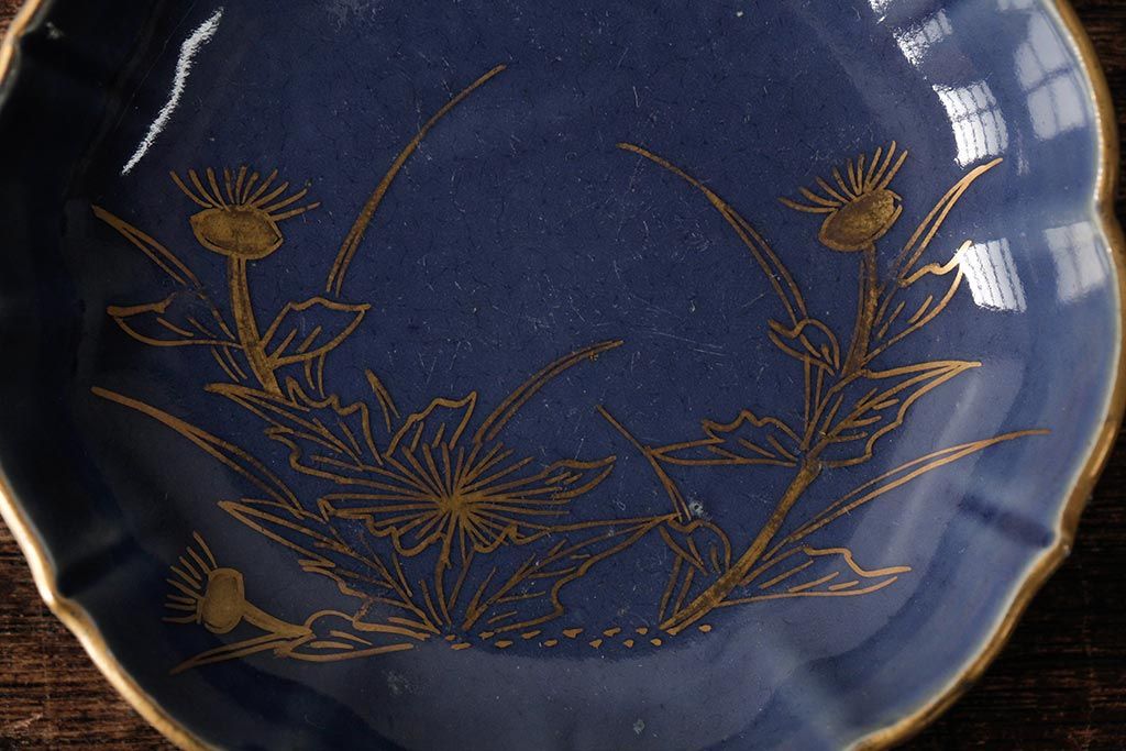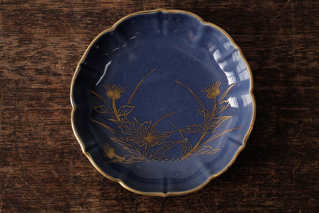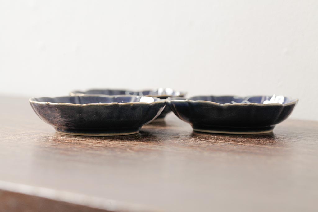 ラフジュ工房> 和食器・茶道具> 皿 > アンティーク雑貨 江戸期 古伊万里 瑠璃金彩花文小皿3枚セット(変形皿、和食器)(R-042527)