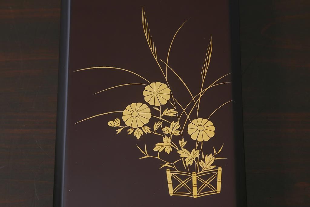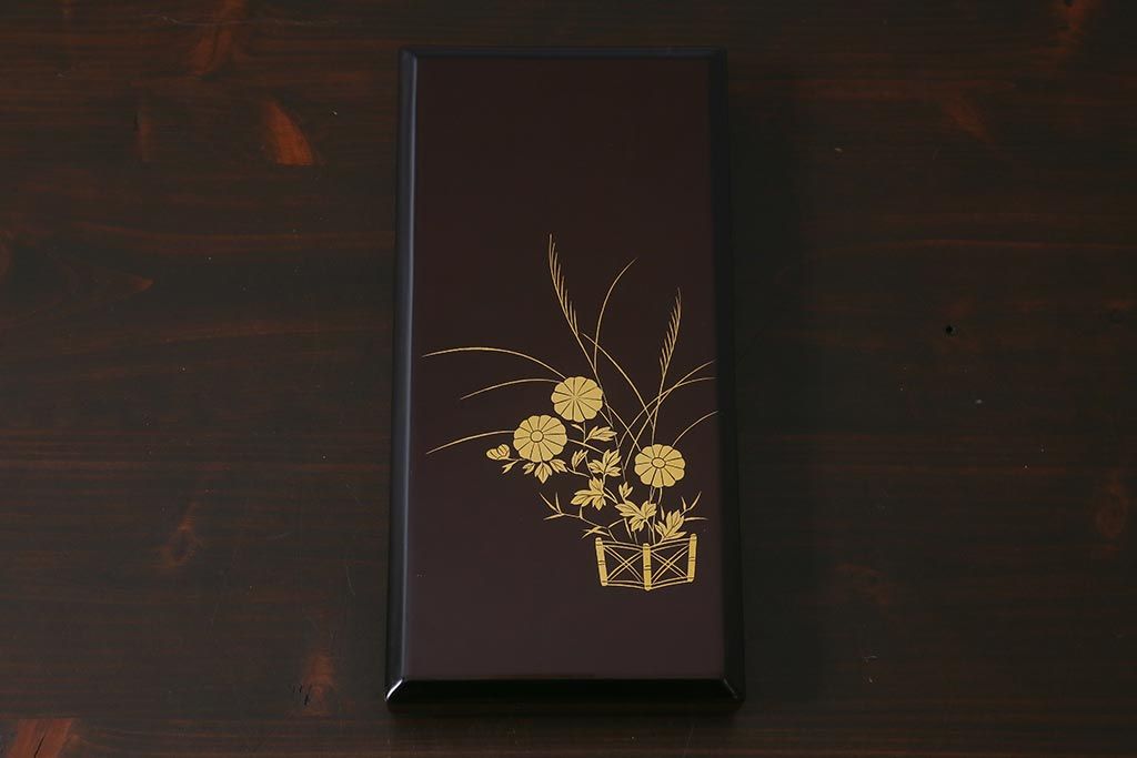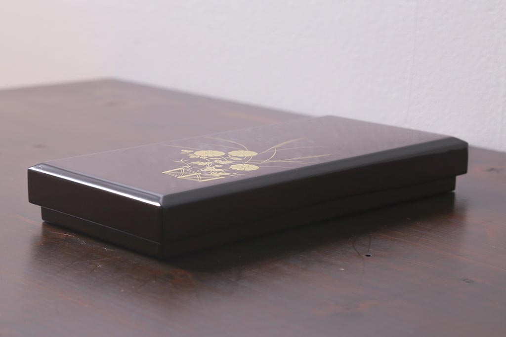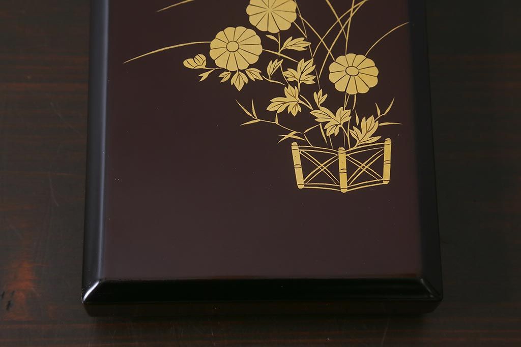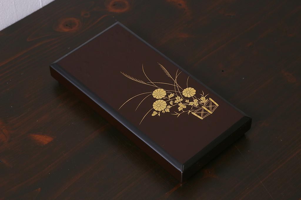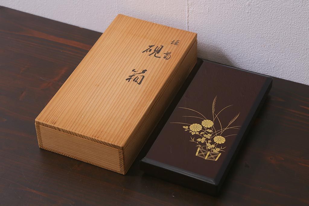 平安象彦 共箱 垣菊蒔絵 硯箱(木製漆器)(R-042359)