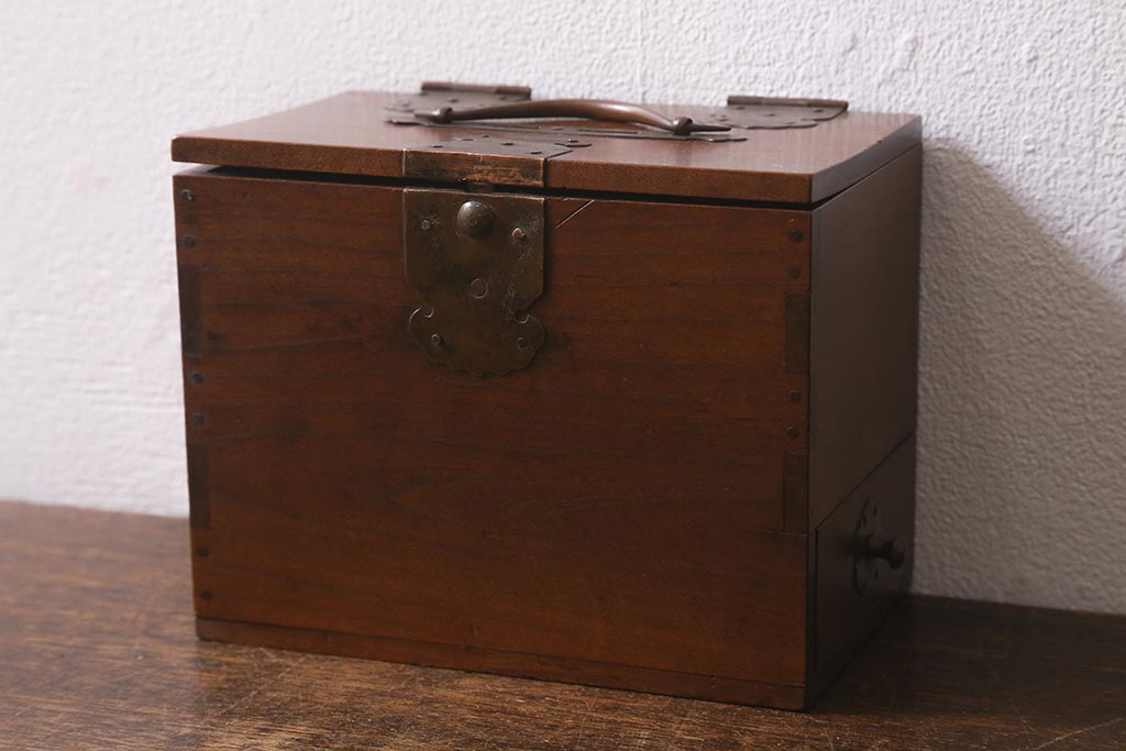 アンティーク雑貨 古民具 明治大正期 趣きある佇まいの印箱(小物収納、小引き出し)(R-042558)