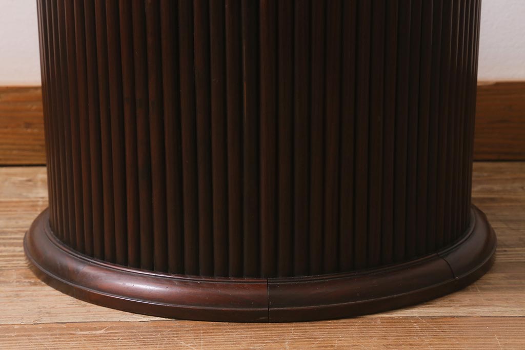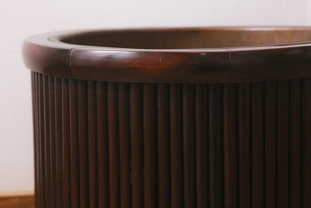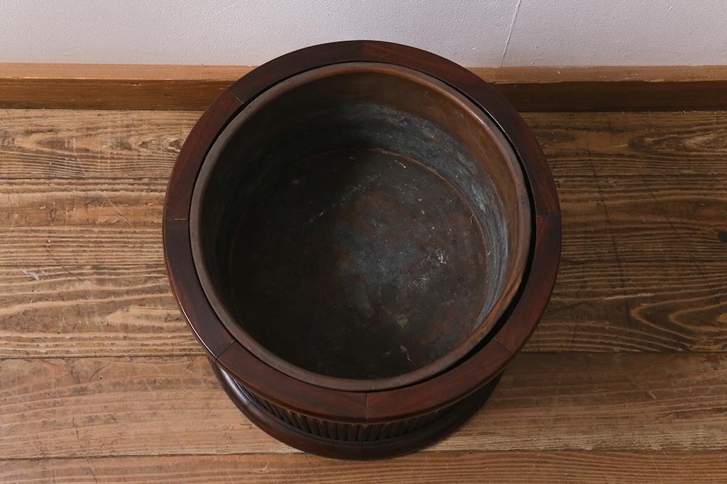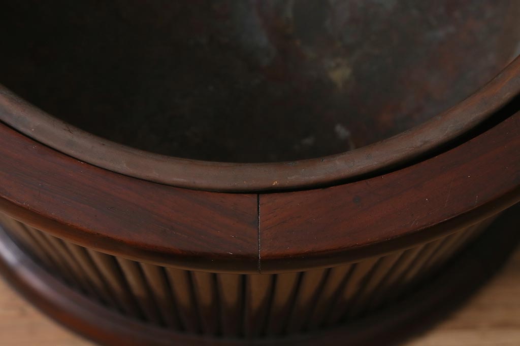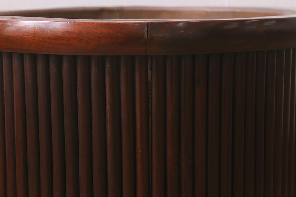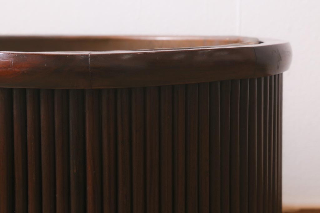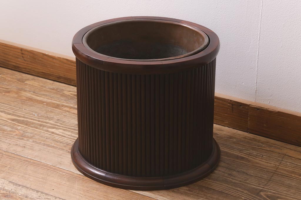 火鉢> 木製火鉢 > アンティーク雑貨 和製アンティーク 紫檀(シタン)材 珍品 円筒形 上質な造りの丸火鉢(手あぶり、木製火鉢)(R-042611)