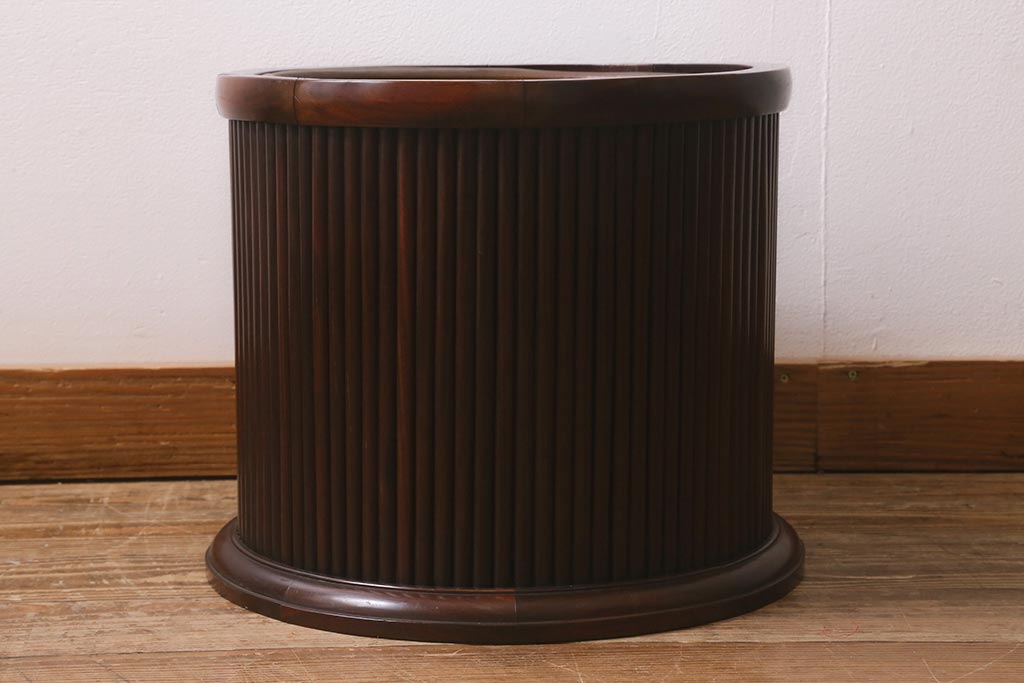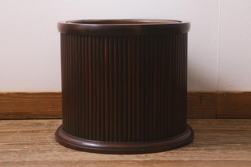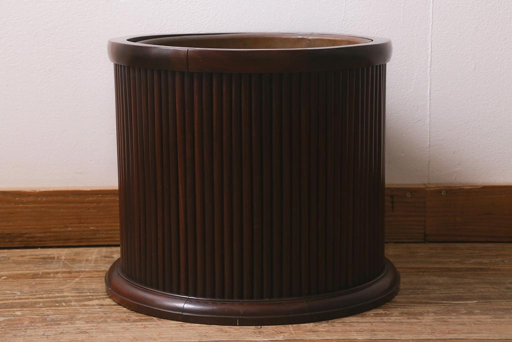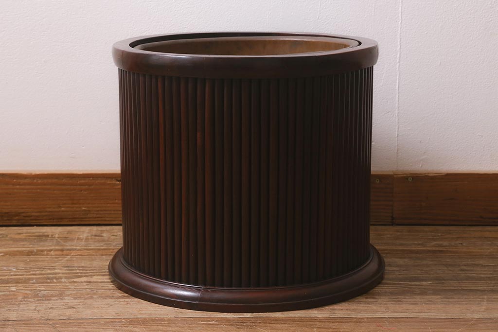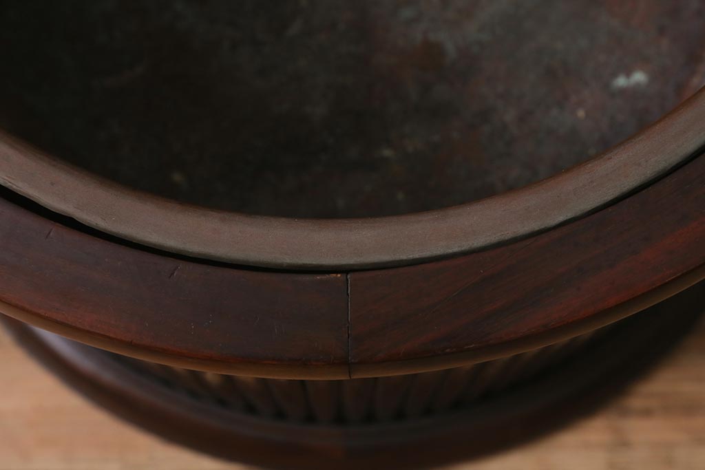 火鉢> 木製火鉢 > アンティーク雑貨 和製アンティーク 紫檀(シタン)材 珍品 円筒形 上質な造りの丸火鉢(手あぶり、木製火鉢)(R-042612)