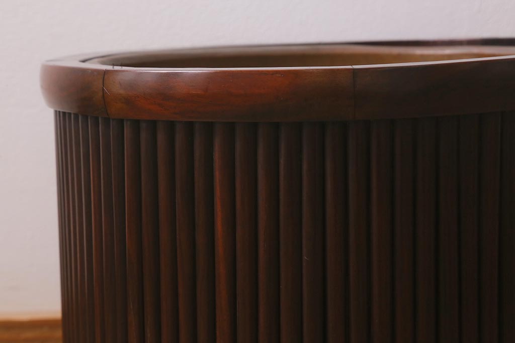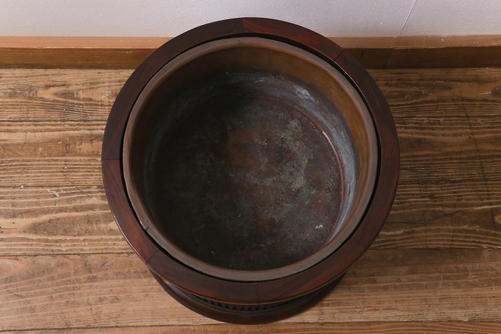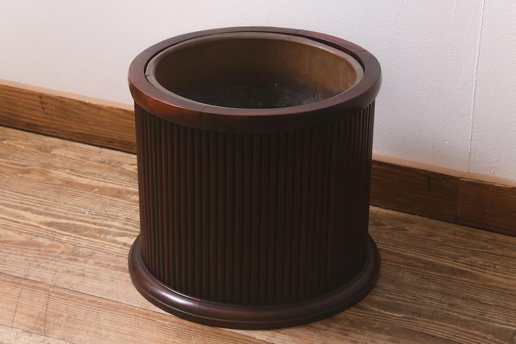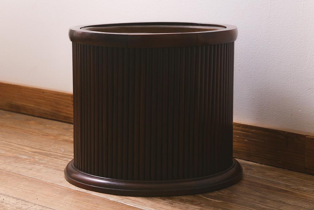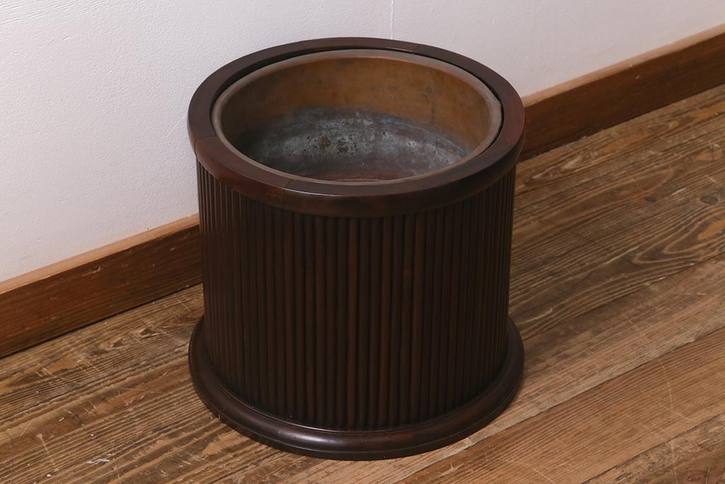火鉢> 木製火鉢 > アンティーク雑貨 和製アンティーク 紫檀(シタン)材 珍品 円筒形 上質な造りの丸火鉢(手あぶり、木製火鉢)(R-042612)