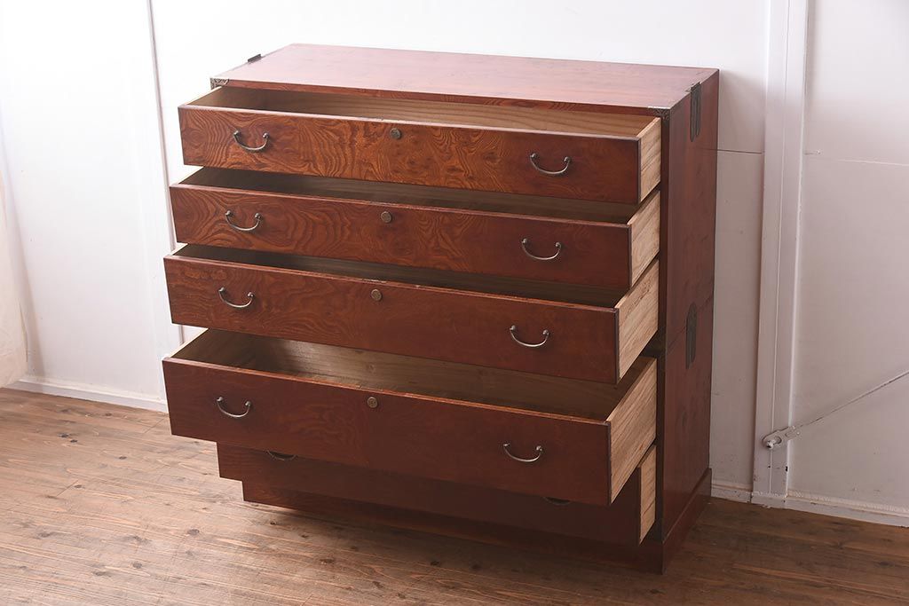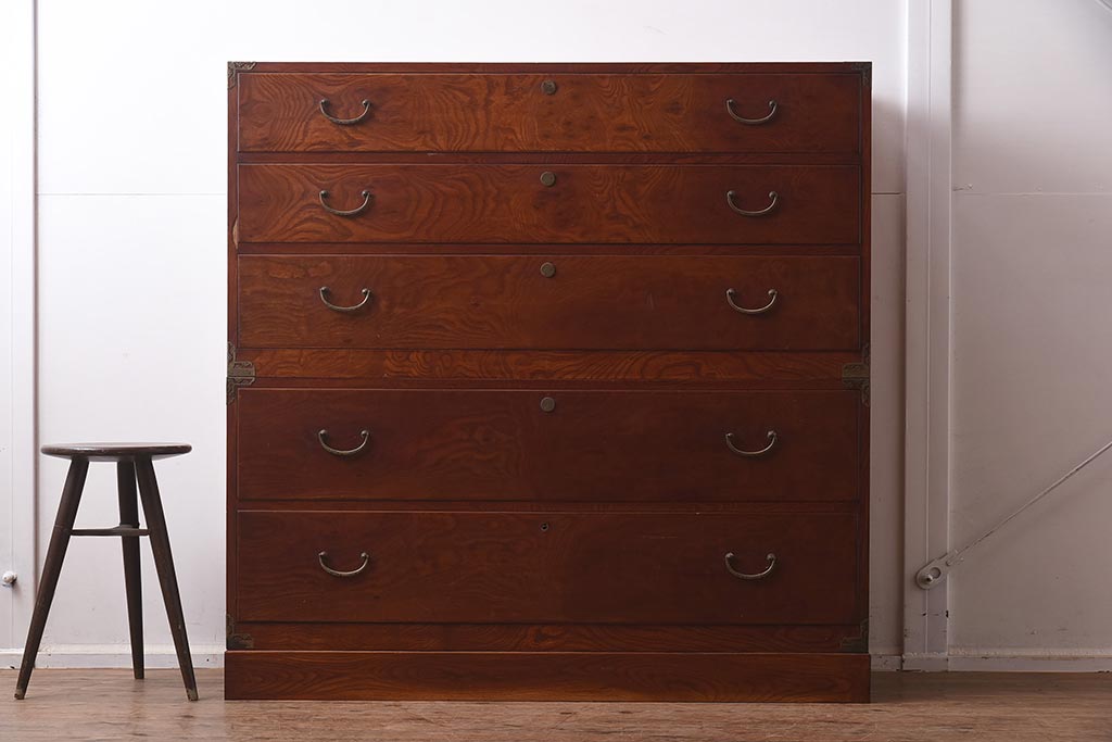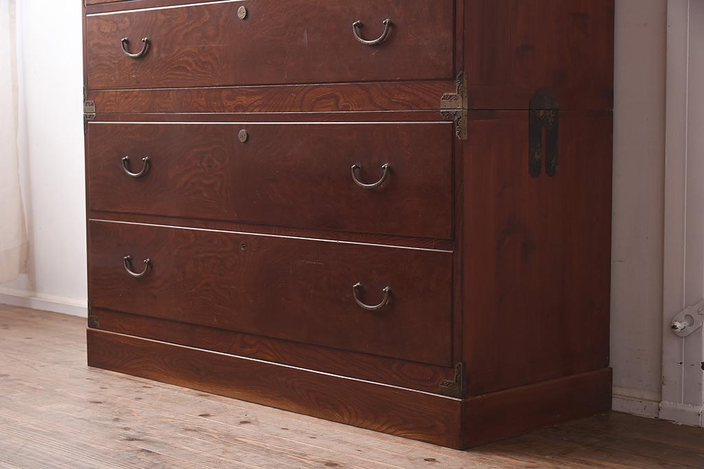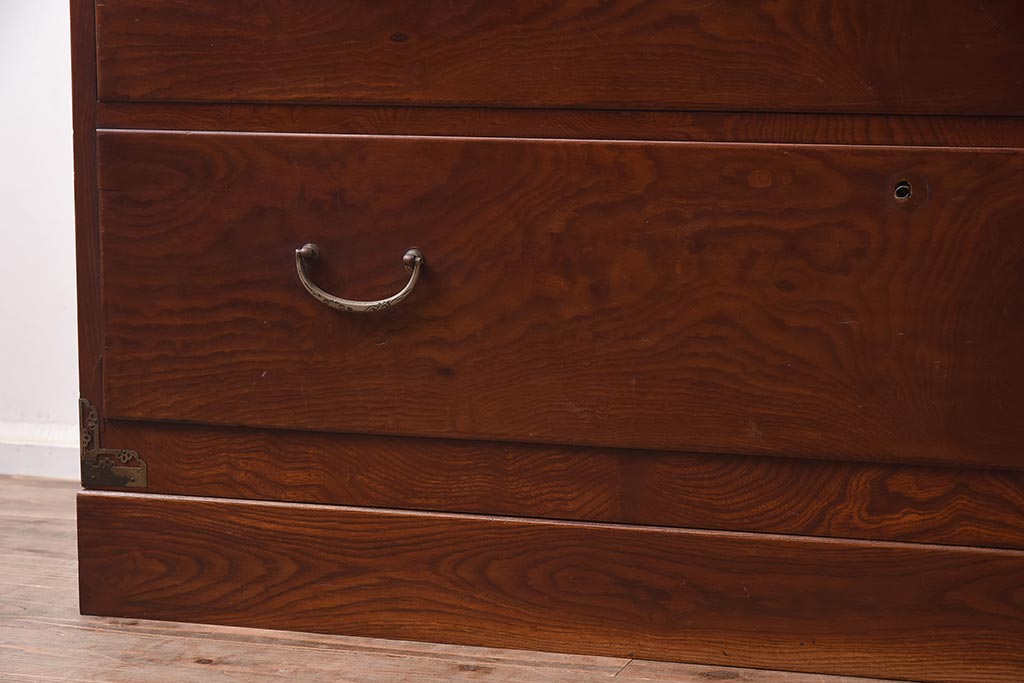 ヴィンテージ家具 和製アンティーク 前面ケヤキ材 流れるような杢目が美しい重ね箪笥(衣装箪笥、引き出し、ビンテージ)(R-042335)