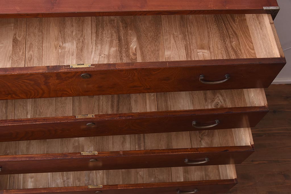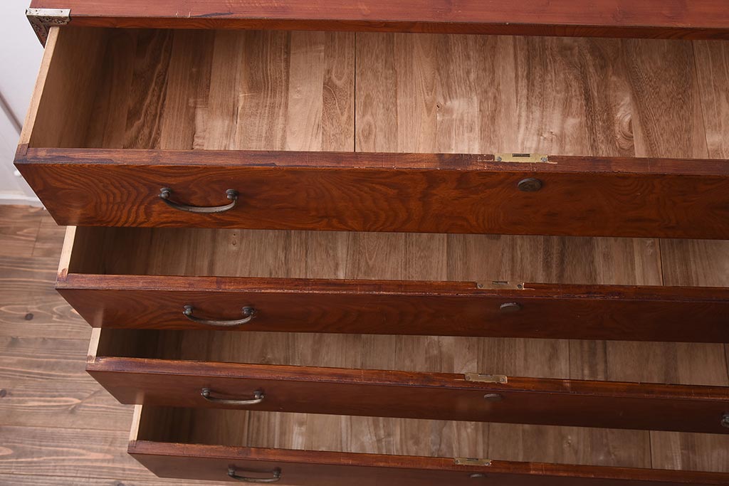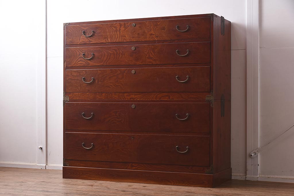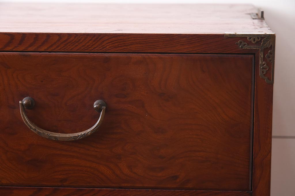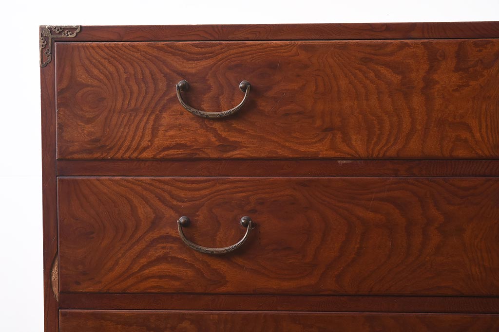 ヴィンテージ家具 和製アンティーク 前面ケヤキ材 流れるような杢目が美しい重ね箪笥(衣装箪笥、引き出し、ビンテージ)(R-042335)