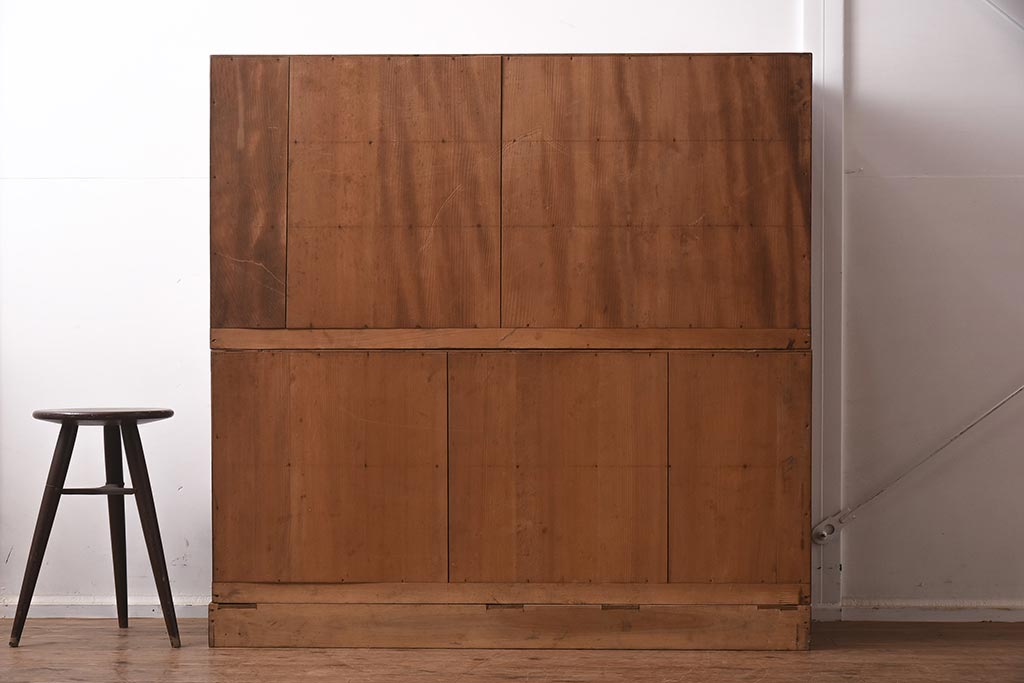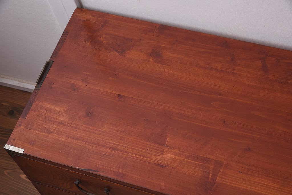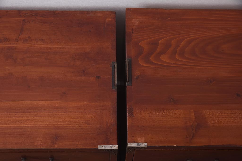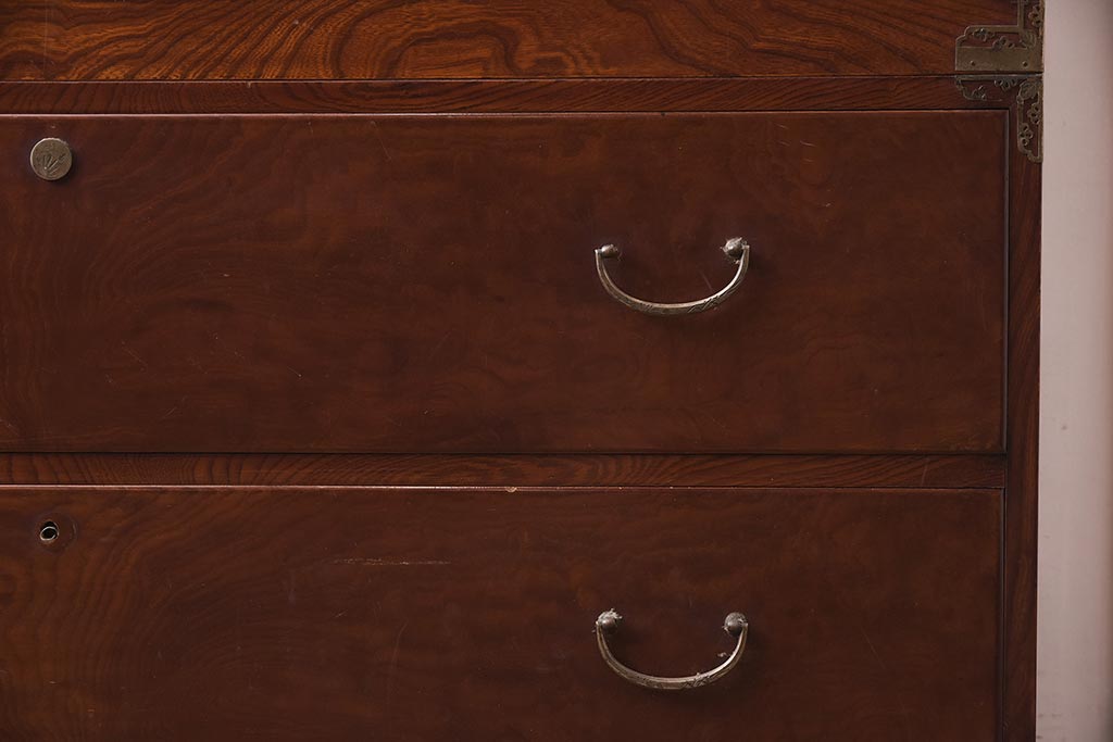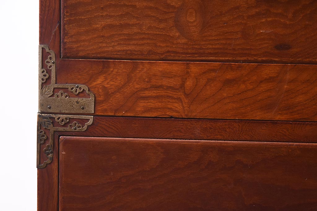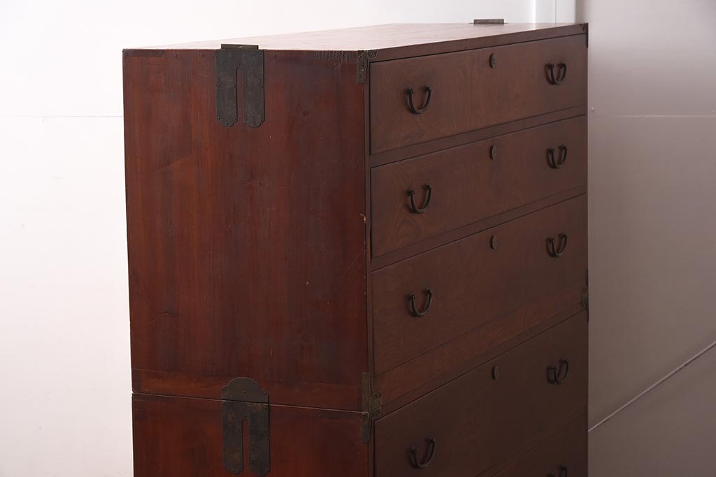 和箪笥> 衣装箪笥 > ヴィンテージ家具 和製アンティーク 前面ケヤキ材 流れるような杢目が美しい重ね箪笥(衣装箪笥、引き出し、ビンテージ)(R-042335)