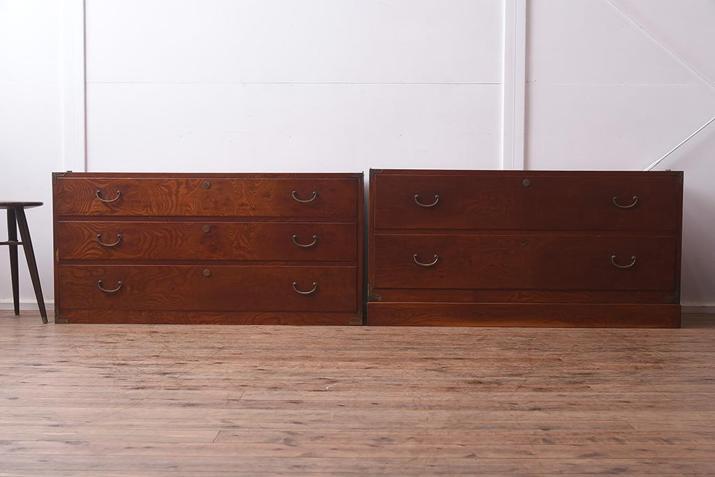 ヴィンテージ家具 和製アンティーク 前面ケヤキ材 流れるような杢目が美しい重ね箪笥(衣装箪笥、引き出し)(R-042335)です。