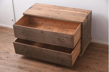 和箪笥> 衣装箪笥 > レトロ家具 昭和中期 桐材 シンプルで素朴な箪笥2段(ローボード、テレビ台、チェスト、引き出し、桐箪笥、桐たんす)(R-042606)