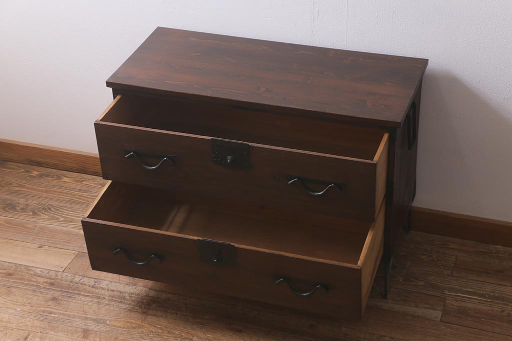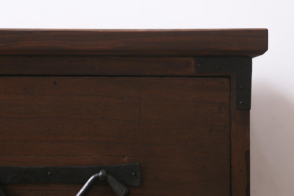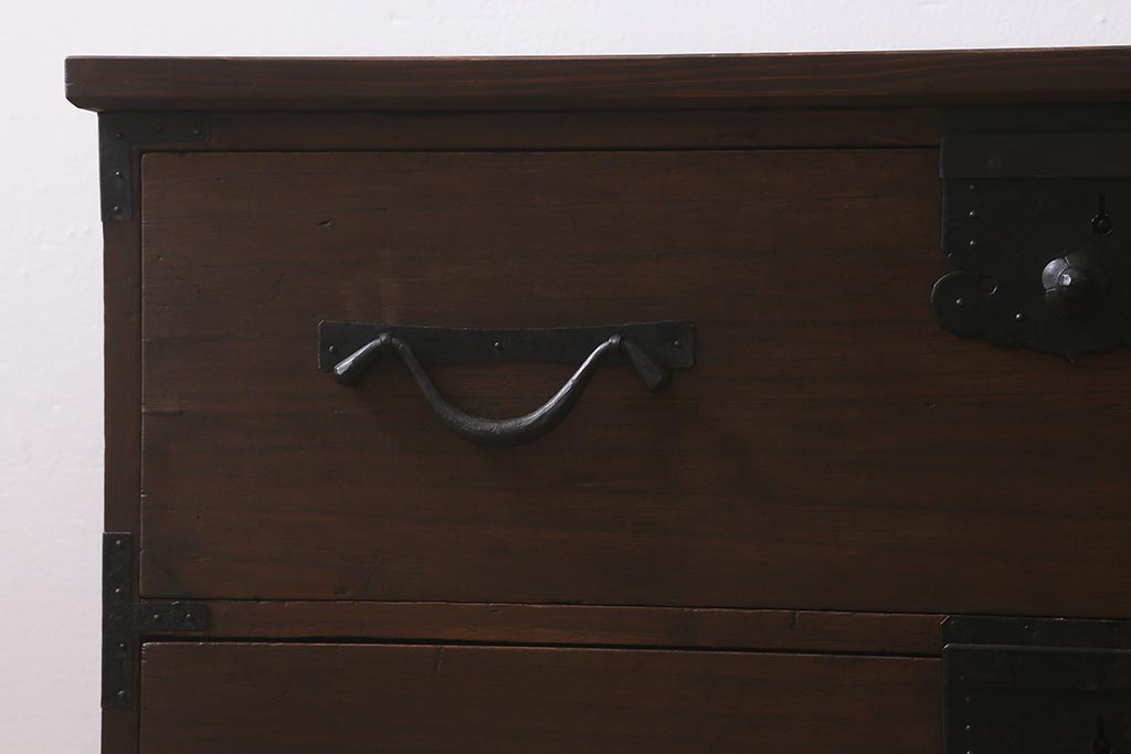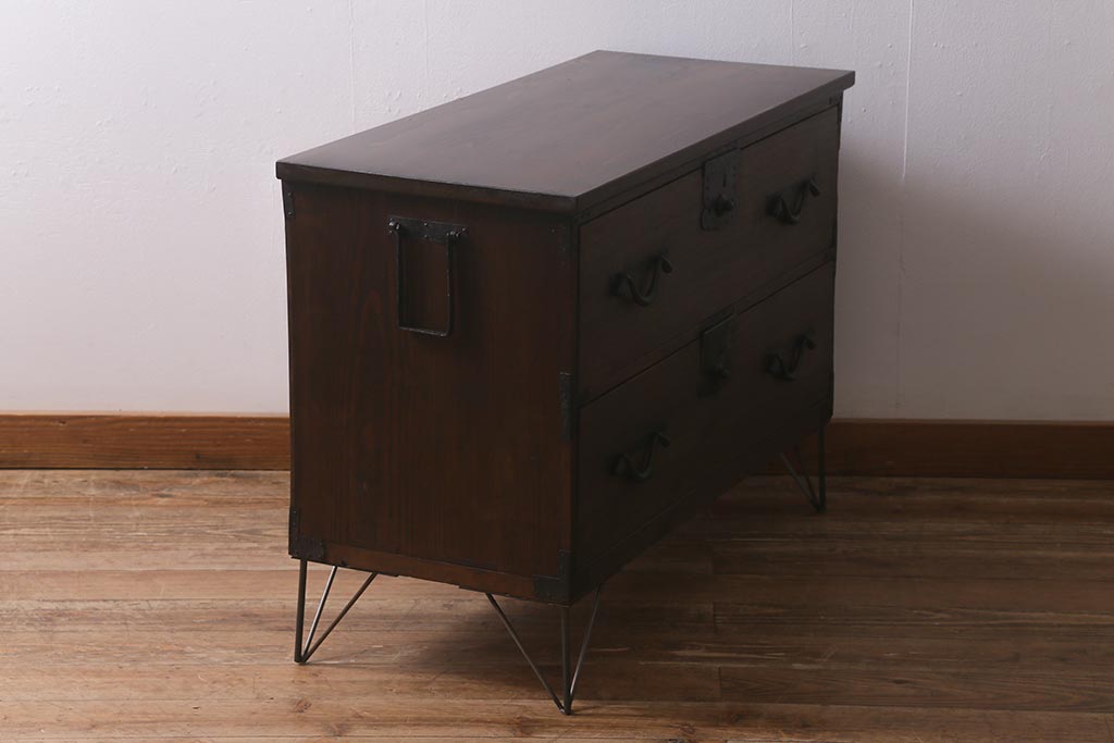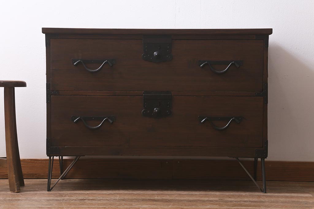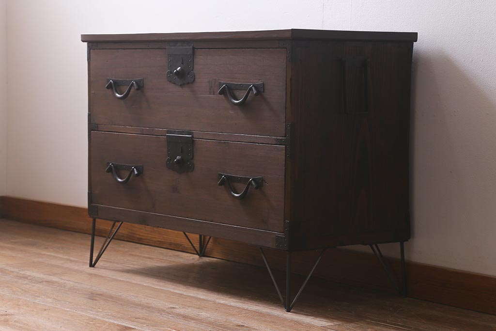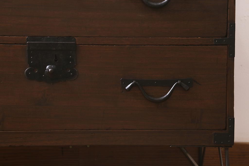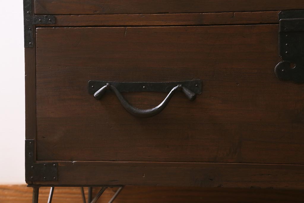 和箪笥> 衣装箪笥 > アンティーク家具 和製アンティーク 鉄脚リメイク 大きな蛭手が目を引く箪笥ローボード(テレビ台、衣装箪笥、チェスト、引き出し、リビングボード)(R-042604)