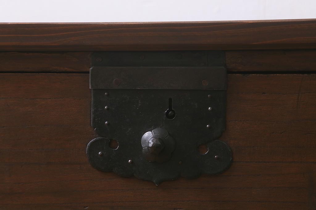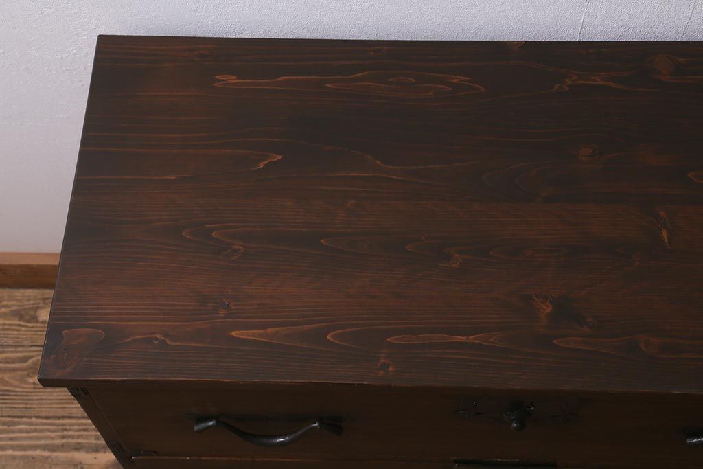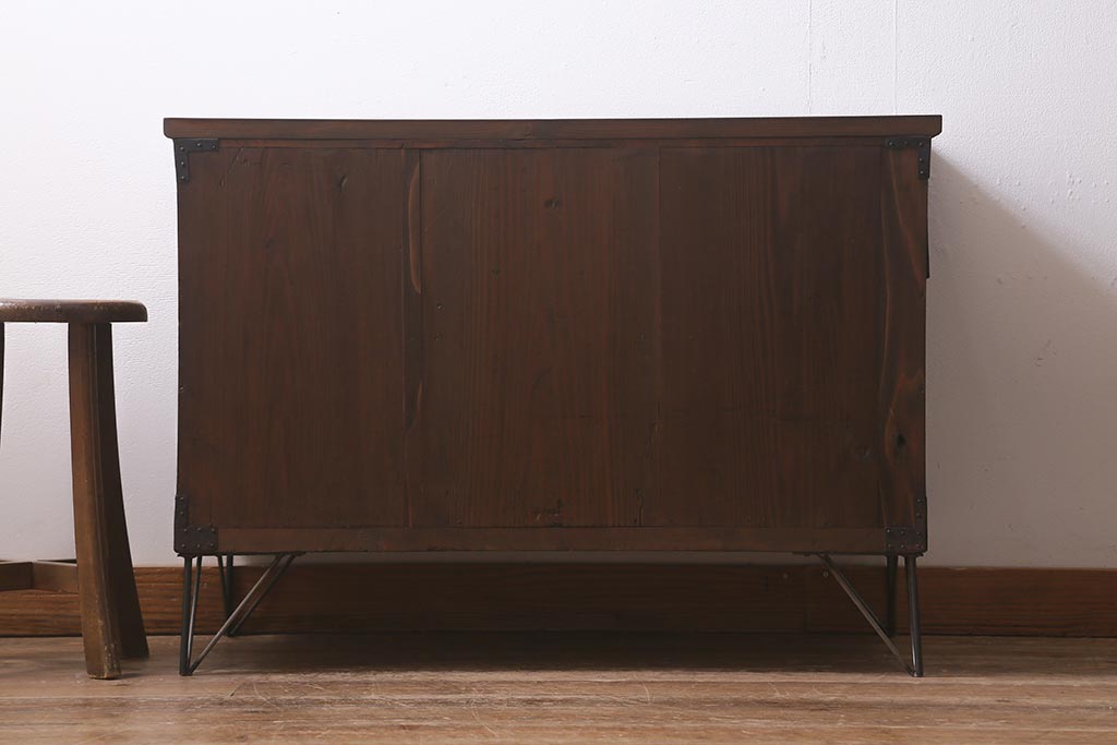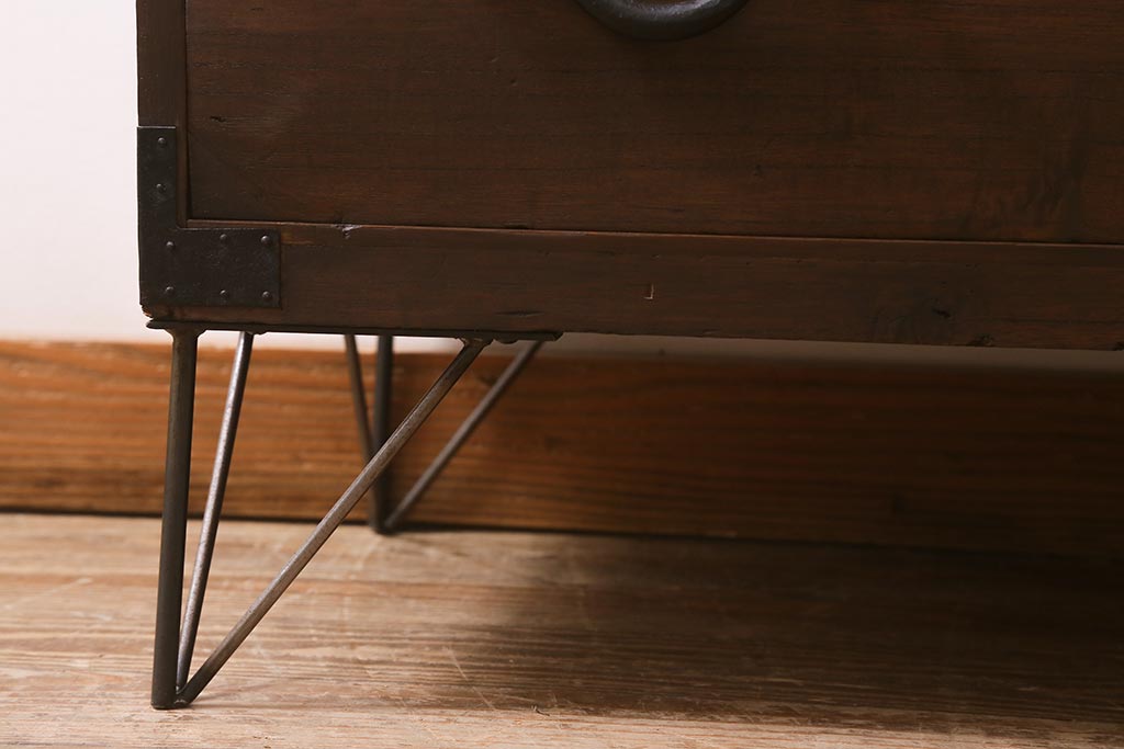 和箪笥 > アンティーク家具 和製アンティーク 鉄脚リメイク 大きな蛭手が目を引く箪笥ローボード(テレビ台、衣装箪笥、チェスト、引き出し、リビングボード)(R-042604)