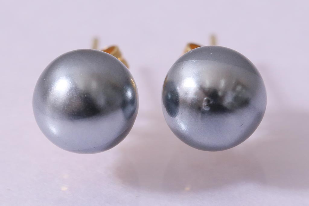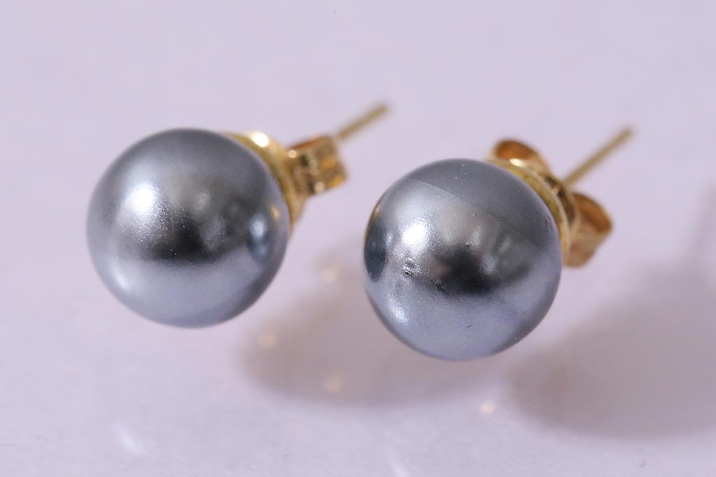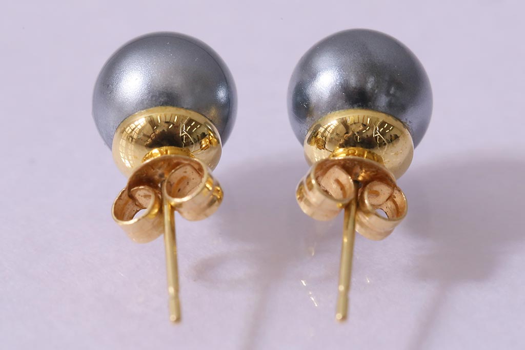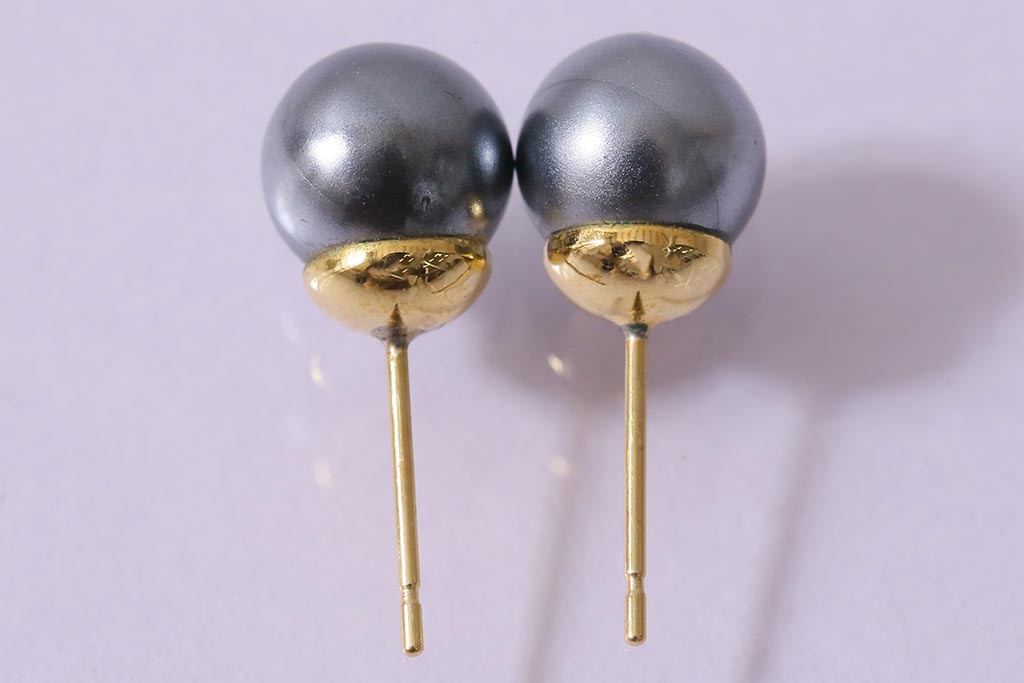 ラフジュ工房> アクセサリー > ヴィンテージアクセサリー K18(18金) グレーパールのようなしっとりとした輝きを放つビンテージピアス(R-042563)