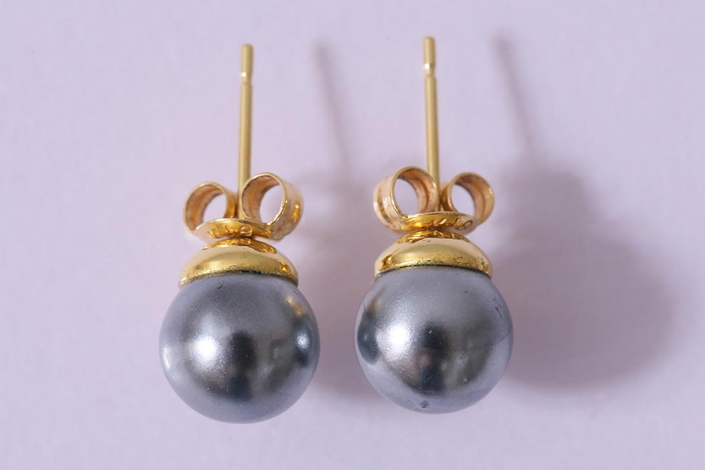 ラフジュ工房> 雑貨 > ヴィンテージアクセサリー K18(18金) グレーパールのようなしっとりとした輝きを放つビンテージピアス(R-042563)