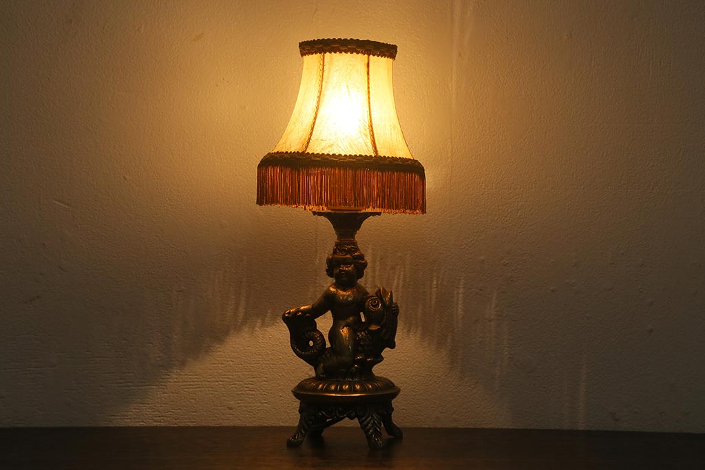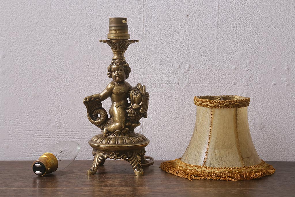 ヴィンテージ照明 真鍮製 愛らしい子供が印象的なテーブルランプ(デスクライト、卓上照明、ビンテージ)(R-042616)
