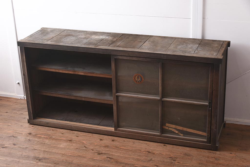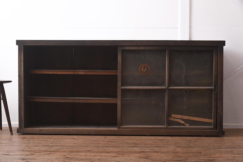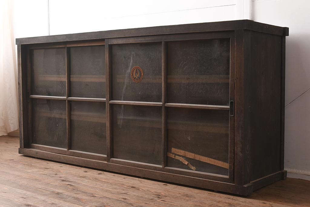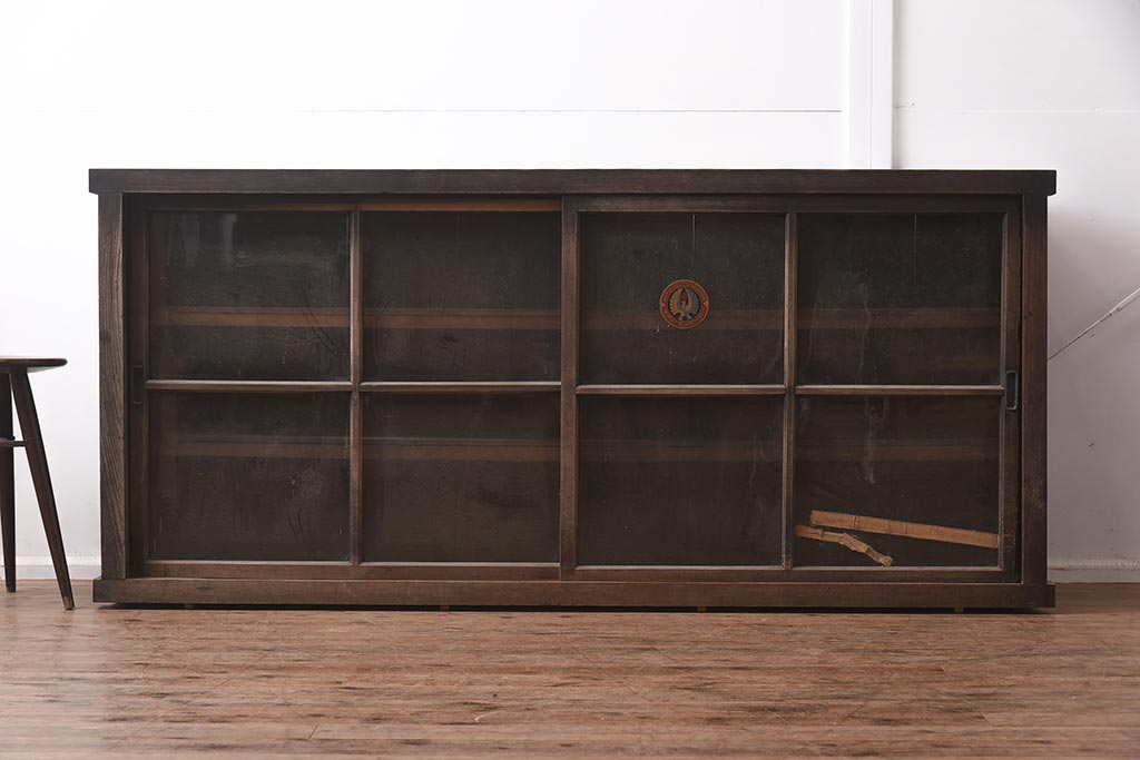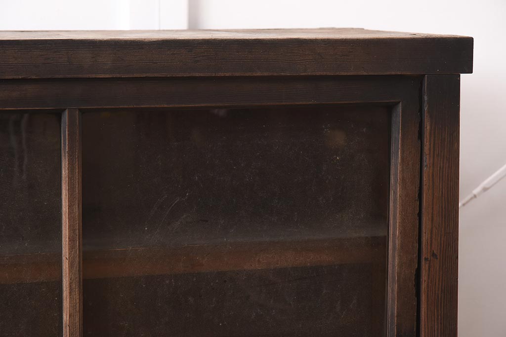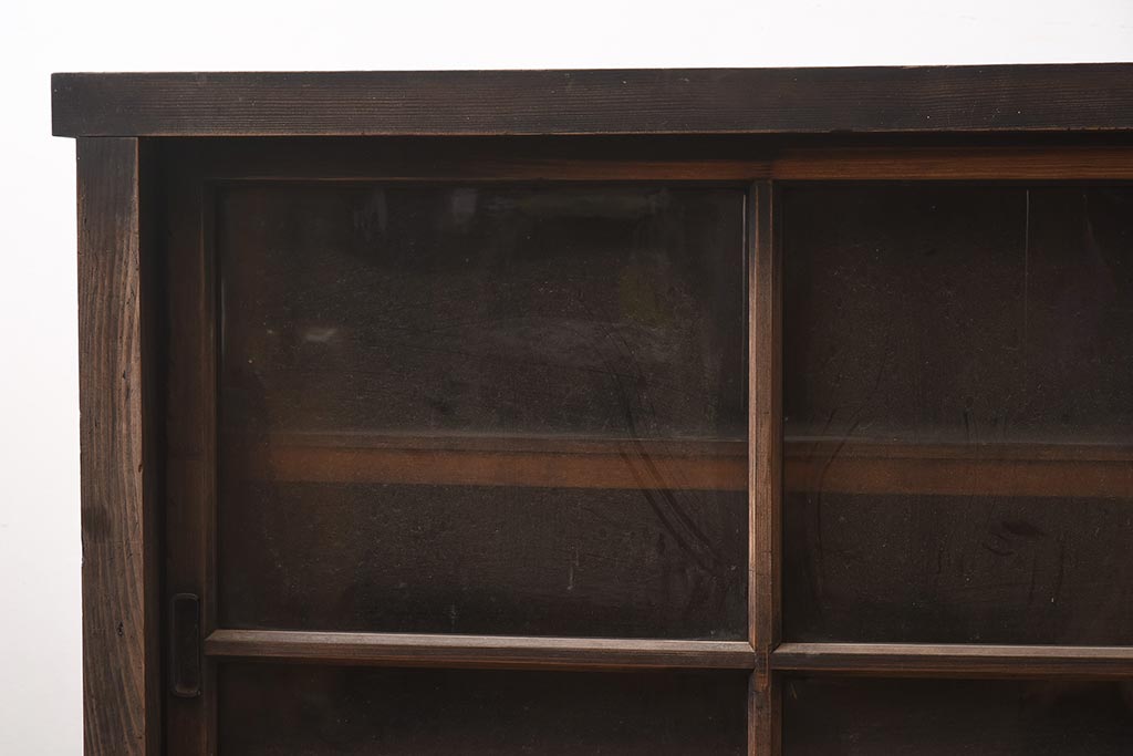 アンティーク家具 木製 ディスプレイを楽しめるシンプルなガラス戸棚(サイドボード)(R-042630)です。