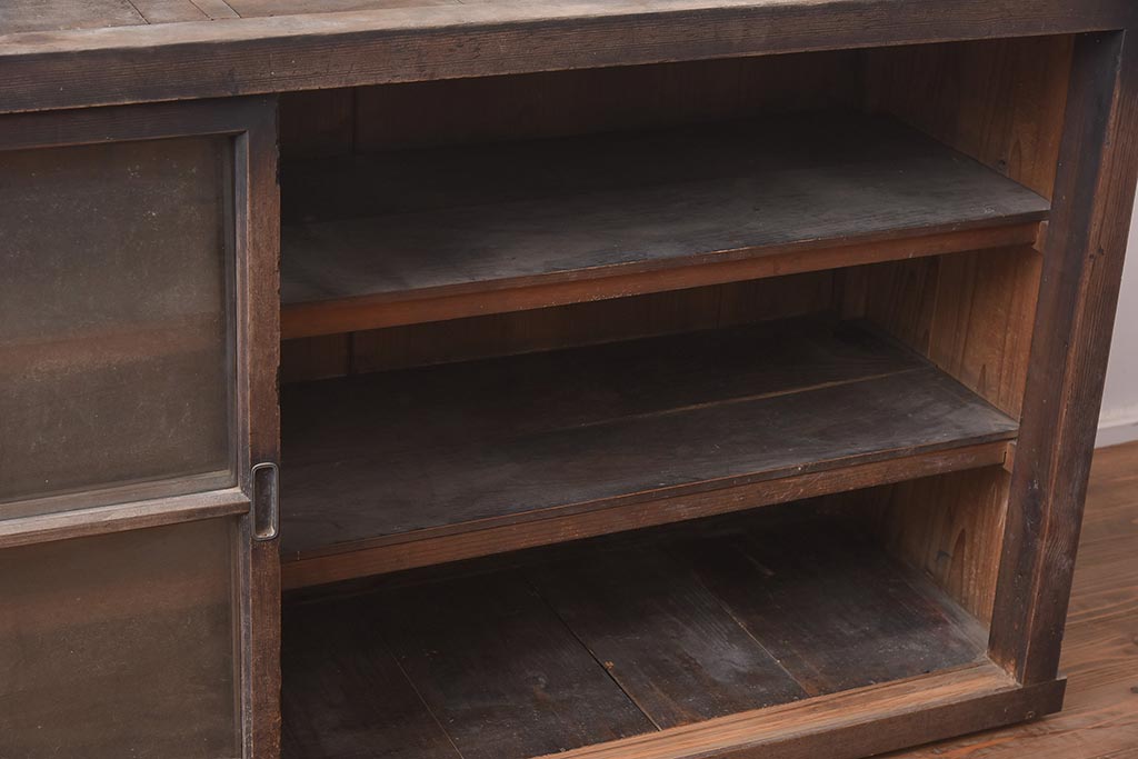 アンティーク家具 木製 ディスプレイを楽しめるシンプルなガラス戸棚(サイドボード)(R-042630)