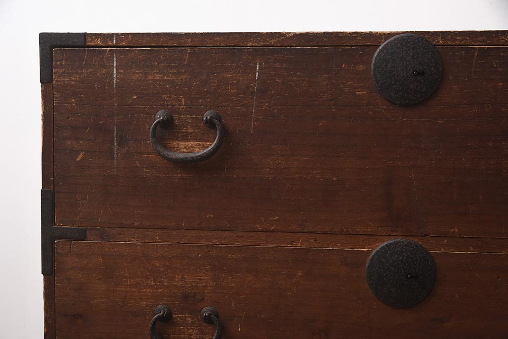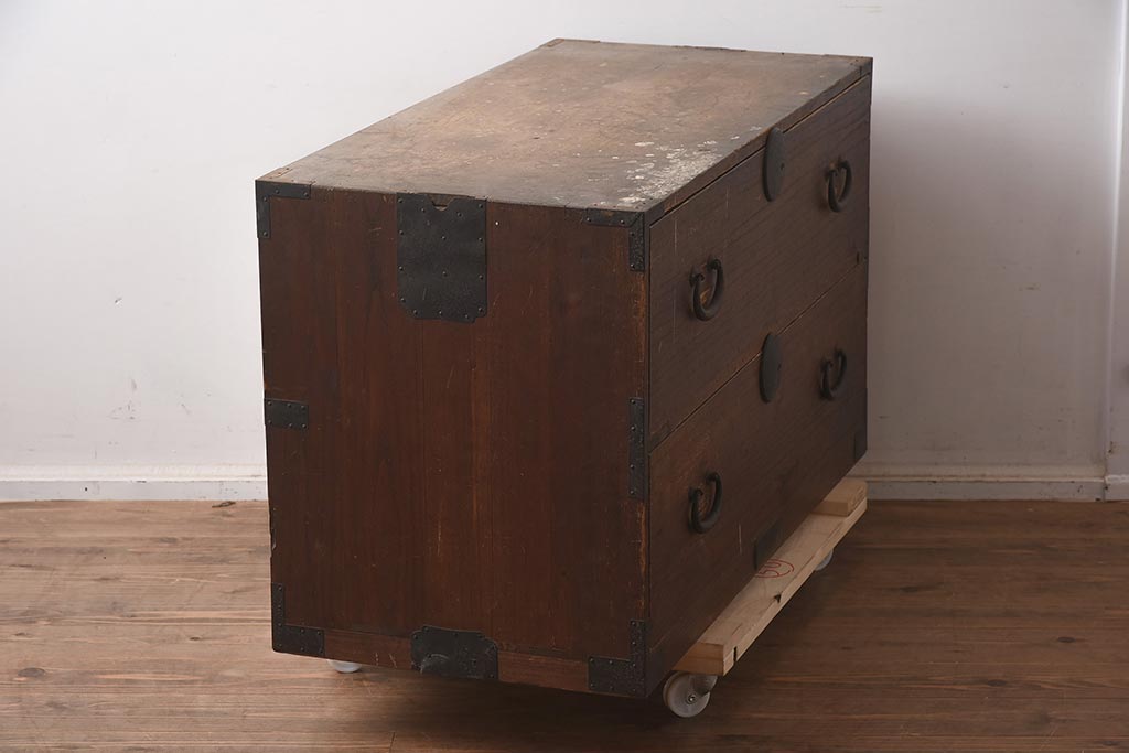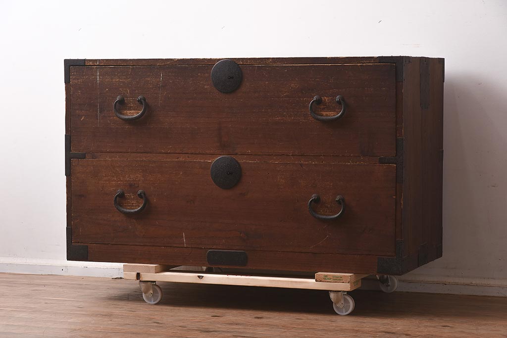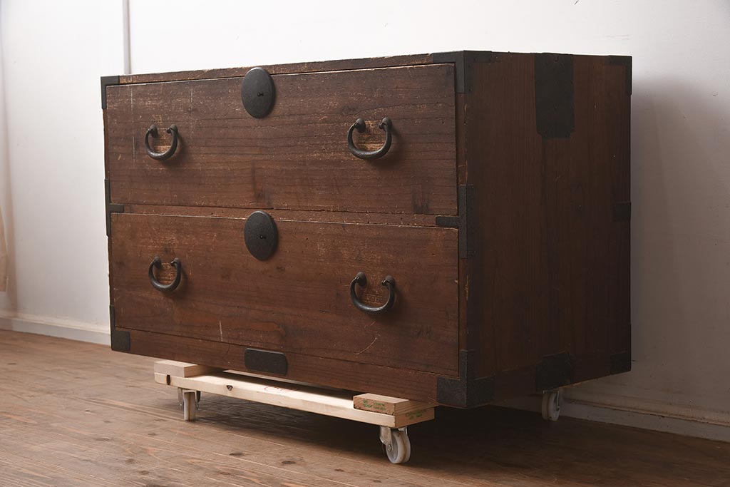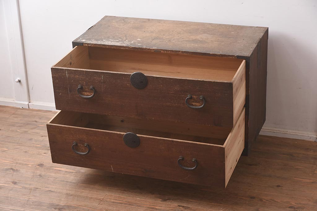 アンティーク家具 引き出し2杯 レトロや和モダンスタイルにおすすめな衣装箪笥(ローチェスト、ローボード)(R-042545)