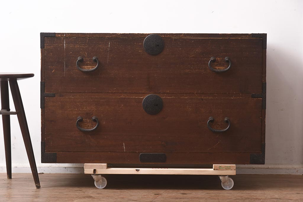 アンティーク家具 引き出し2杯 レトロや和モダンスタイルにおすすめな衣装箪笥(ローチェスト、ローボード)(R-042545)です。