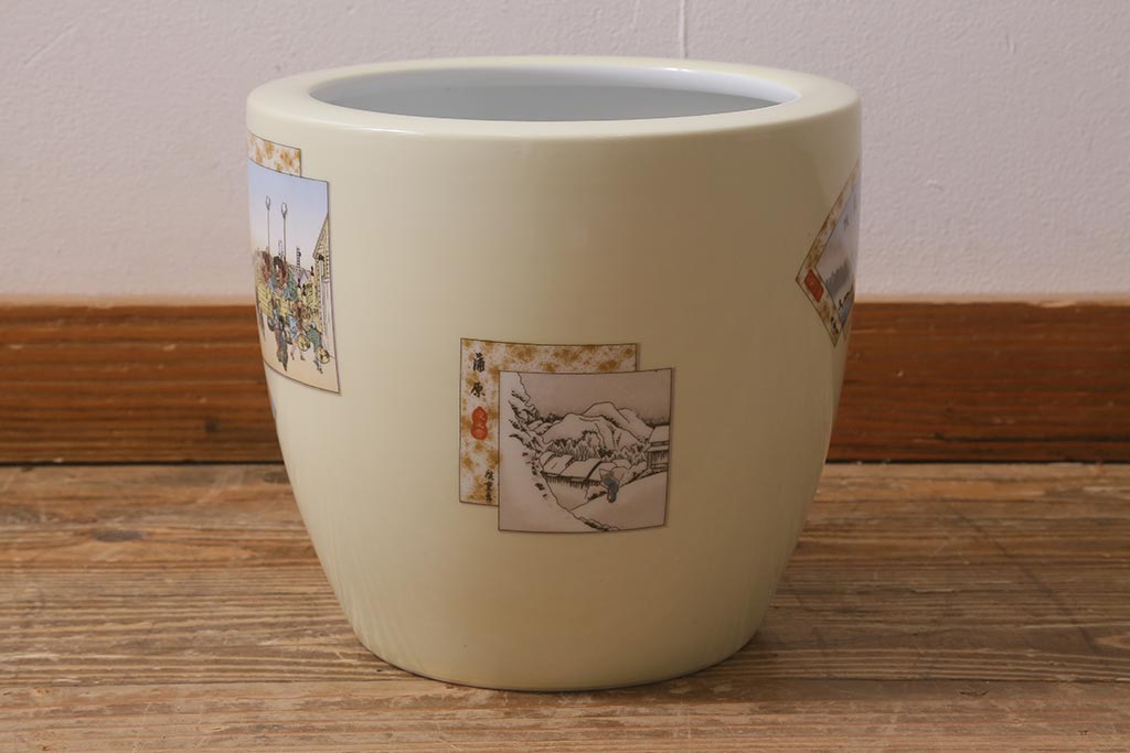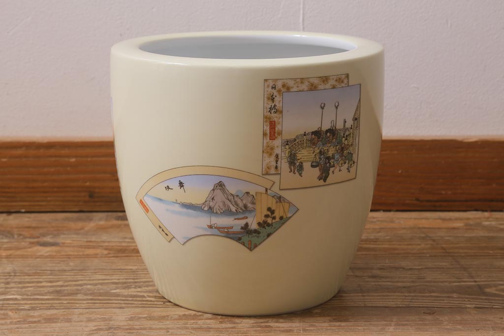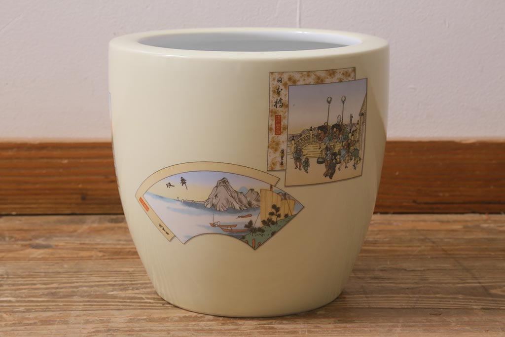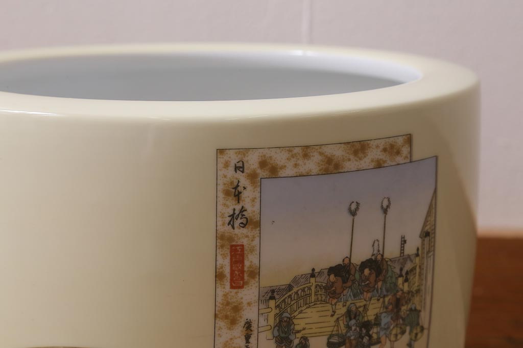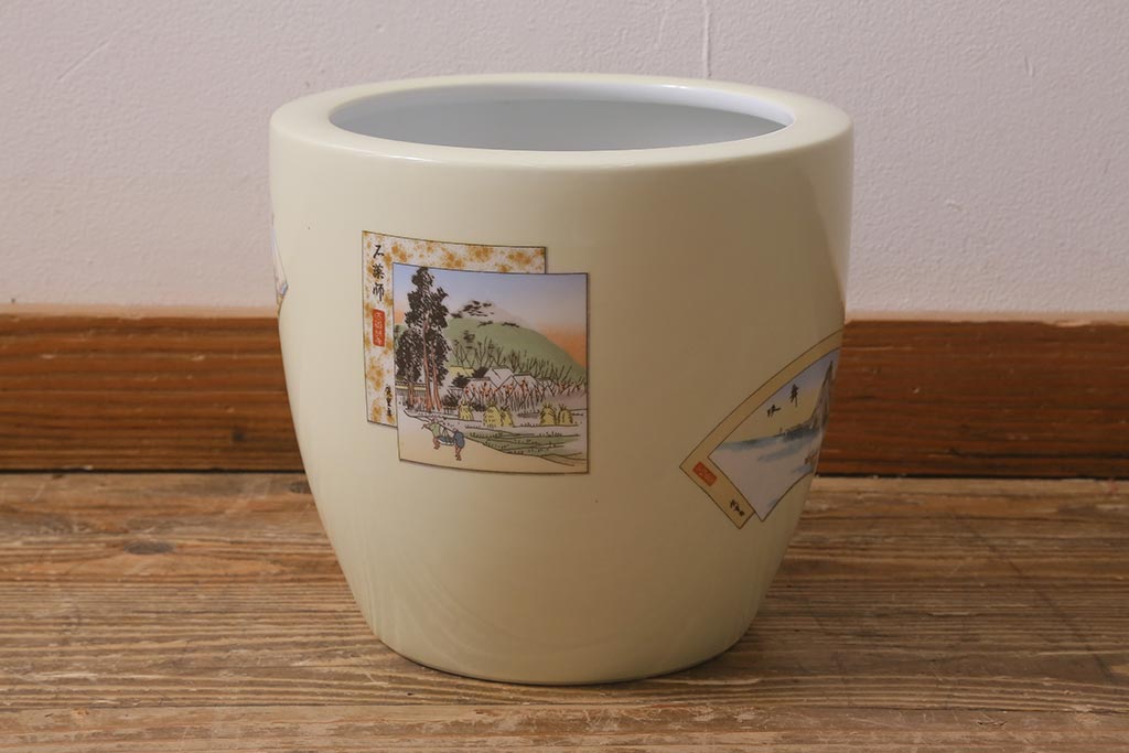 火鉢> 瀬戸火鉢 > アンティーク雑貨 オールドノリタケ(則武・日陶) 東海道五十三次 和の雰囲気漂う火鉢(手あぶり、鉢カバー、傘立て)(R-042674)