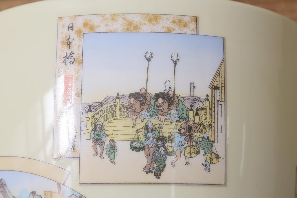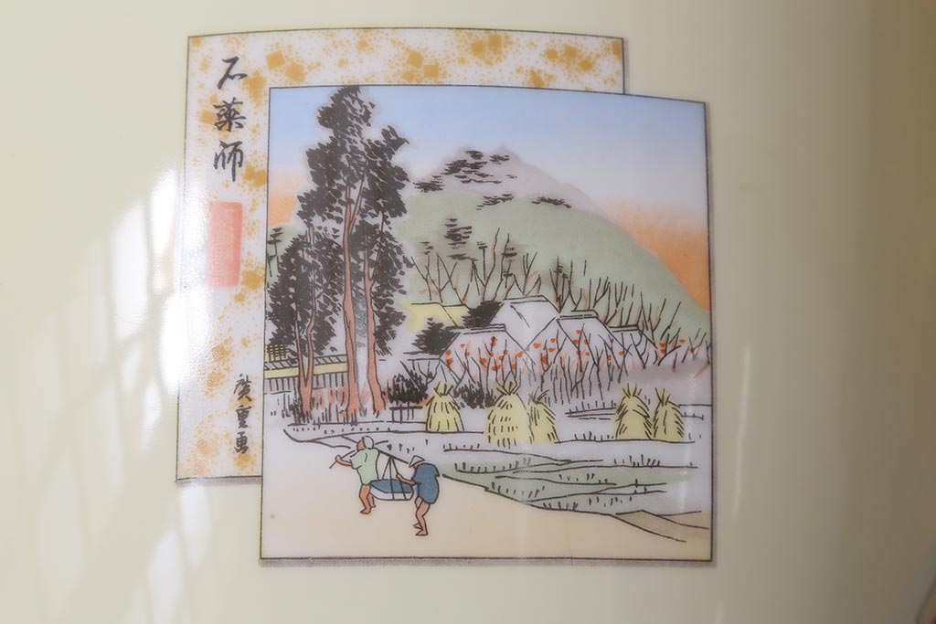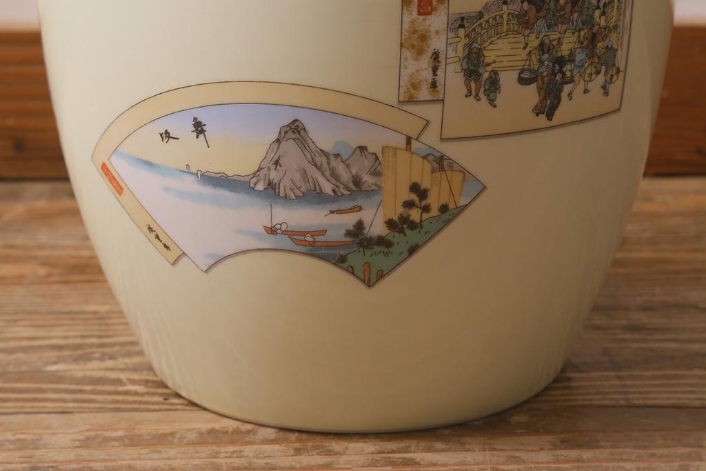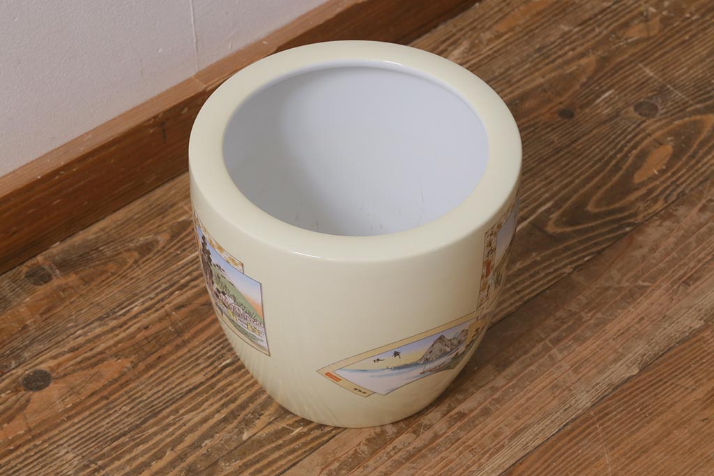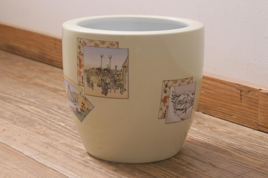 火鉢> 瀬戸火鉢 > アンティーク雑貨 オールドノリタケ(則武・日陶) 東海道五十三次 和の雰囲気漂う火鉢(手あぶり、鉢カバー、傘立て)(R-042674)