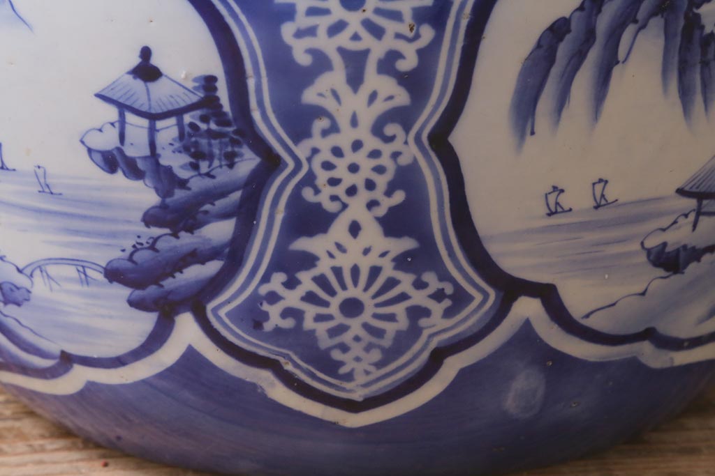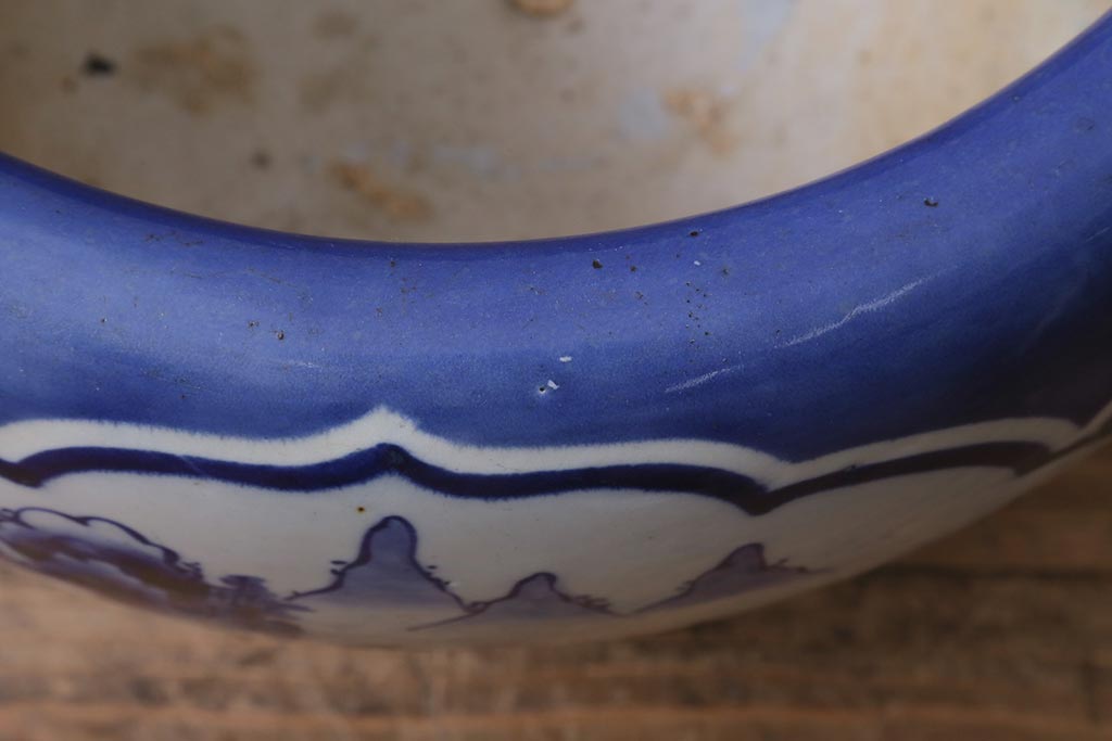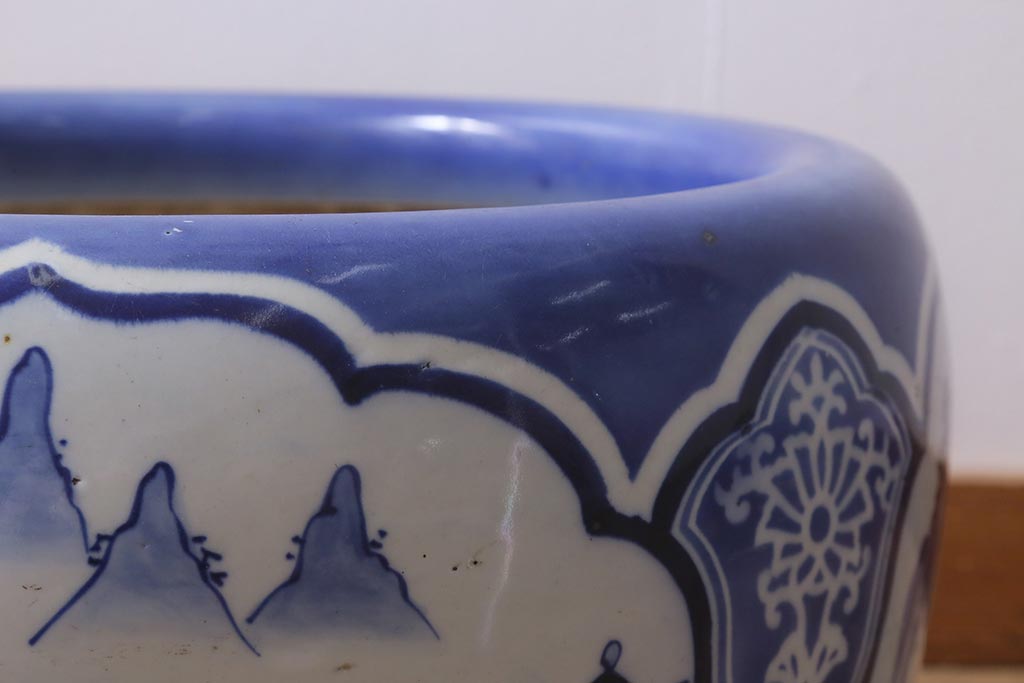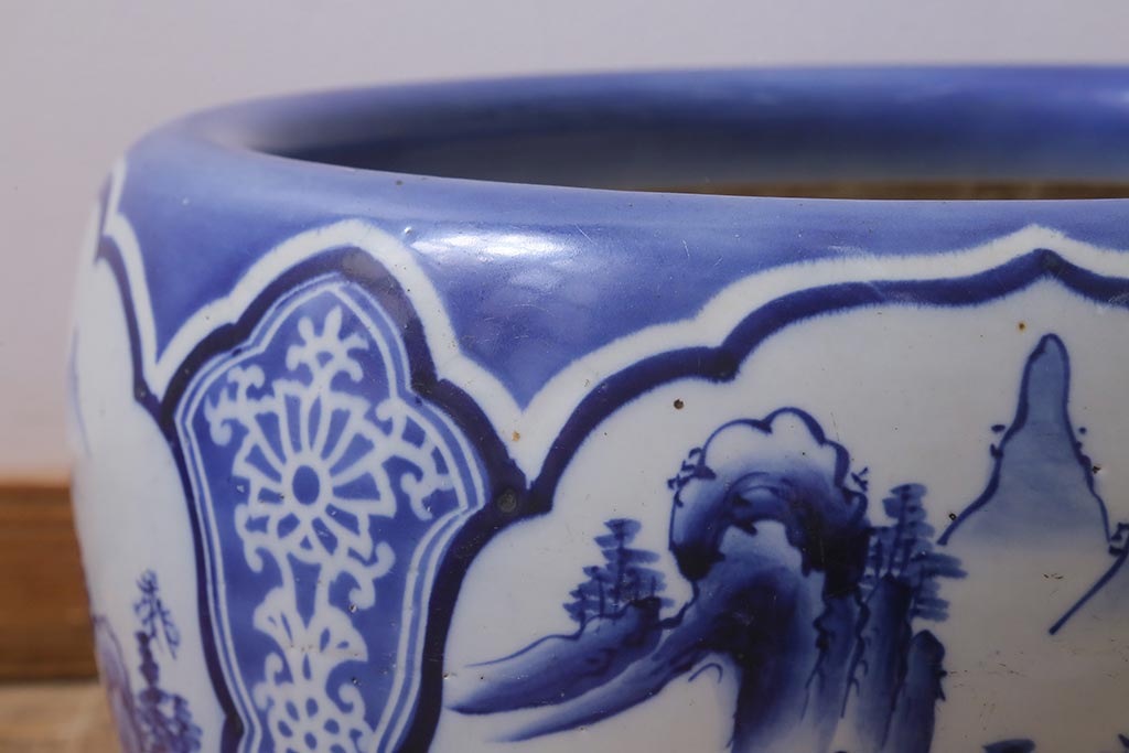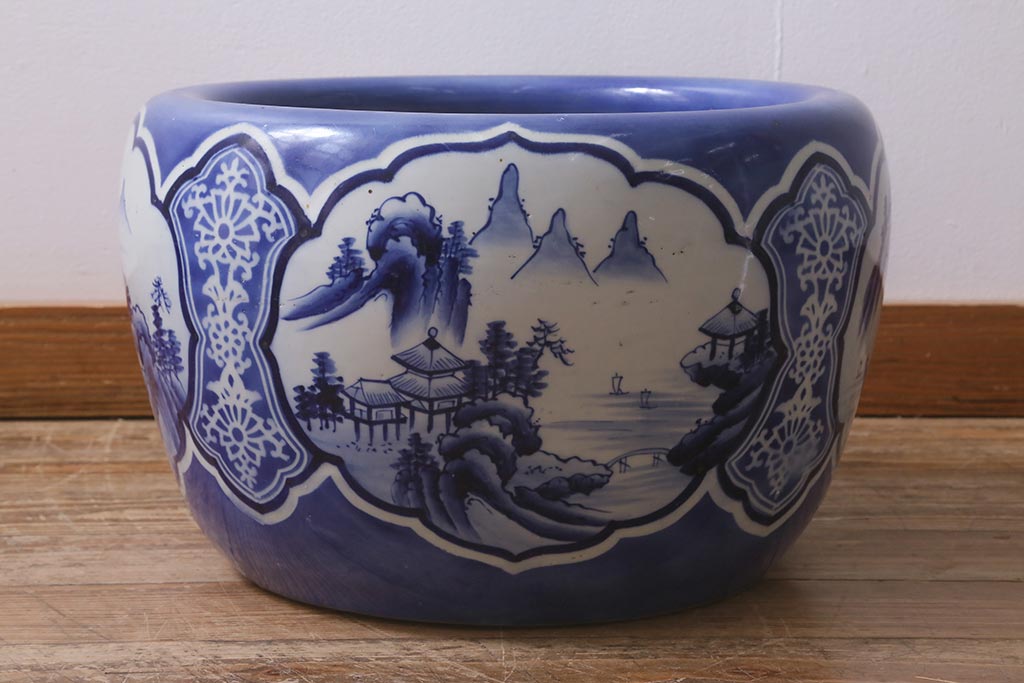 火鉢> 瀬戸火鉢 > アンティーク雑貨 昭和中期 山水図 和モダンな瀬戸火鉢(鉢カバー)(R-042676)