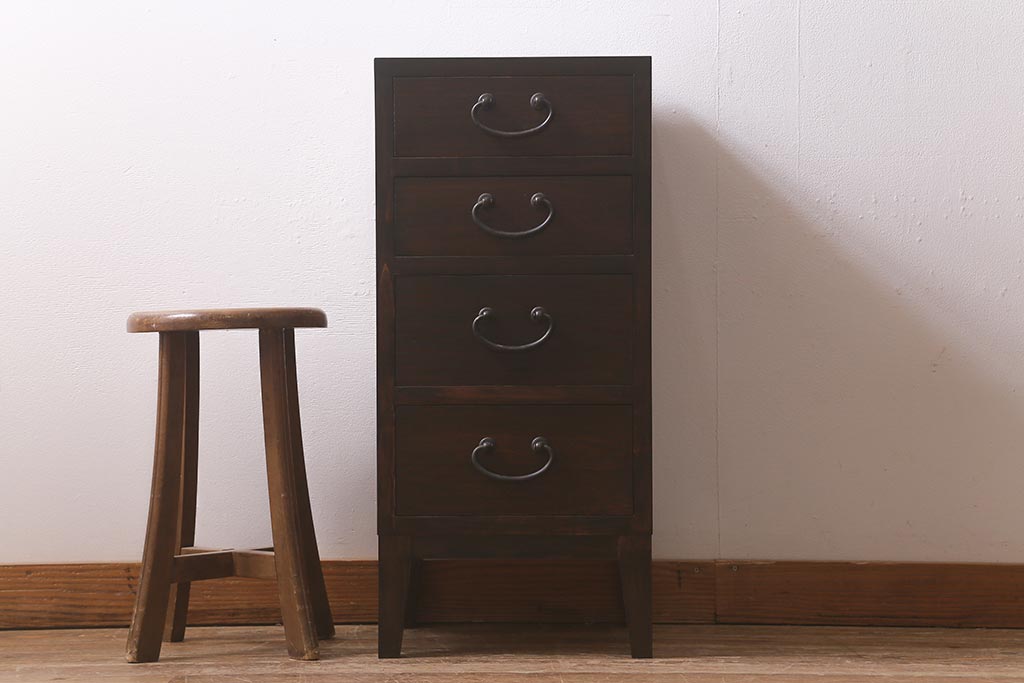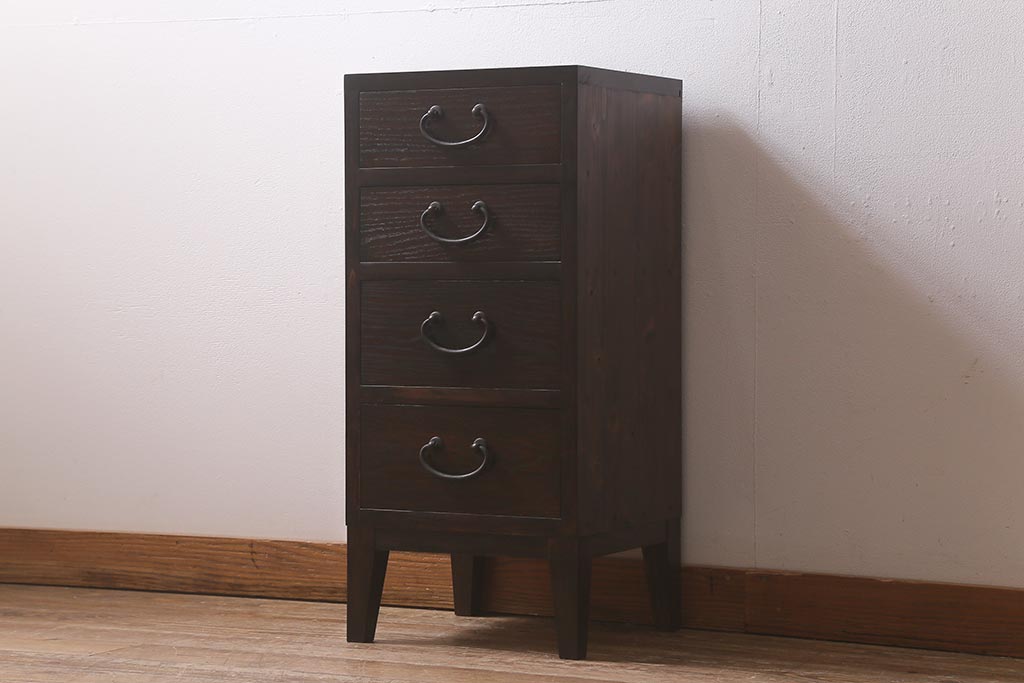 ラフジュ工房オリジナル 古金具リメイク 前板栗材 ヒノキ材 脚付き サイドチェストにも使える便利な小引き出し(小物収納、サイドチェスト)(R-042637)です。