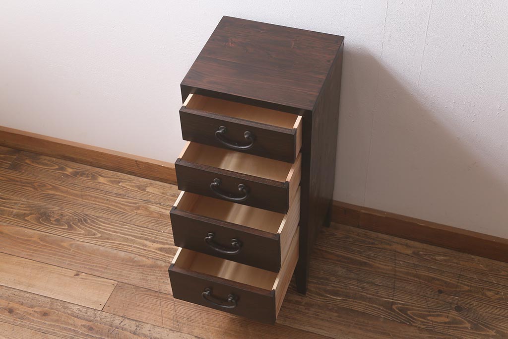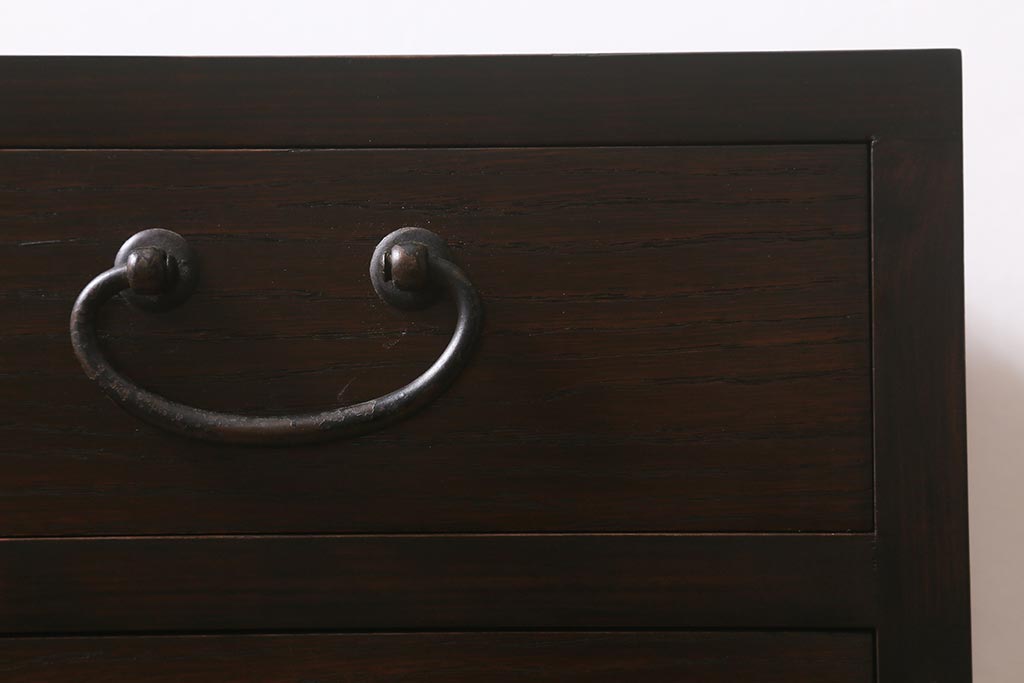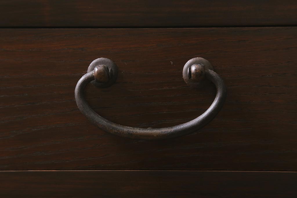 ラフジュ工房オリジナル 古金具リメイク 前板栗材 ヒノキ材 脚付き サイドチェストにも使える便利な小引き出し(小物収納、サイドチェスト)(R-042637)