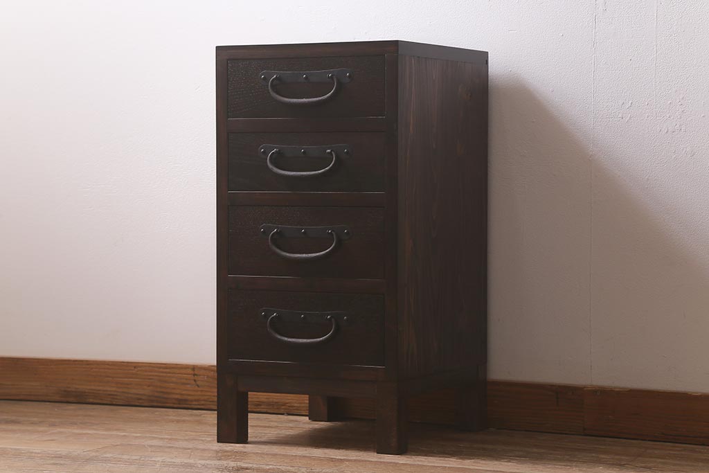 ラフジュ工房オリジナル 古金具リメイク 前板栗材 ヒノキ材 脚付き サイドチェストにも使える便利な小引き出し(小物収納、サイドチェスト)(R-042636)です。