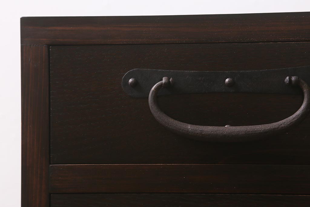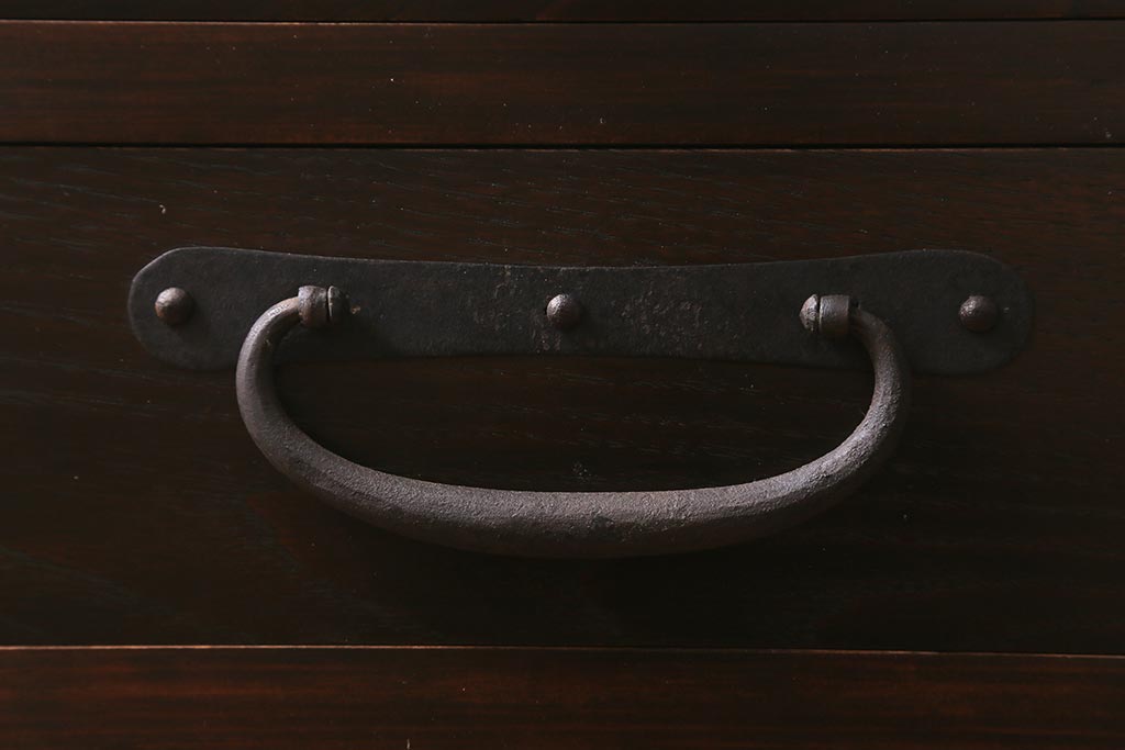 ラフジュ工房オリジナル 古金具リメイク 前板栗材 ヒノキ材 脚付き サイドチェストにも使える便利な小引き出し(小物収納、サイドチェスト)(R-042636)