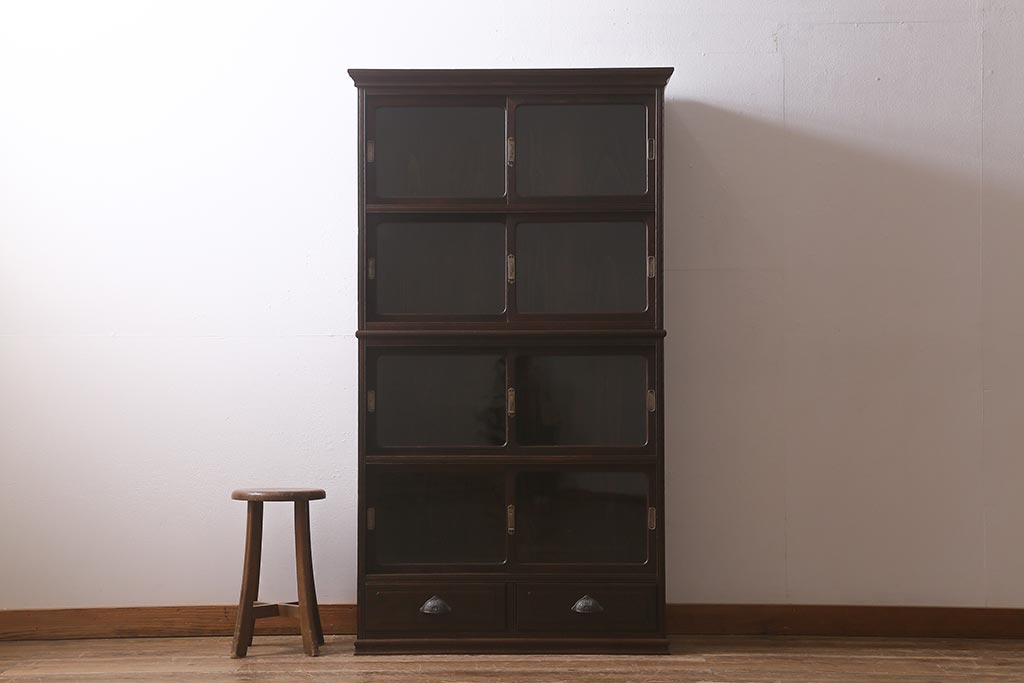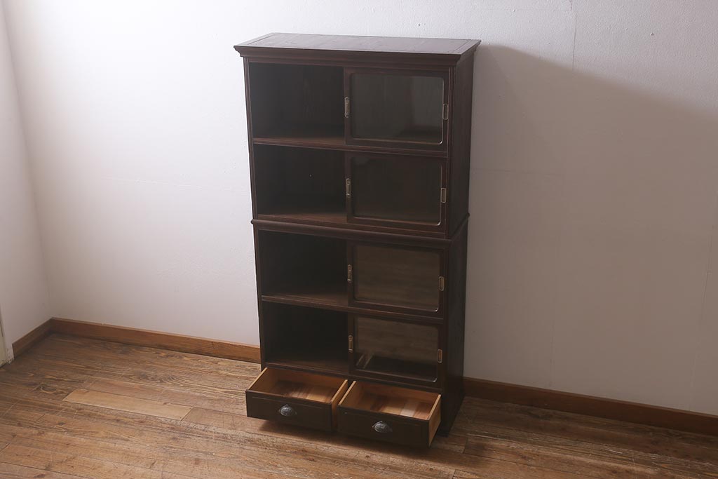 アンティーク家具 和製アンティーク 栗材 大正ロマン 落ち着いた大人の雰囲気漂う重ね戸棚(収納棚、食器棚、本箱)(R-042643)