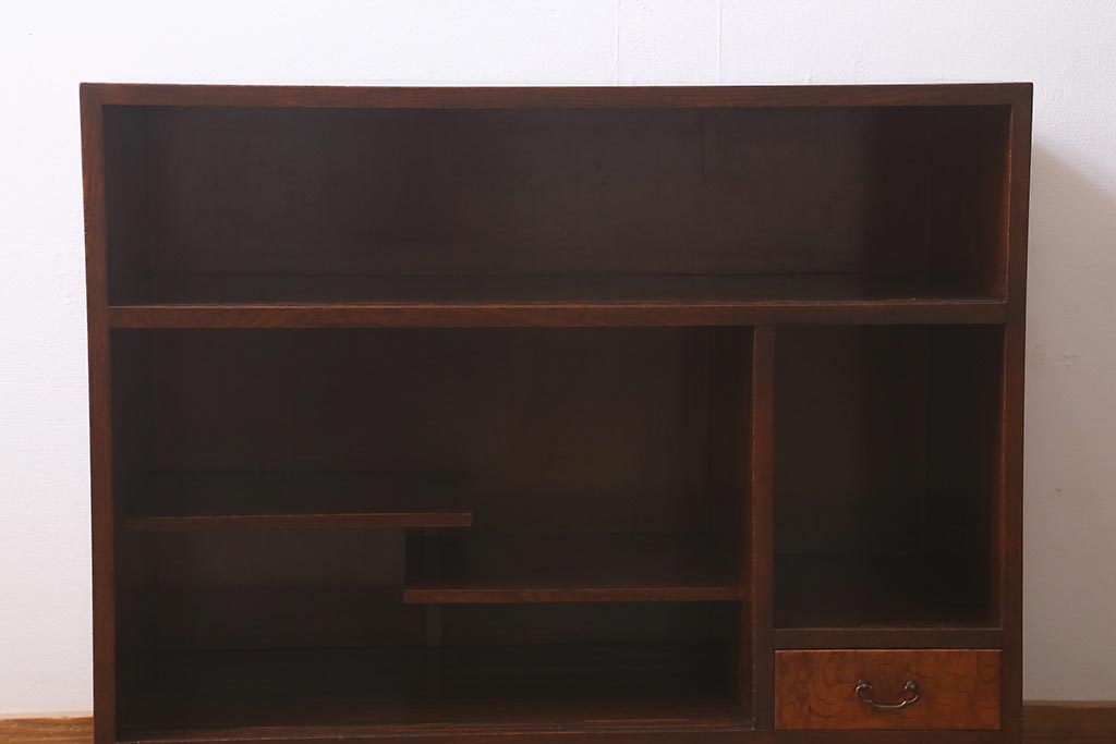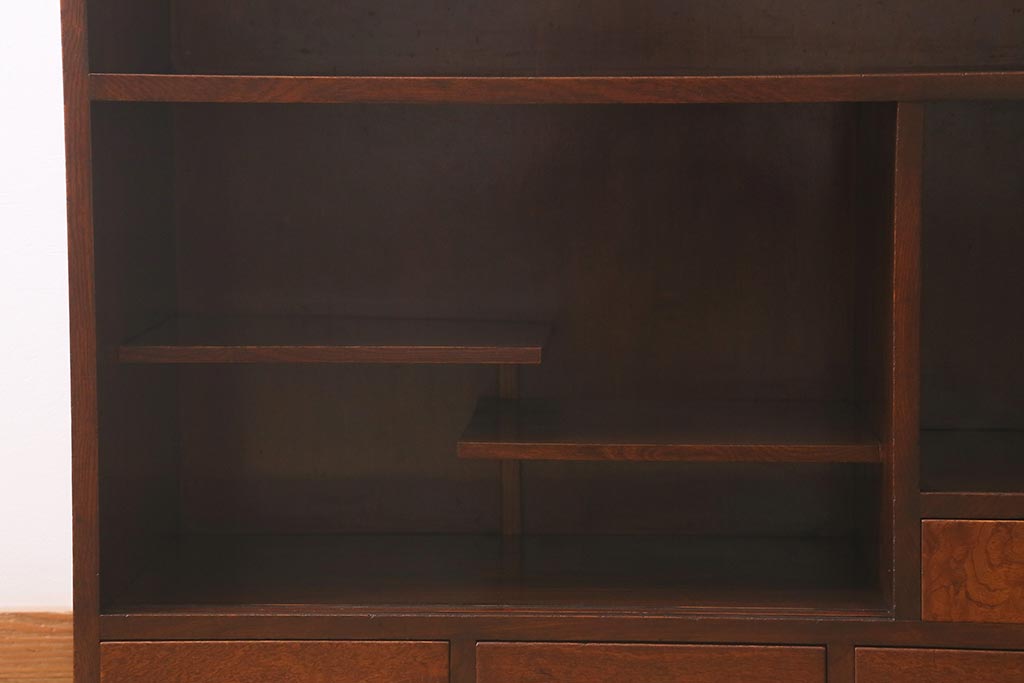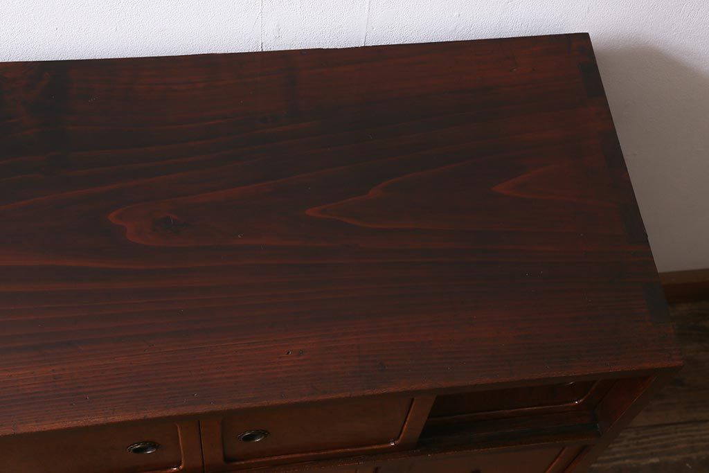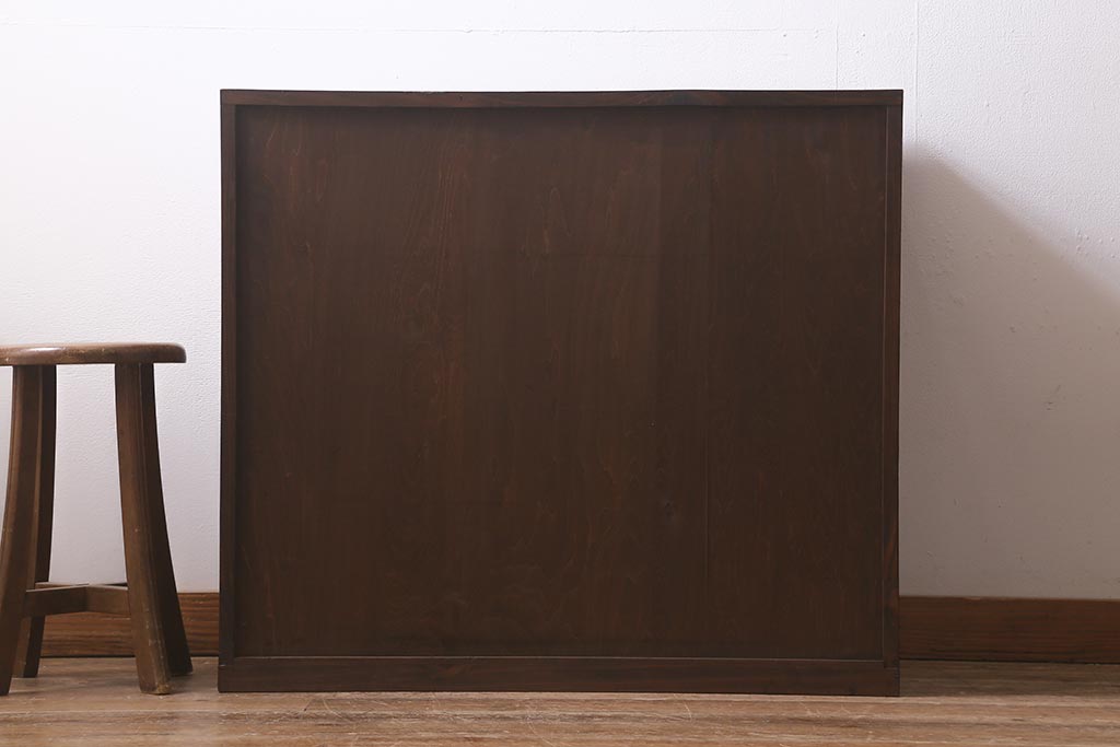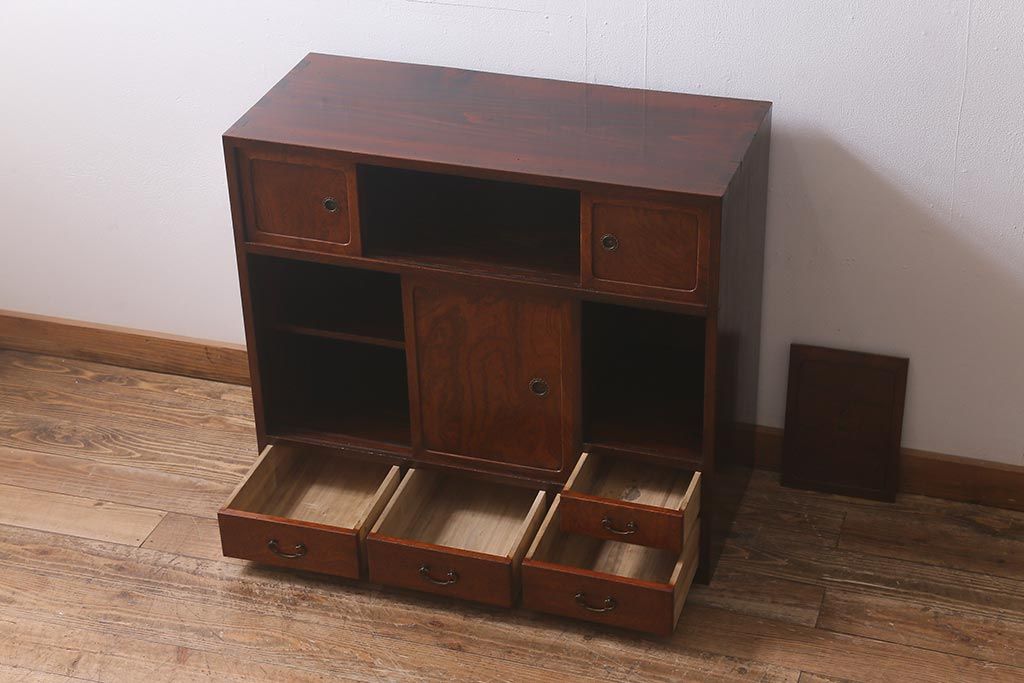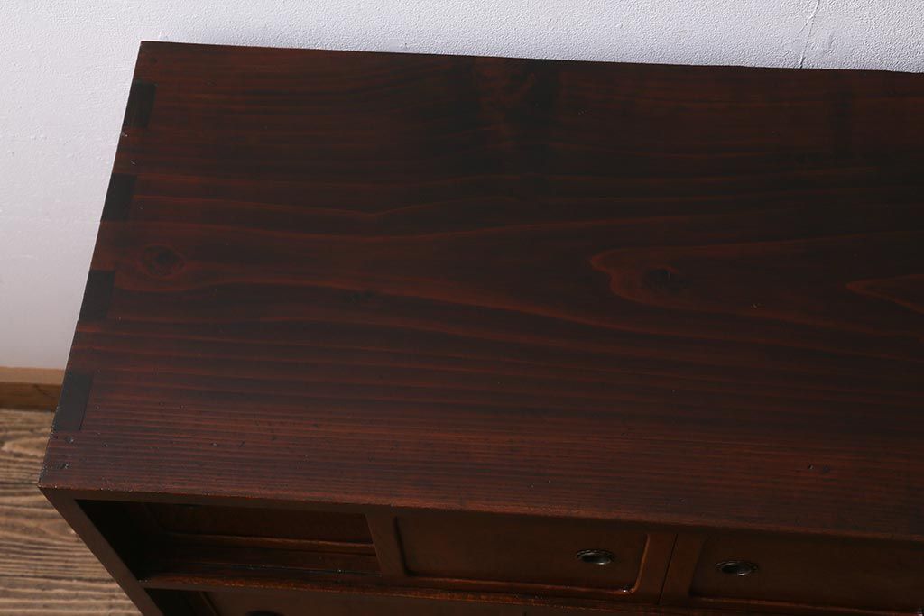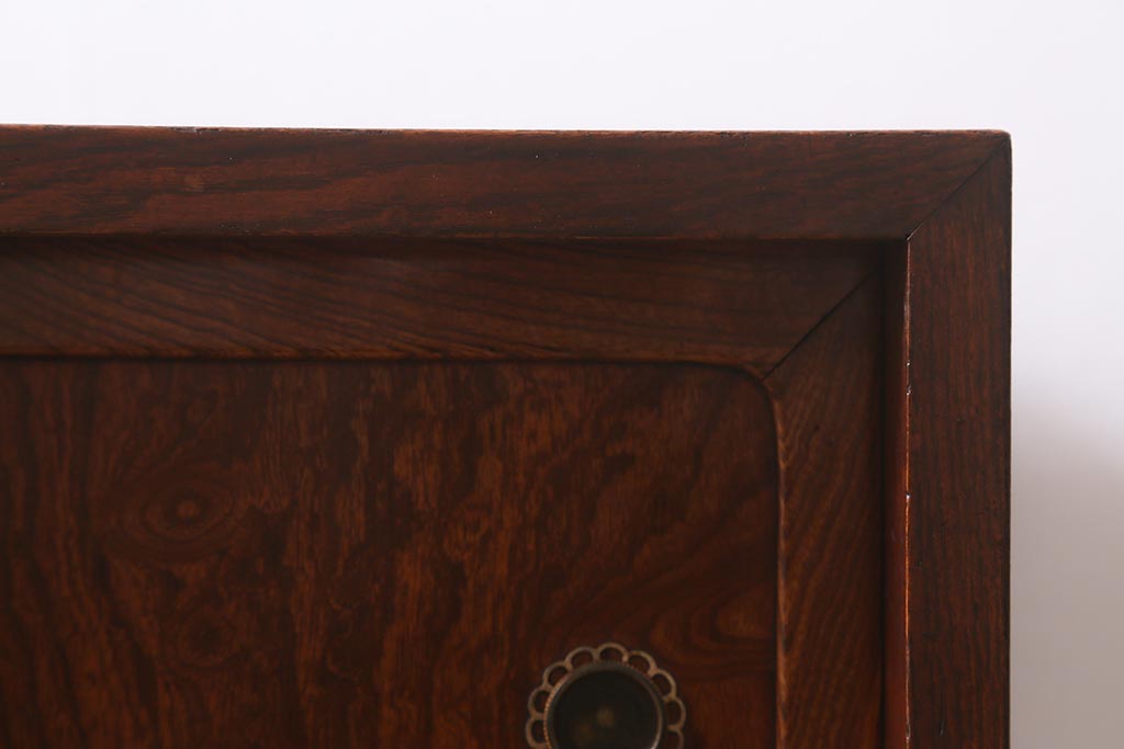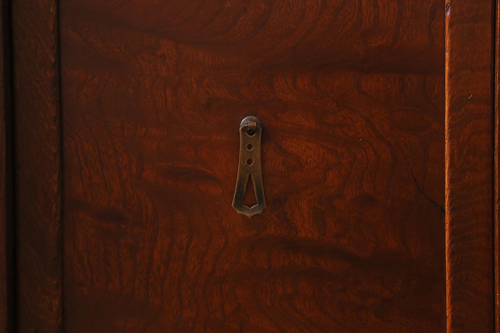 和箪笥> 茶箪笥・茶棚 > アンティーク家具 前面欅(ケヤキ)材 玉杢 倹飩扉付 漆塗りが美しい茶箪笥(戸棚、収納棚)(R-042619)
