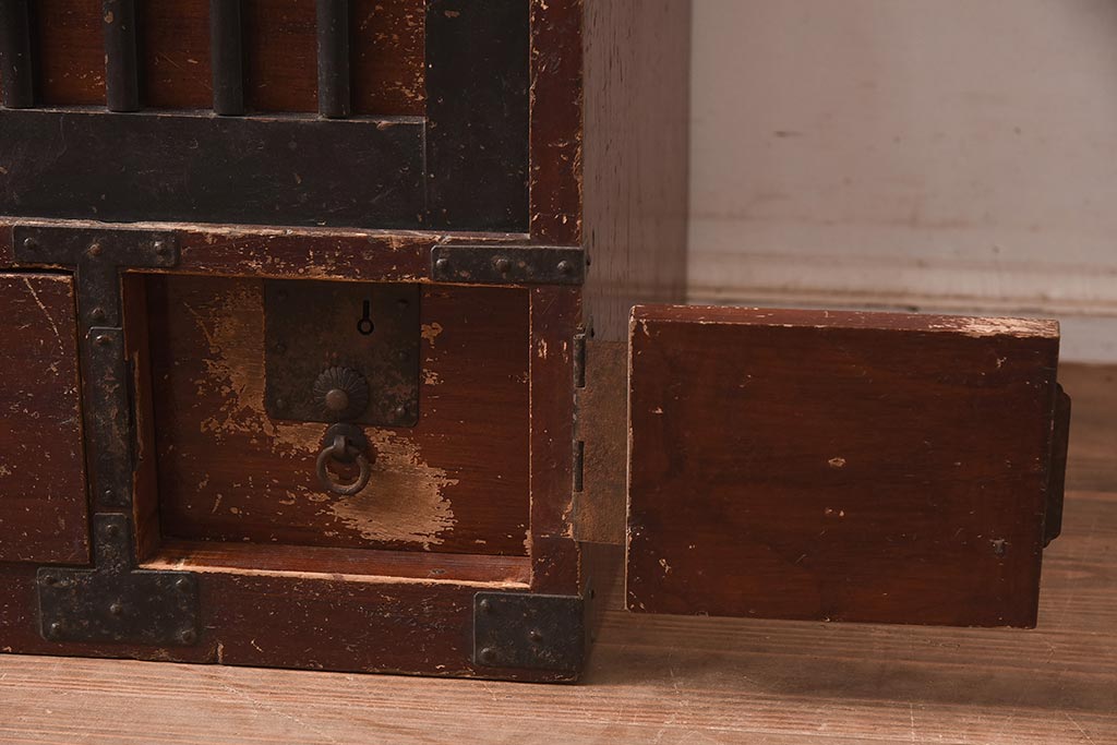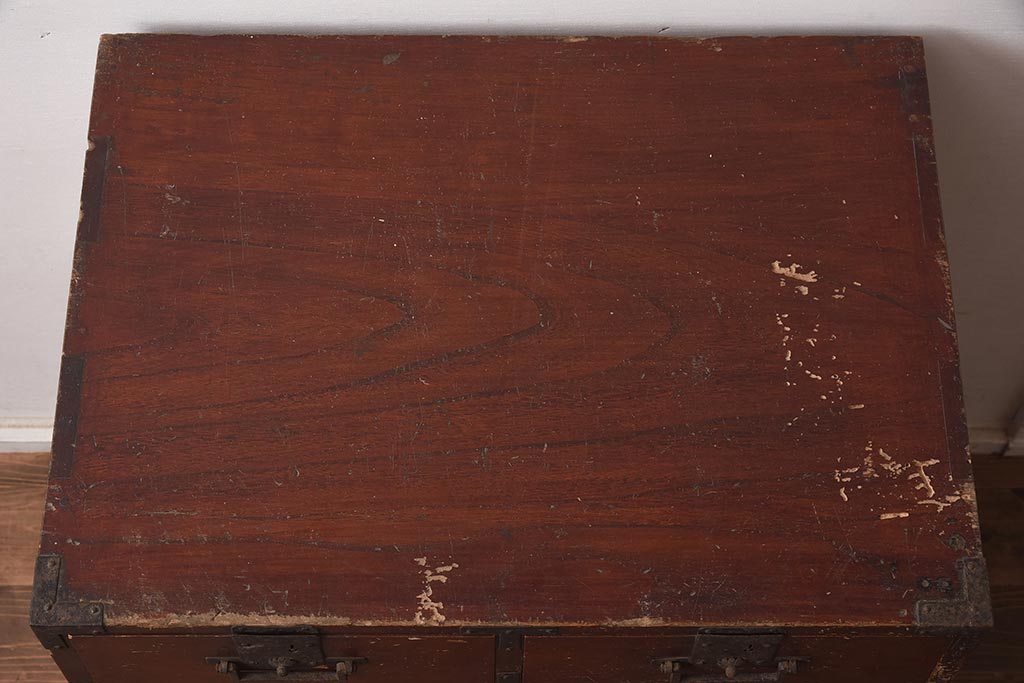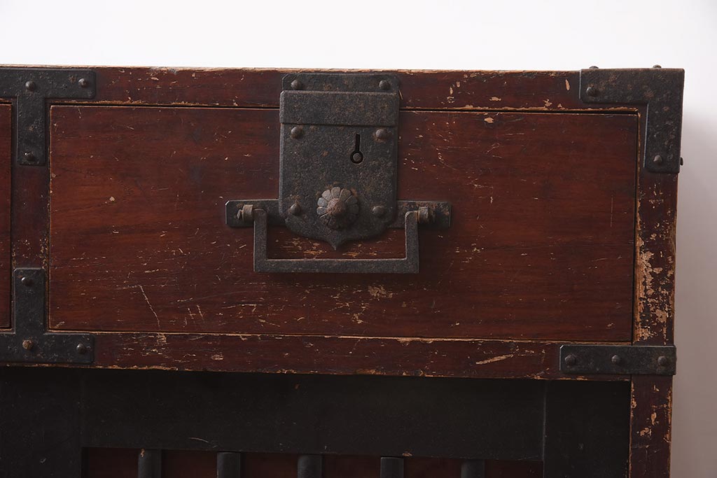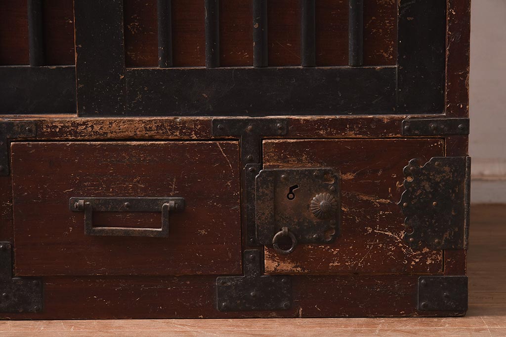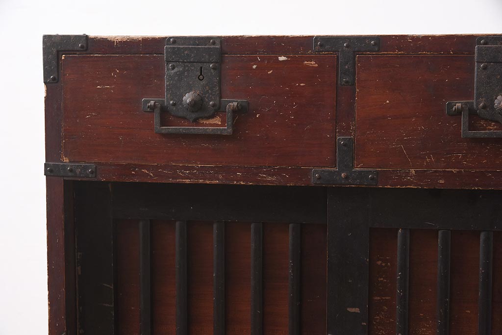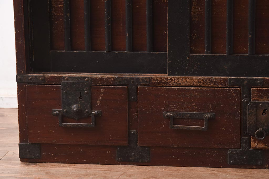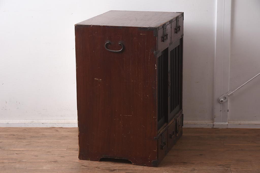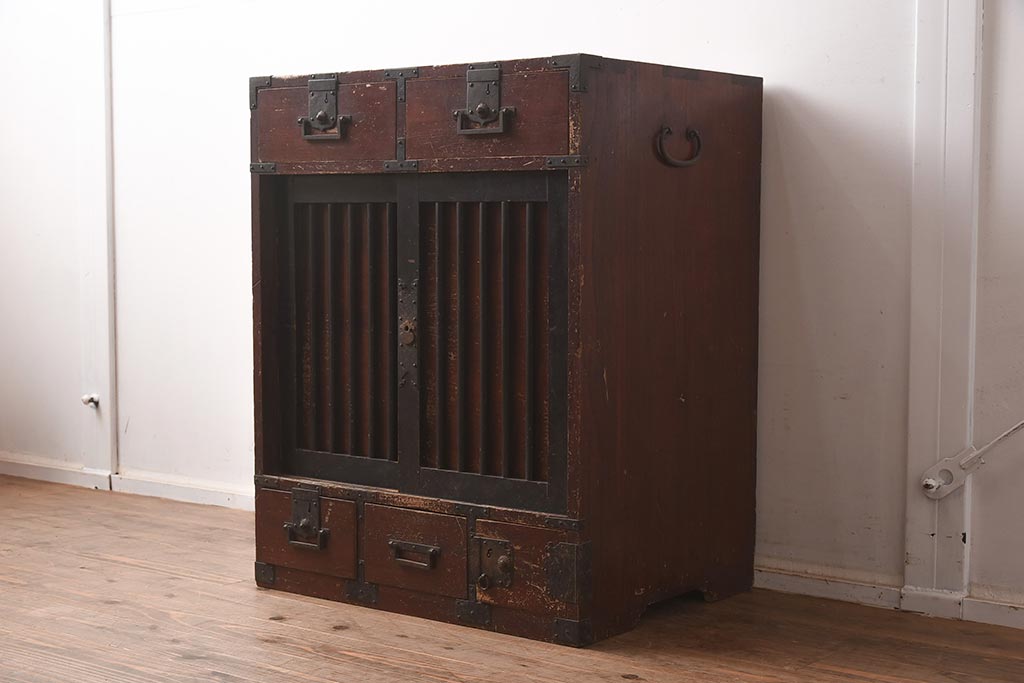 アンティーク家具 江戸明治期 桐材 味のある風合いが魅力の茶箪笥(収納箪笥、戸棚)(R-042334)