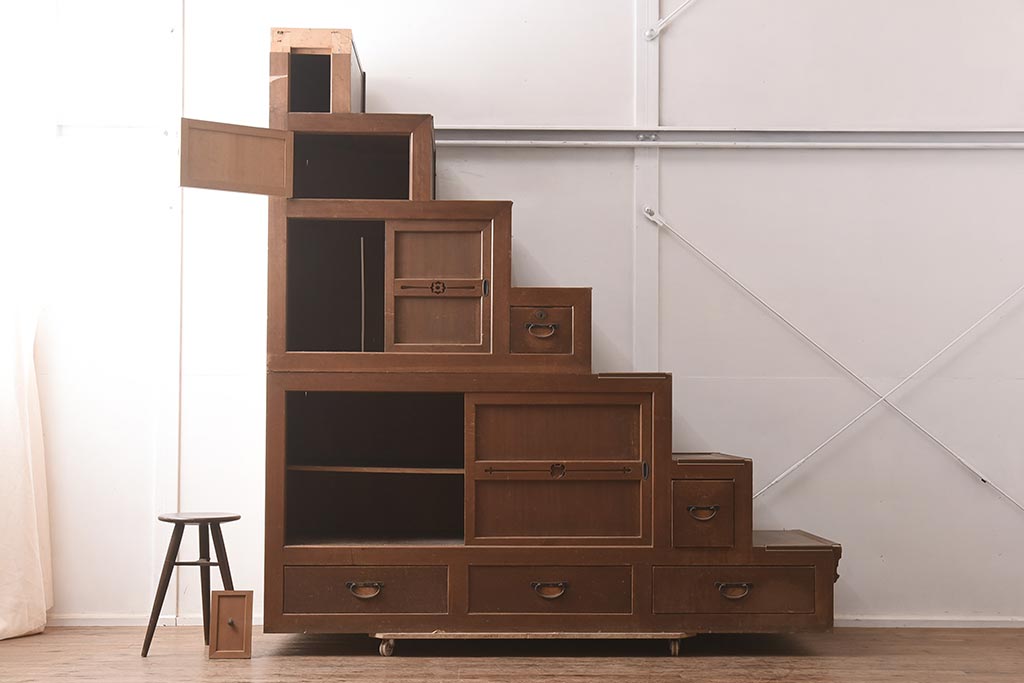 明治から大正期にかけてつくられた階段箪笥です。