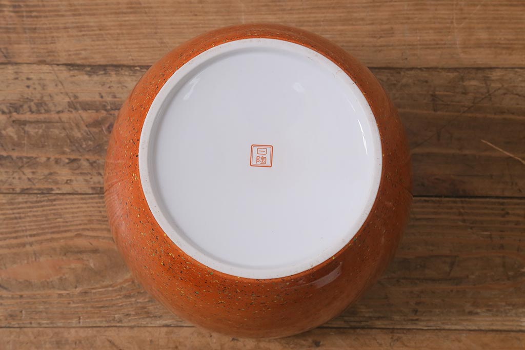 骨董・美術品> 骨董-陶磁器 > 和製アンティーク オールドノリタケ 日陶(則武) 高級感のある砂地橙色火鉢(瀬戸火鉢、Noritake、noritake、NORITAKE、手あぶり、鉢カバー、傘立て)(R-042670)