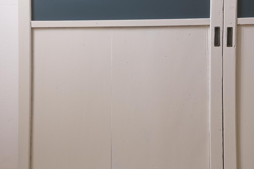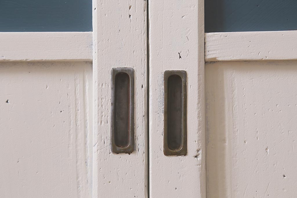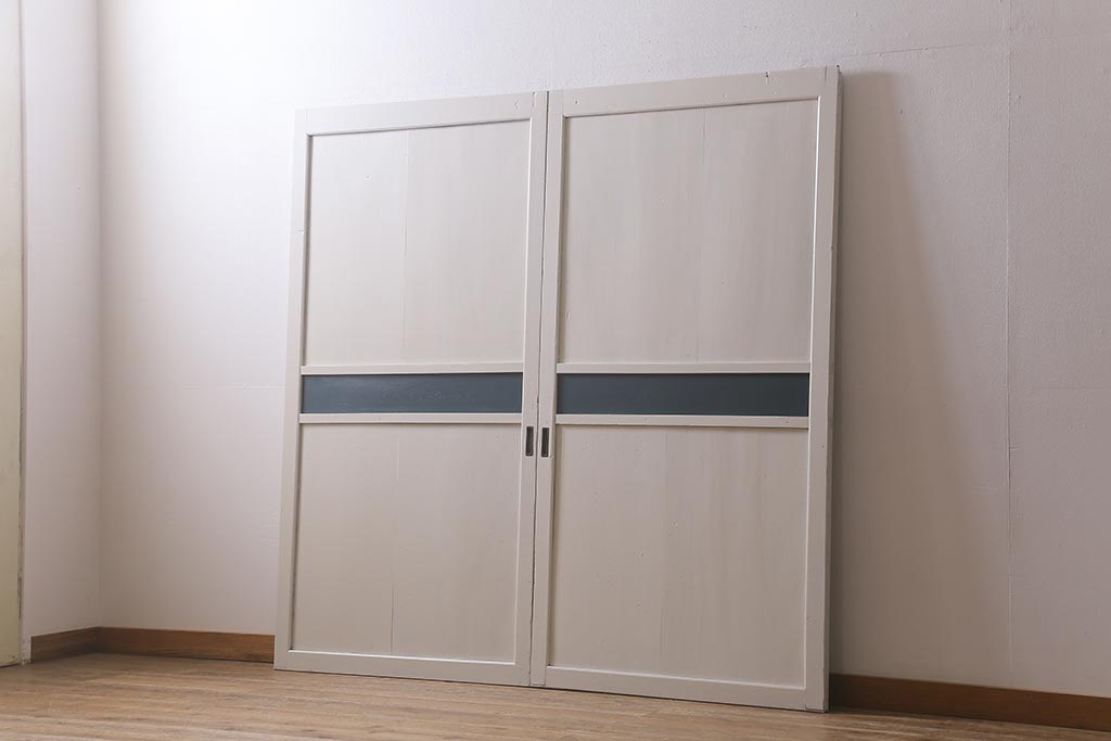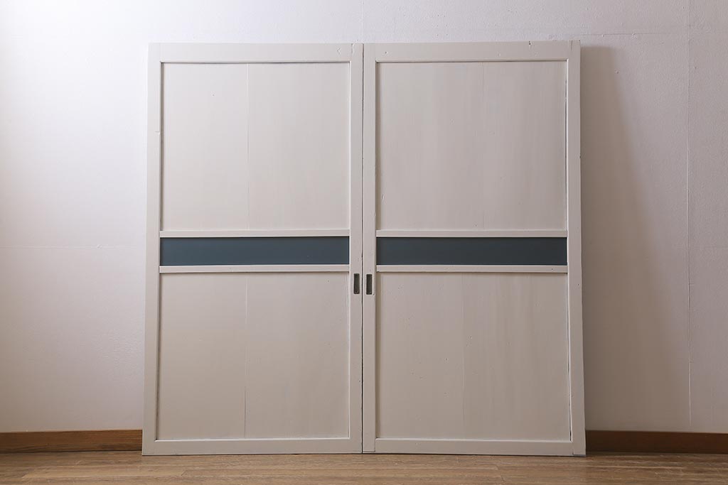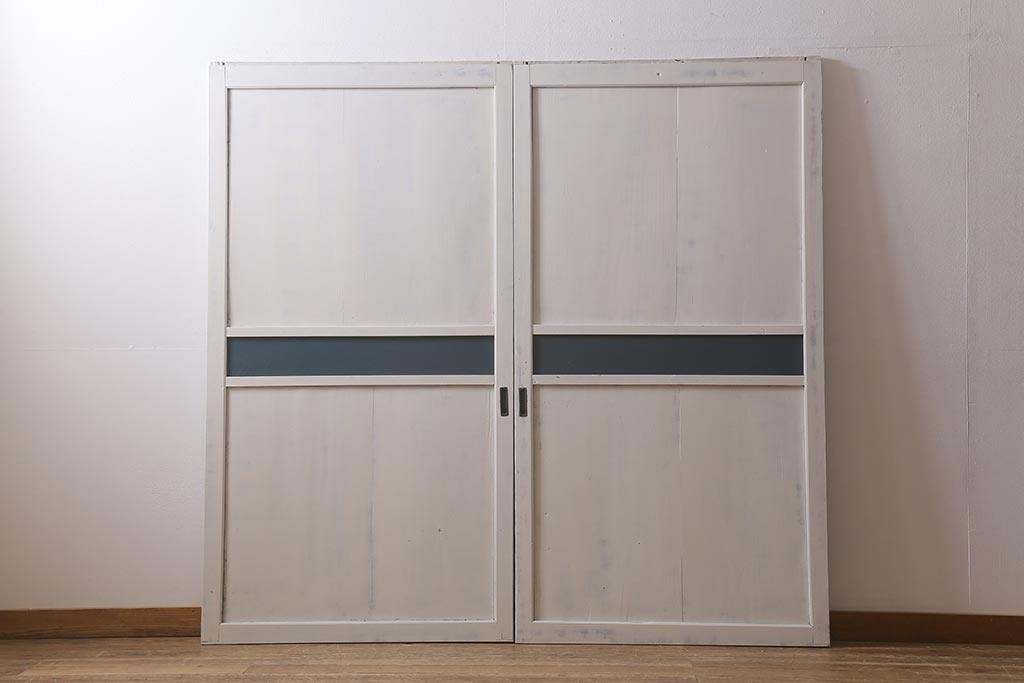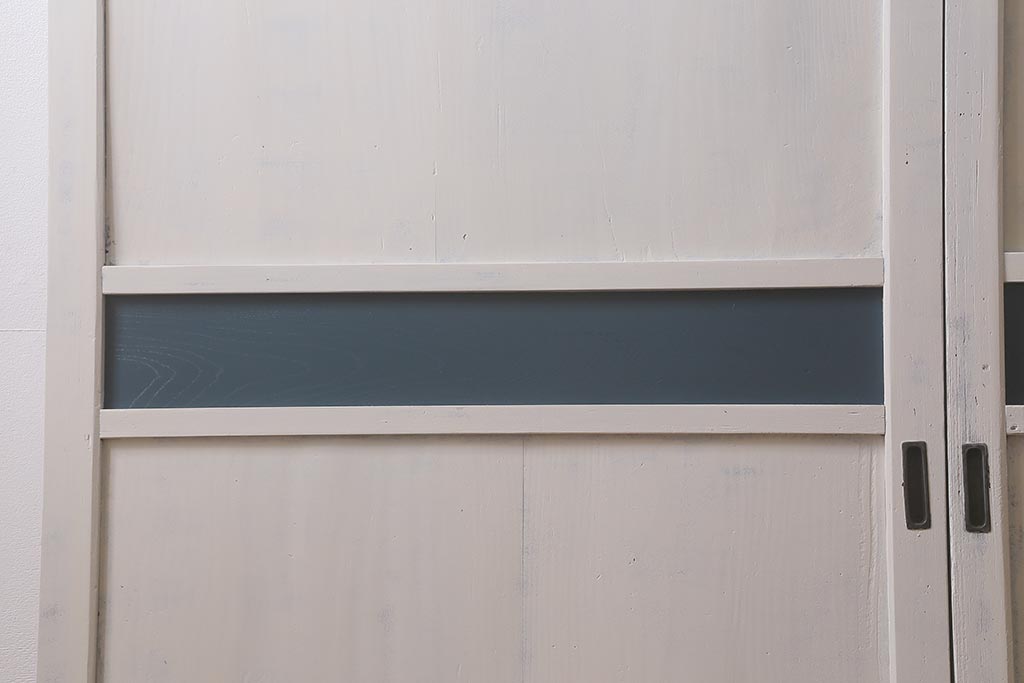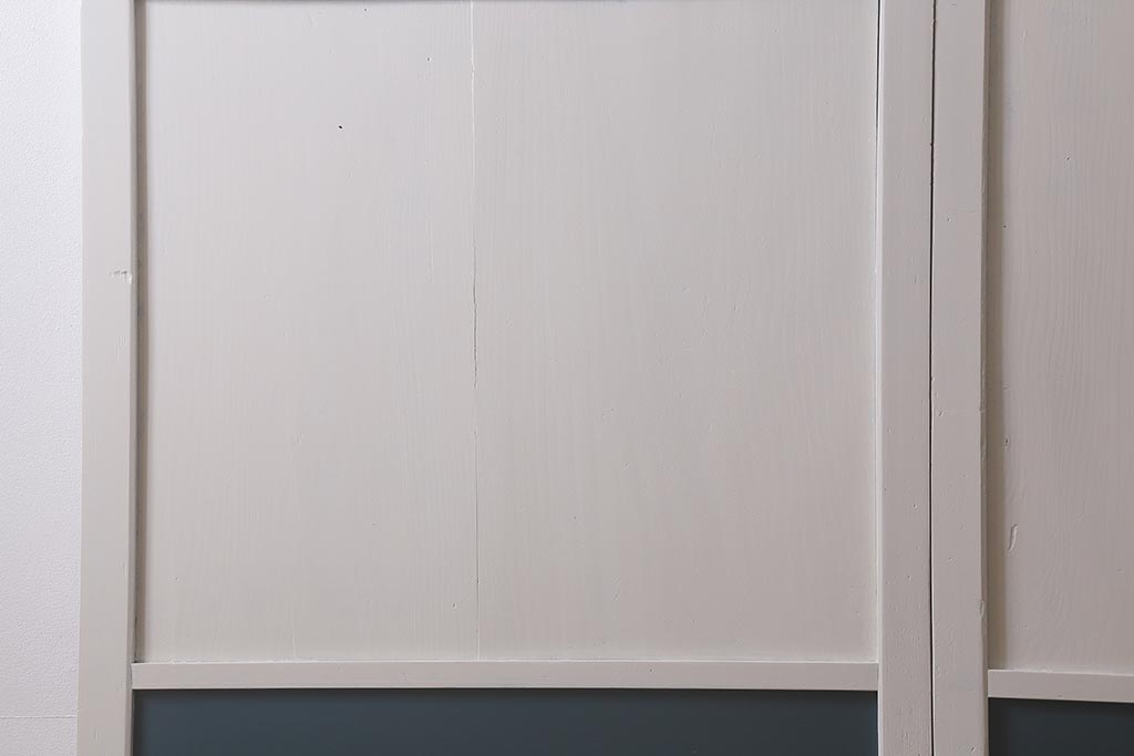 アンティーク建具 明治大正期 ペイント バイカラーのお洒落な板戸2枚セット(引き戸、建具、帯戸)(R-042654)