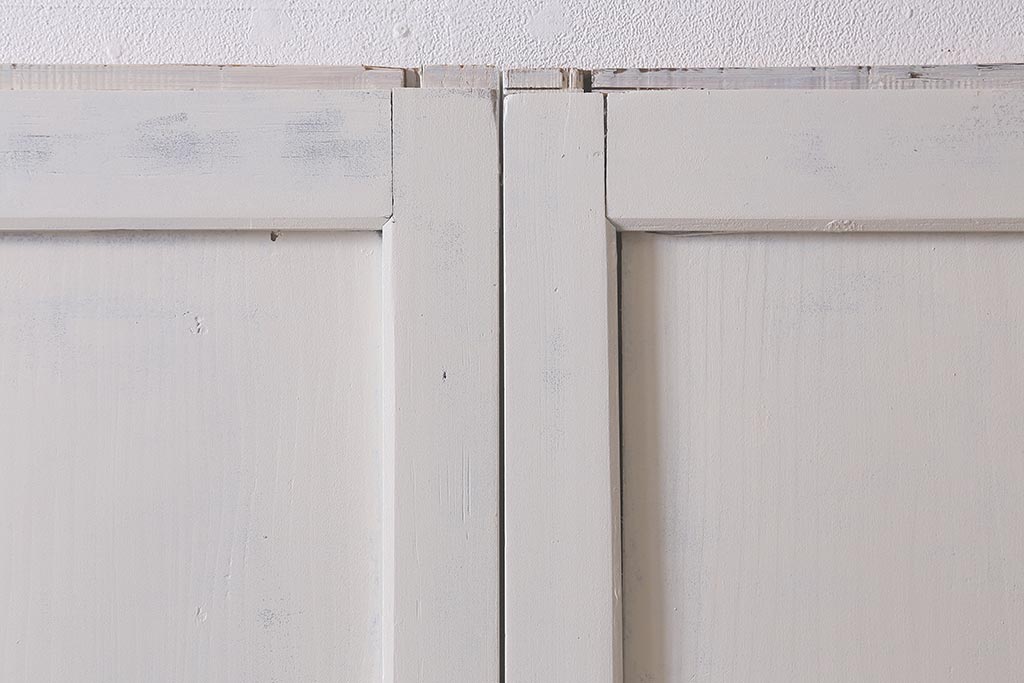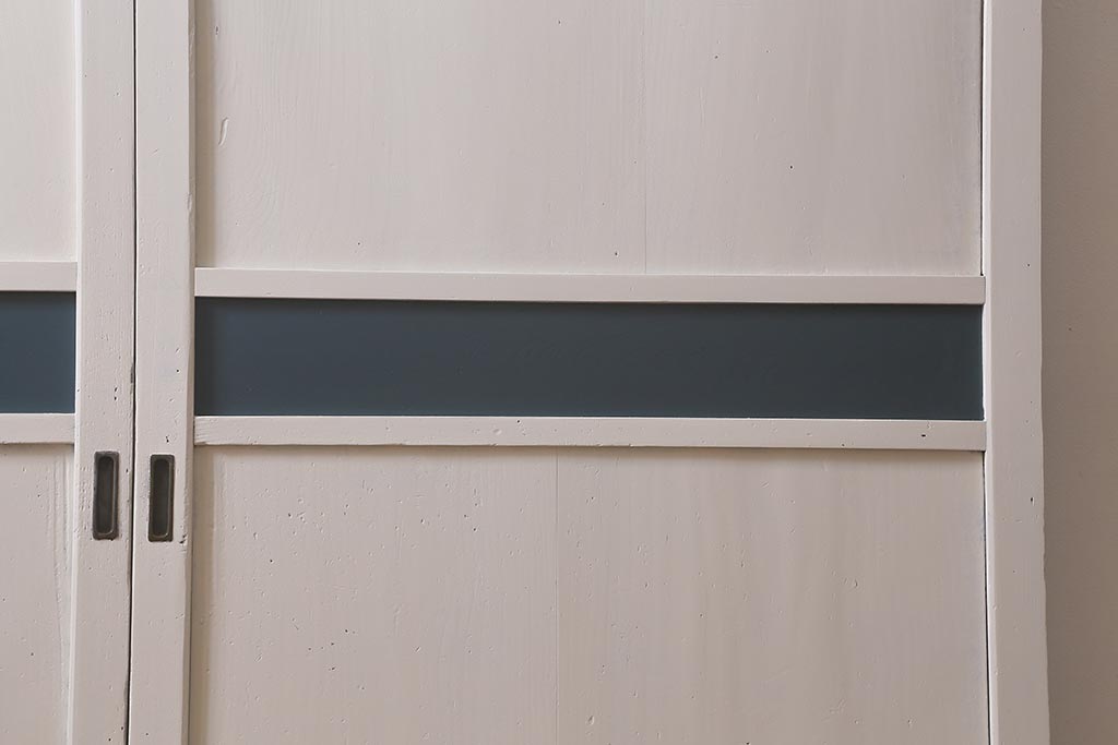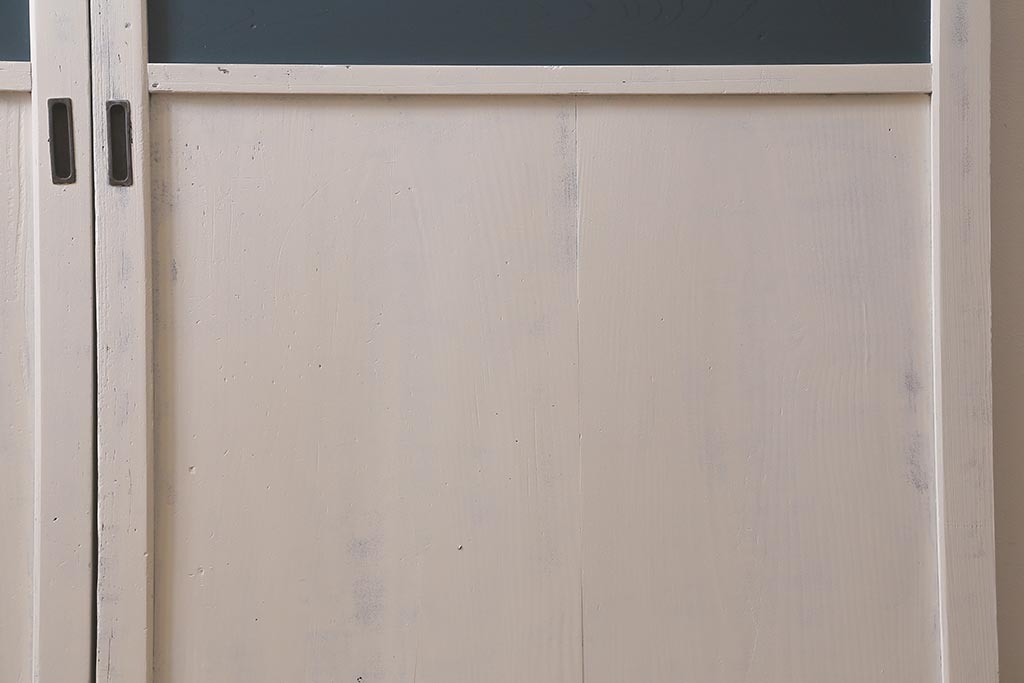 ラフジュ工房> ドア・建具> 板戸・帯戸 > アンティーク建具 明治大正期 ペイント バイカラーのお洒落な板戸2枚セット(引き戸、建具、帯戸)(R-042654)