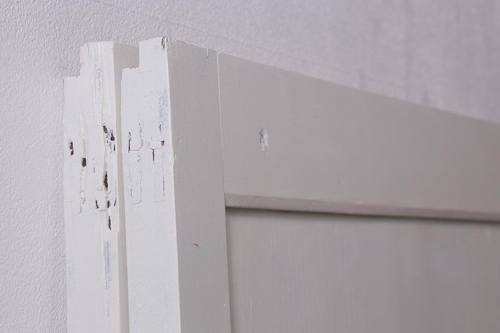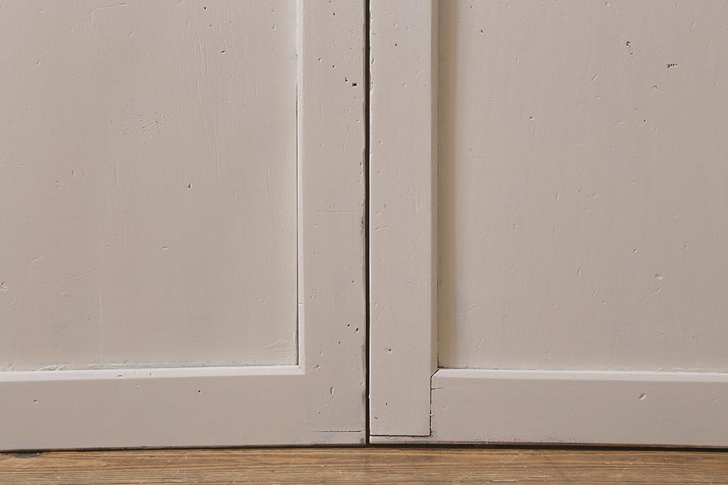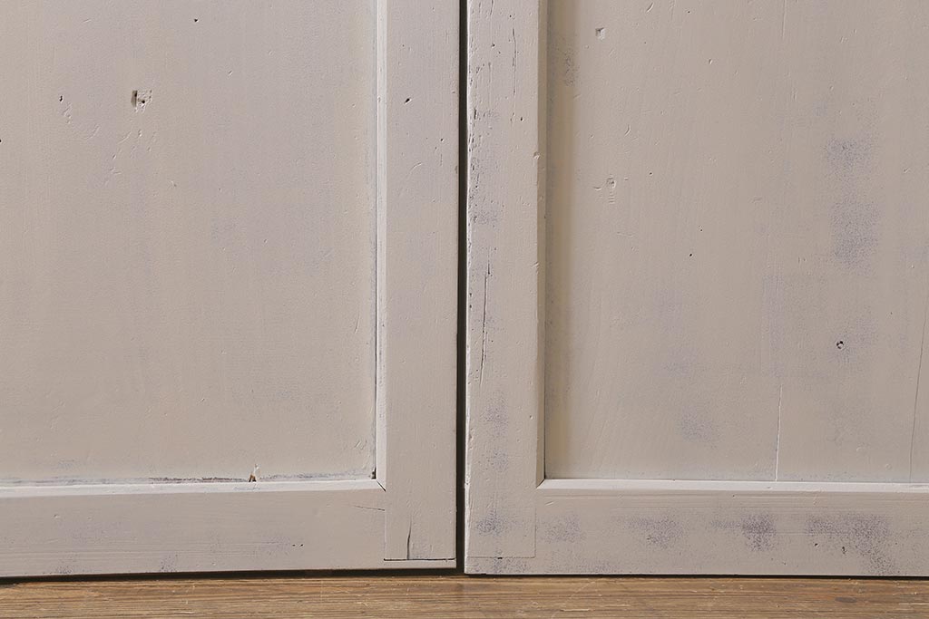 ラフジュ工房> ドア・建具> 引き戸 > アンティーク建具 明治大正期 ペイント バイカラーのお洒落な板戸2枚セット(引き戸、建具、帯戸)(R-042654)
