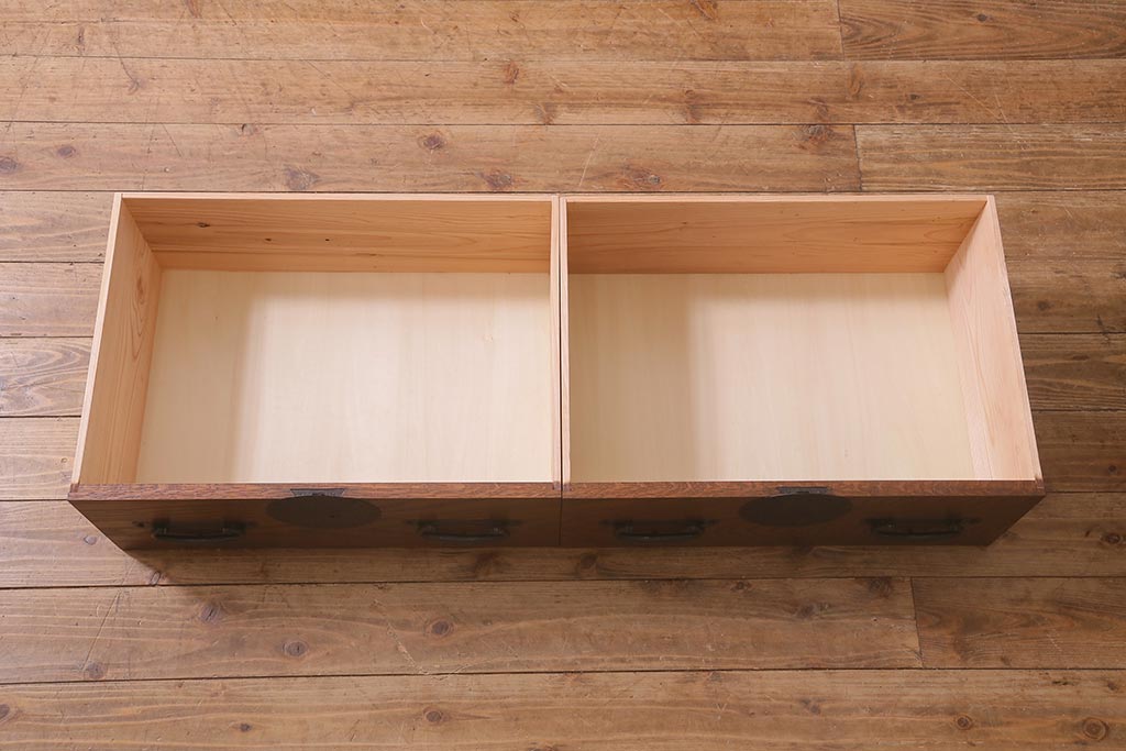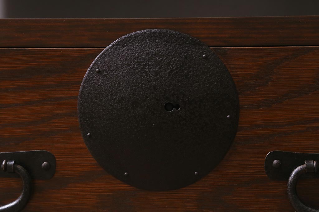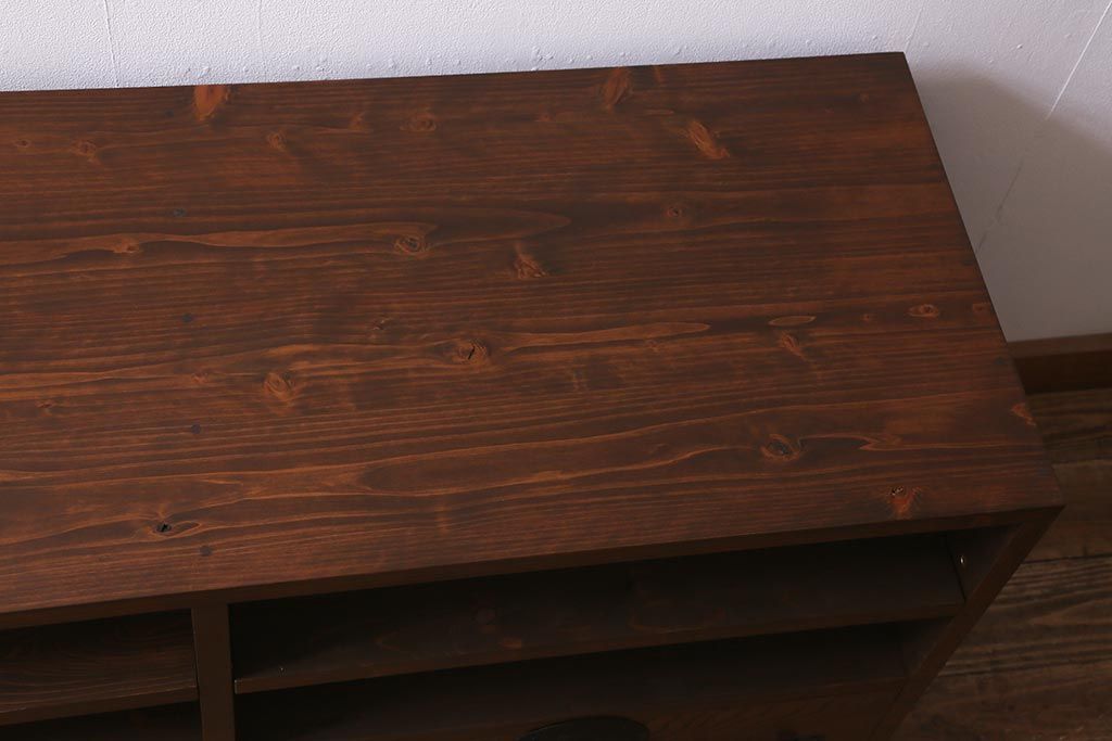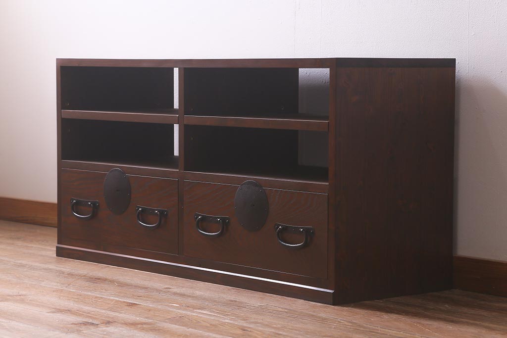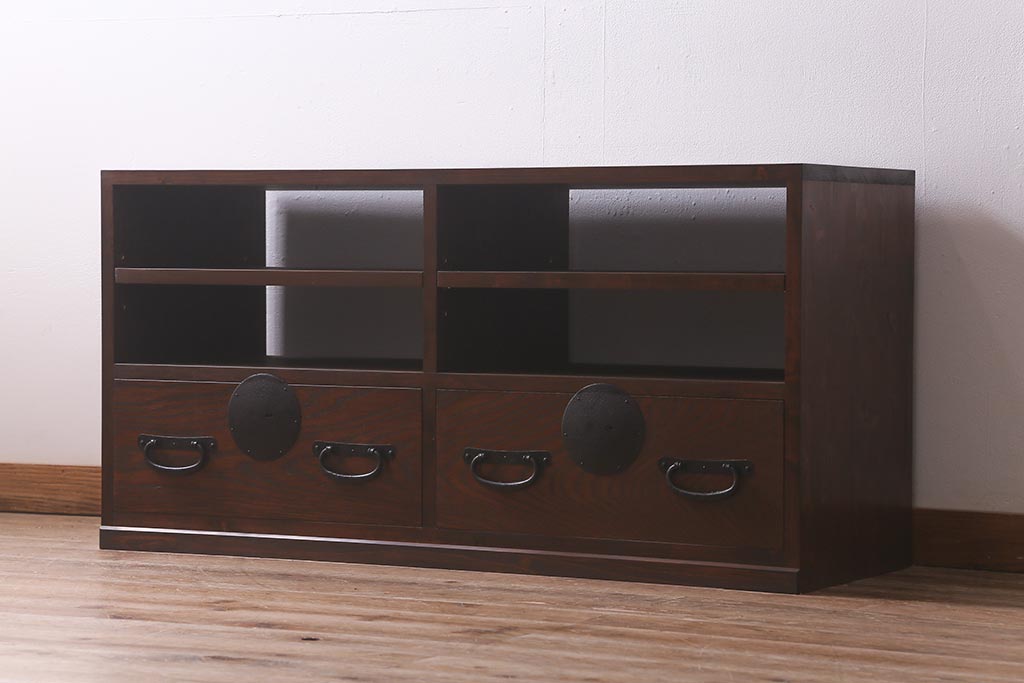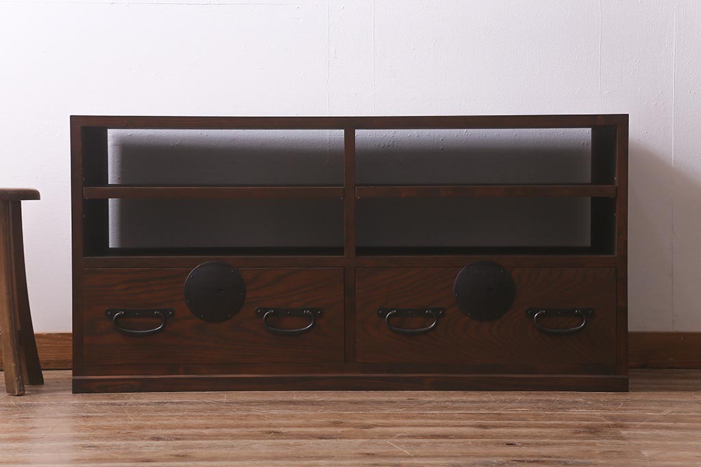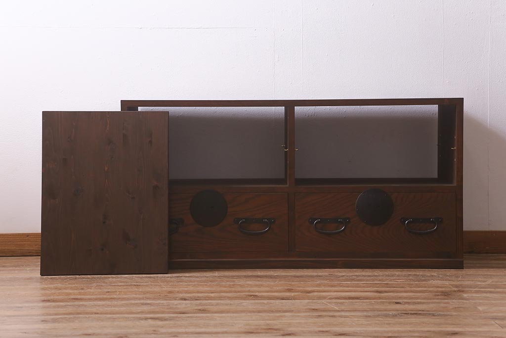 ラフジュ工房オリジナル 古金具リメイク 前板栗材 大正期 丸金具 使い勝手の良いローボード(テレビ台、テレビボード、収納棚)(R-042851)